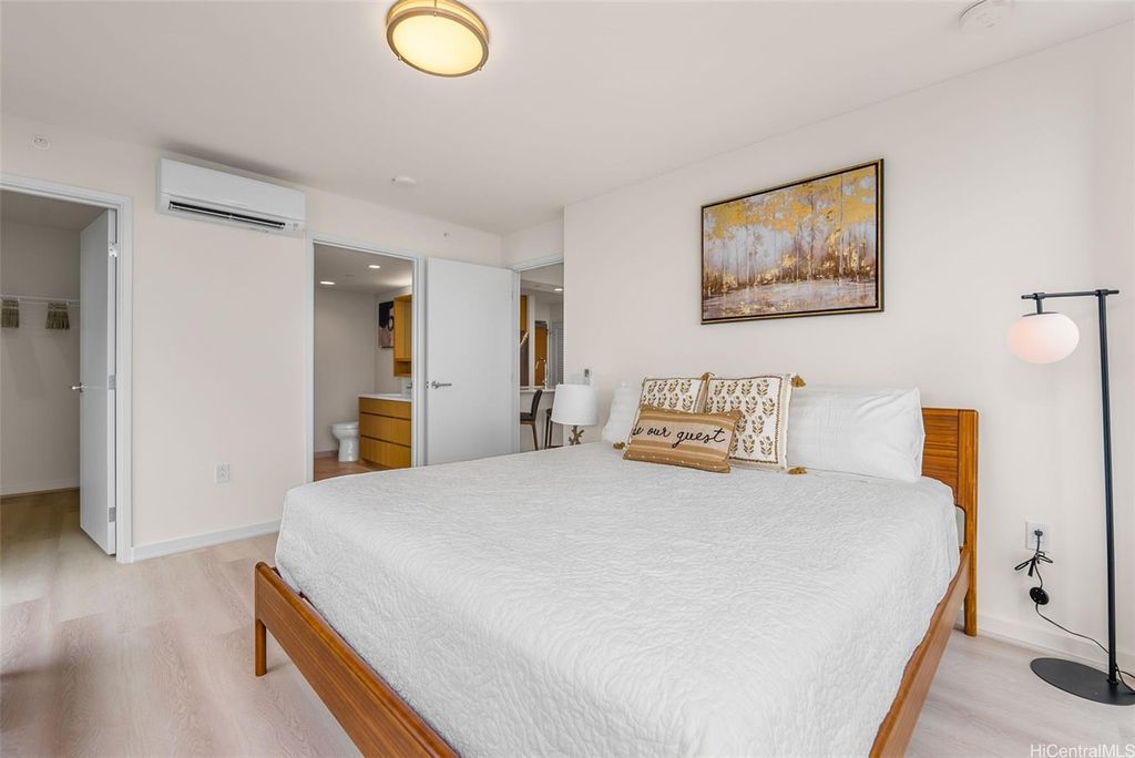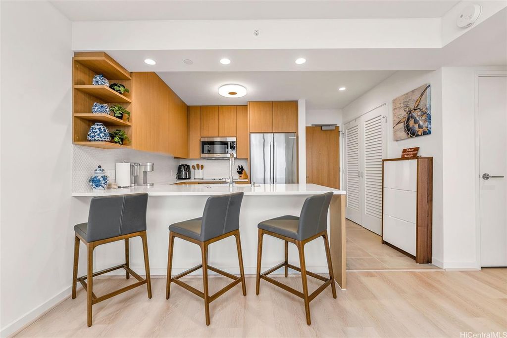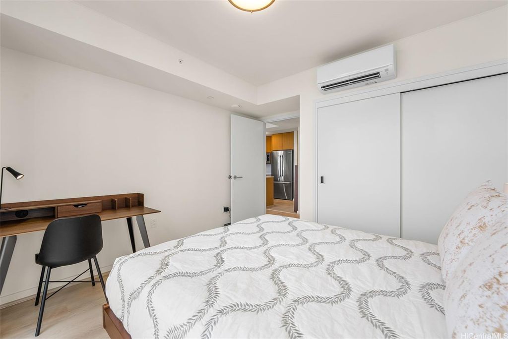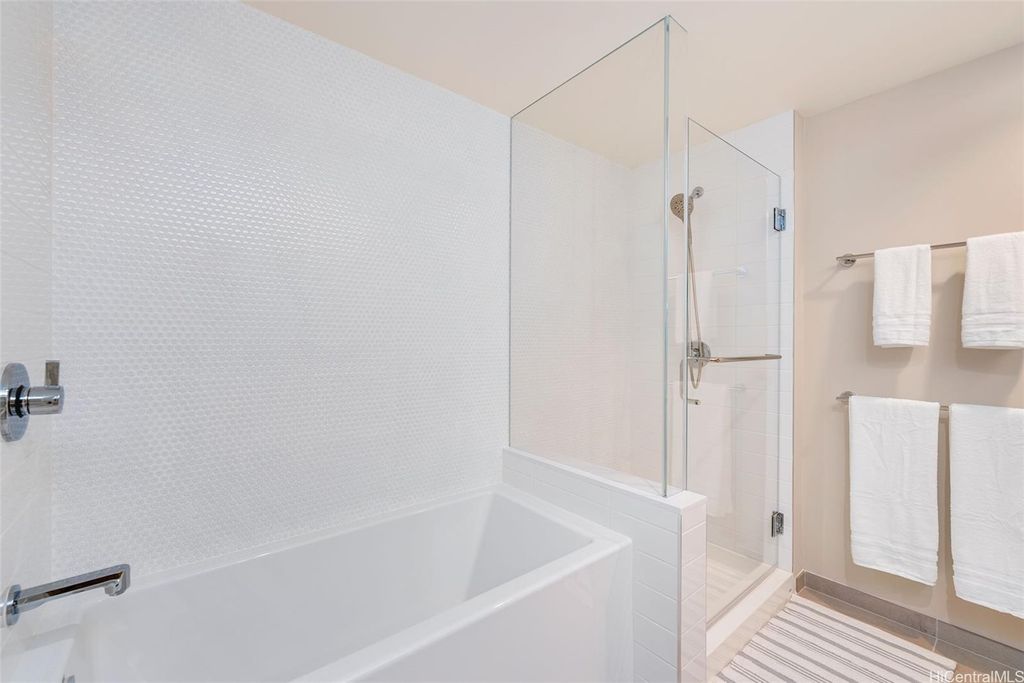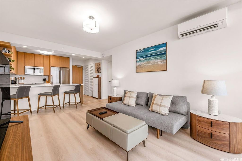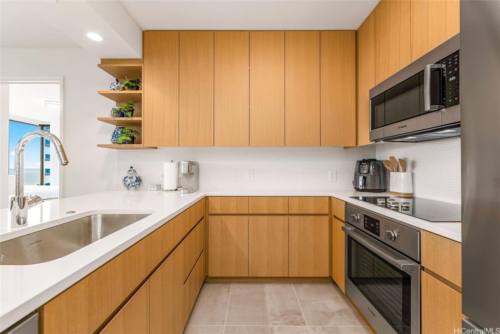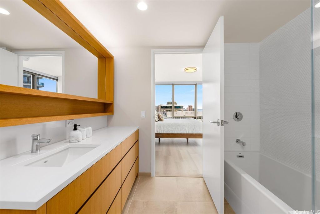 Situated on the 30th floor, boasting two bedrooms, two baths, and two parking spots. This beautiful 2BR/2BA residence offers a polished living space adorned with tasteful accents, creating an inviting atmosphere for both relaxation and entertainment. The unit features a fully equipped kitchen with modern appliances and elegant quartz countertops, striking the perfect balance between functionality and style. The bedrooms exude luxury with a plush bed, split-mounted AC, ample closet space, and a touch of classic opulence for a truly restful night's sleep. Relaxing ocean & Magic Island view can be seen from both bedrooms. The full bathroom is adorned with high-quality finishes, reflecting the refined taste that defines the overall design. Convenience is at your fingertips with an in-unit washer/dryer combo. Step out onto the private balcony to take in sunrise and sunset views from the lanai, making this rental a perfect fusion of modern sophistication and timeless charm. Amenities include a pool, gym and so much more! Non-refundable application fee is $39 per applicant, 18 yrs. and older. No pets. No smoking. Renter's insurance is required.