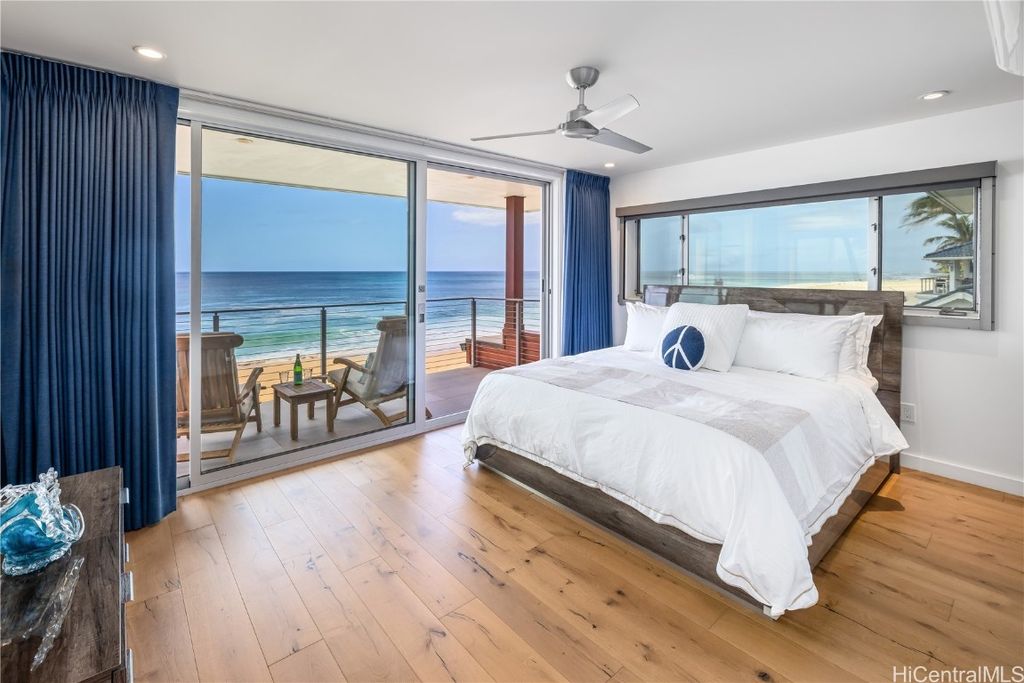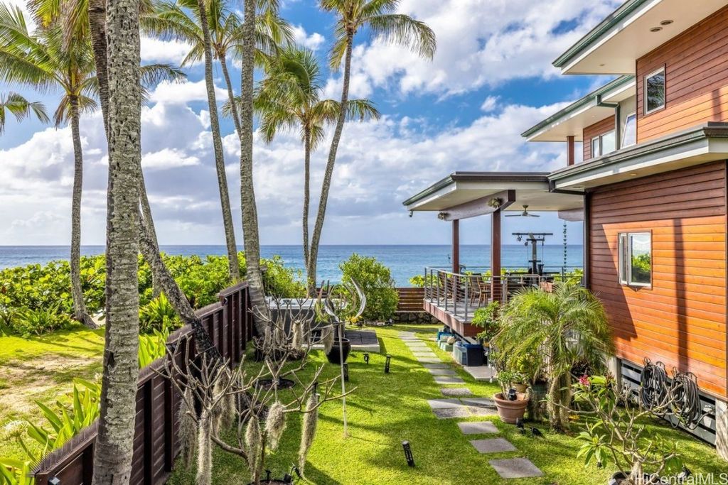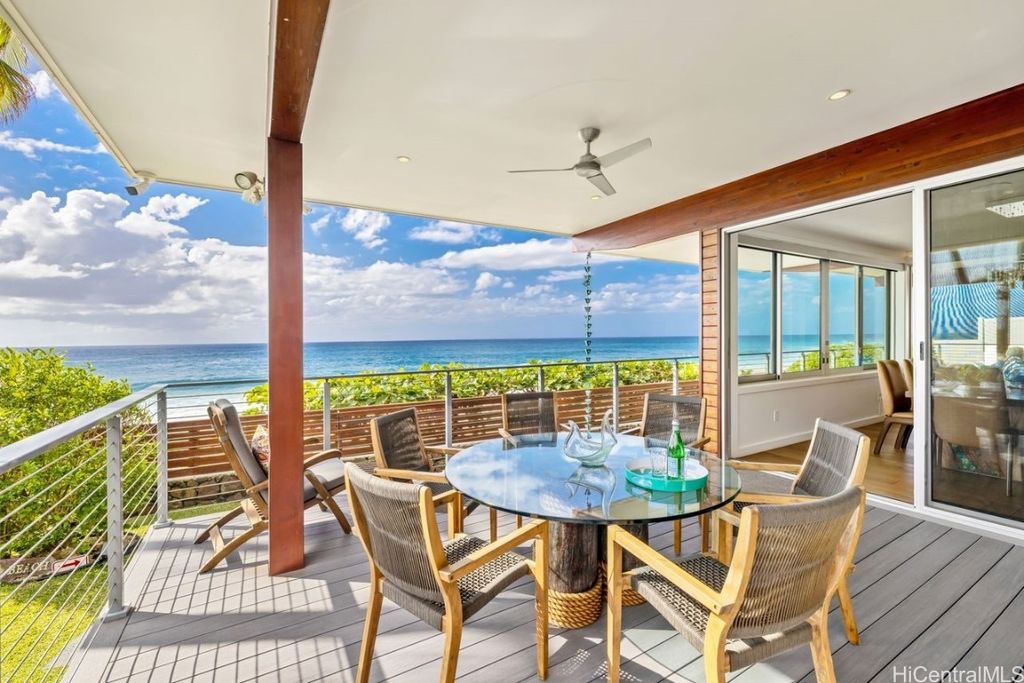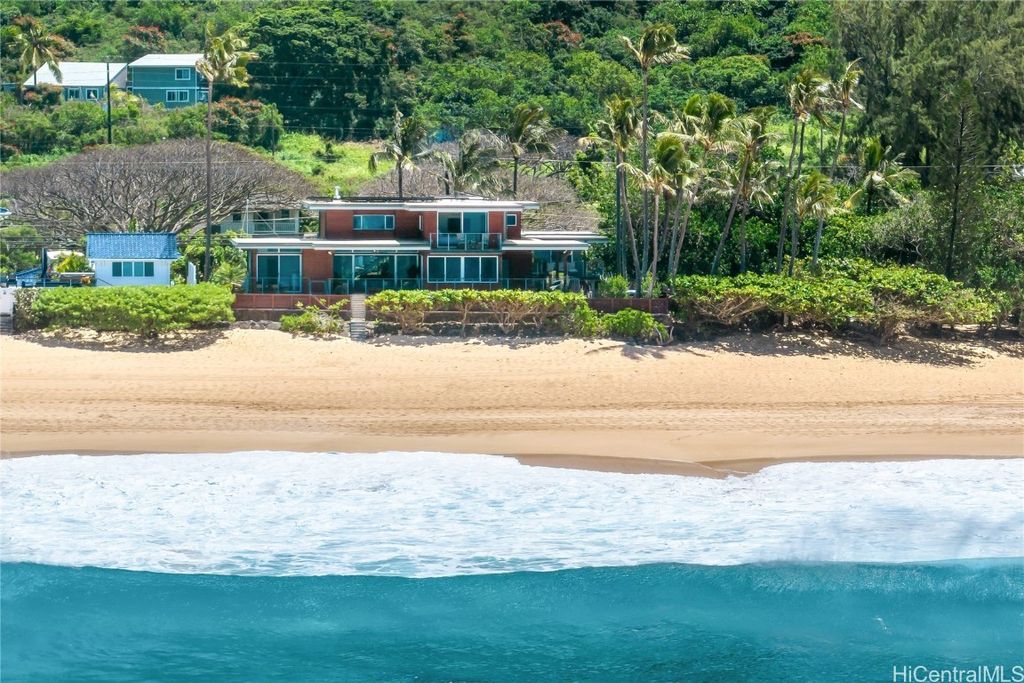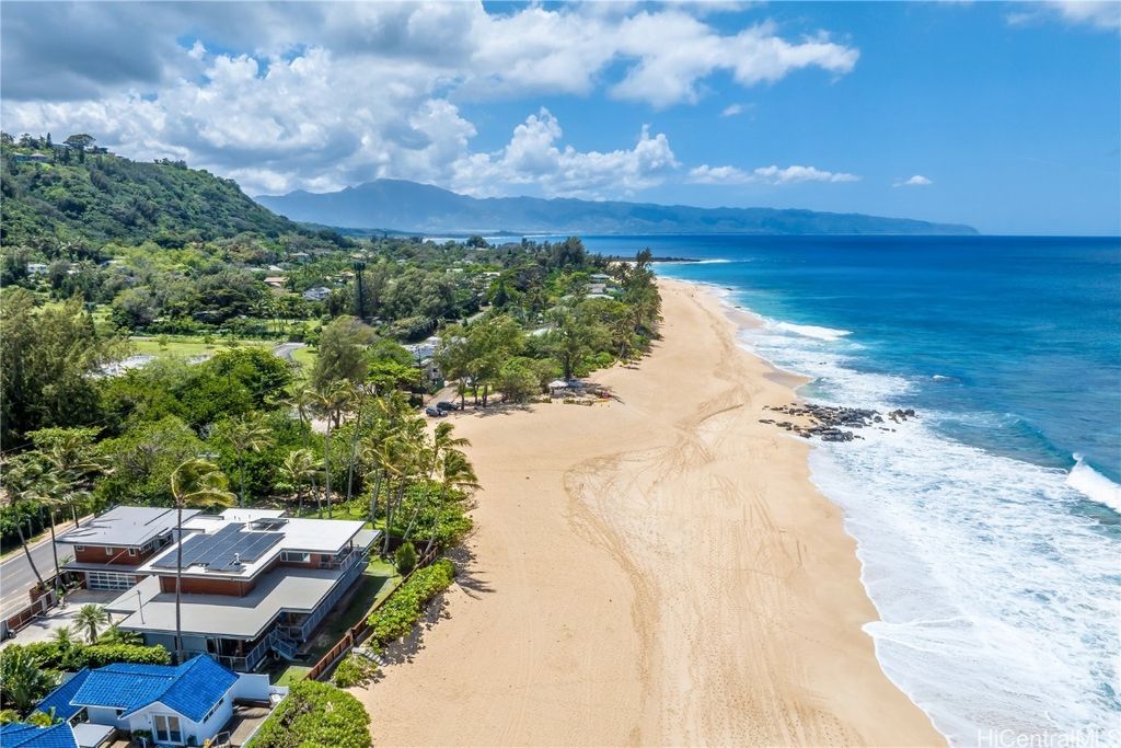 Prepare to experience the perfect blend of beachfront charm and modern luxury! With 100 feet of stunning beach frontage protected by a specially designed revetment, you'll enjoy breathtaking 180-degree views from Kaena Point to Sunset Beach"”Pipeline at your doorstep. The positioning of this residence is truly one-of-a-kind and cannot be replicated. Nestled in a private enclave frequented by celebrities and professional surfers between Rock piles and Pipeline surf breaks, this 2021 masterpiece by renowned architect Pip White and brought to life in 2021 by the craftsmanship of local artisans. This custom home showcases sophistication and coastal style. Designed with seamless indoor-outdoor living, it features spacious lanais for ultimate relaxation. Upstairs, the guest quarters above the garage offer incredible Pacific views and comfortable accommodations for family or generating income. Start your day with coffee or unwind with an evening drink while watching the sunset from the lanai. The views, soothing waves, and magic of Pipeline create a dreamlike escape. This isn't just a house"”it's your gateway to paradise,