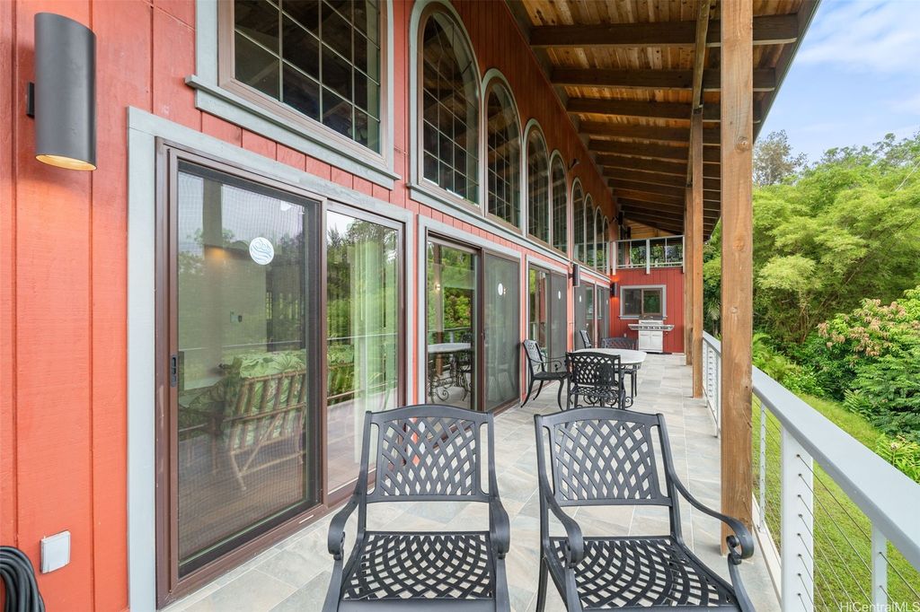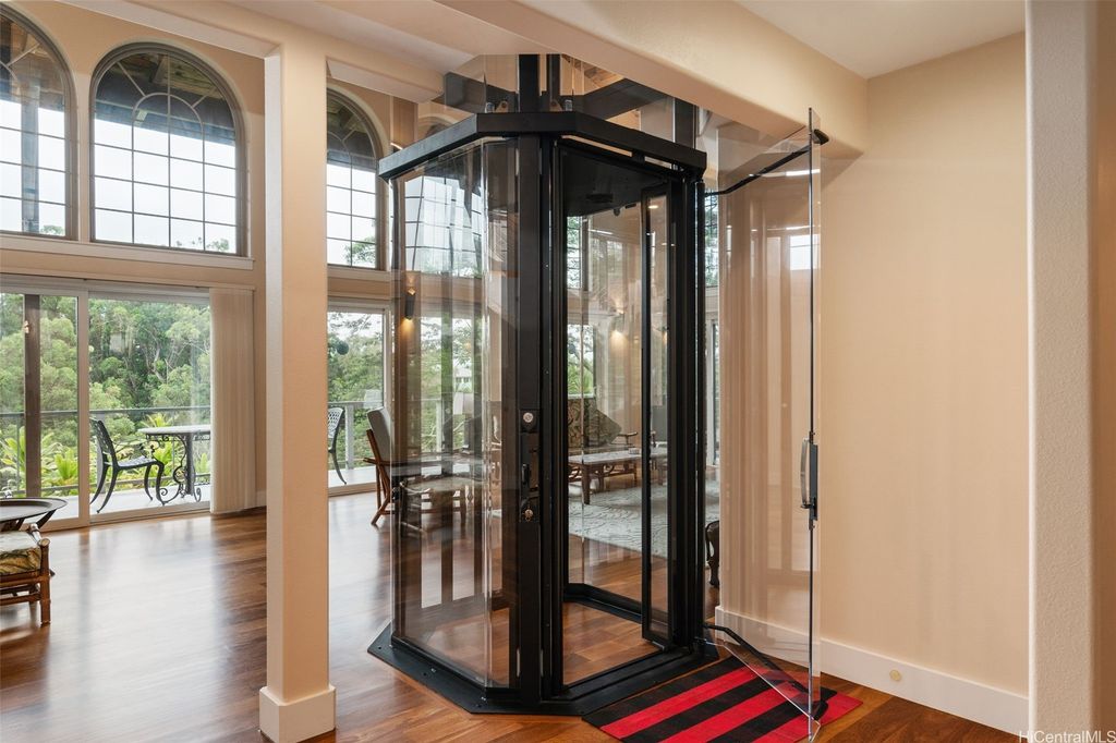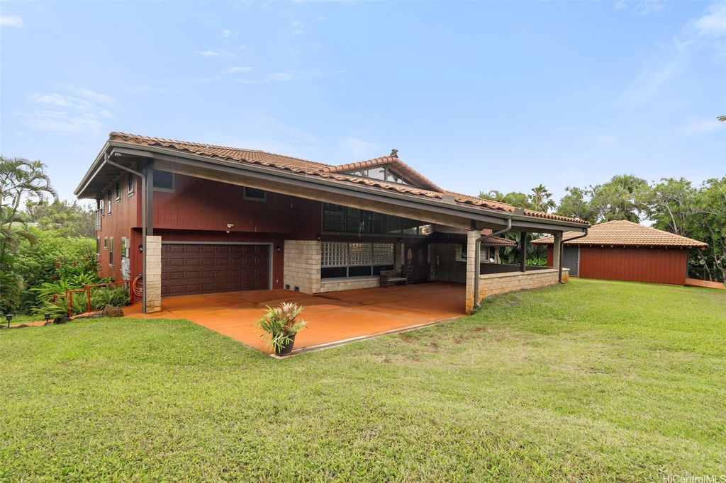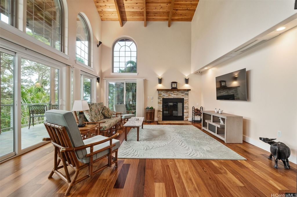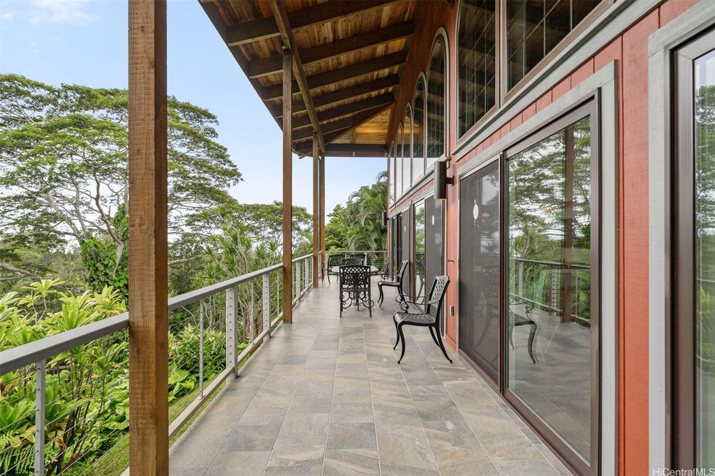 Price Reduction! Incredible 1.234 Acre Estate with a 3 Level Custom Home and an interior elevator. Also: 2 double-car Garages, 6 person Spa-Hot-Tub, Gourmet-Kitchen and Fully-Furnished! This home looks into a tropical forest valley for the most peaceful setting in all of Pupukea and watching the sunset in the ocean beyond is fantastic! Much cooler and quieter than any properties down below (therefore the fully operational wood burning fireplace) yet every room is air-conditioned with separate Split-Air Systems. Cool & Quiet is a key feature yet just minutes to world-famous beaches, Historic Haleiwa Town and Turtle Bay Resort. Cathedral Ceilings and floor to ceiling windows bring in the light and dramatic views! Every room is pre-wired w/Fiber-Optics and Co-Axle Cable plus a Full Security System, Formal Dining Room, hardwood floors and Majestic Entry-Foyer and an entire lower level perfect for Hobby Workshop or a huge workout room (elevator stops at this ground level). One of the most dramatic estates in all of Pupukea Highlands and perfect for an extended family or mountaintop retreat! Must see to truly appreciate. Country Living at its Best!