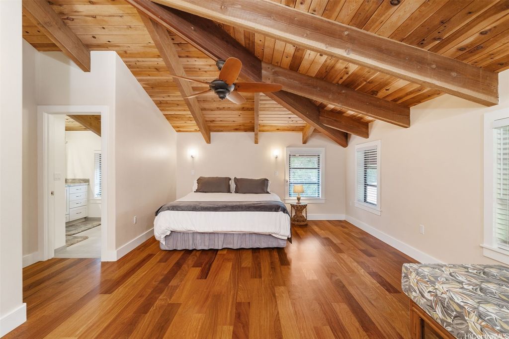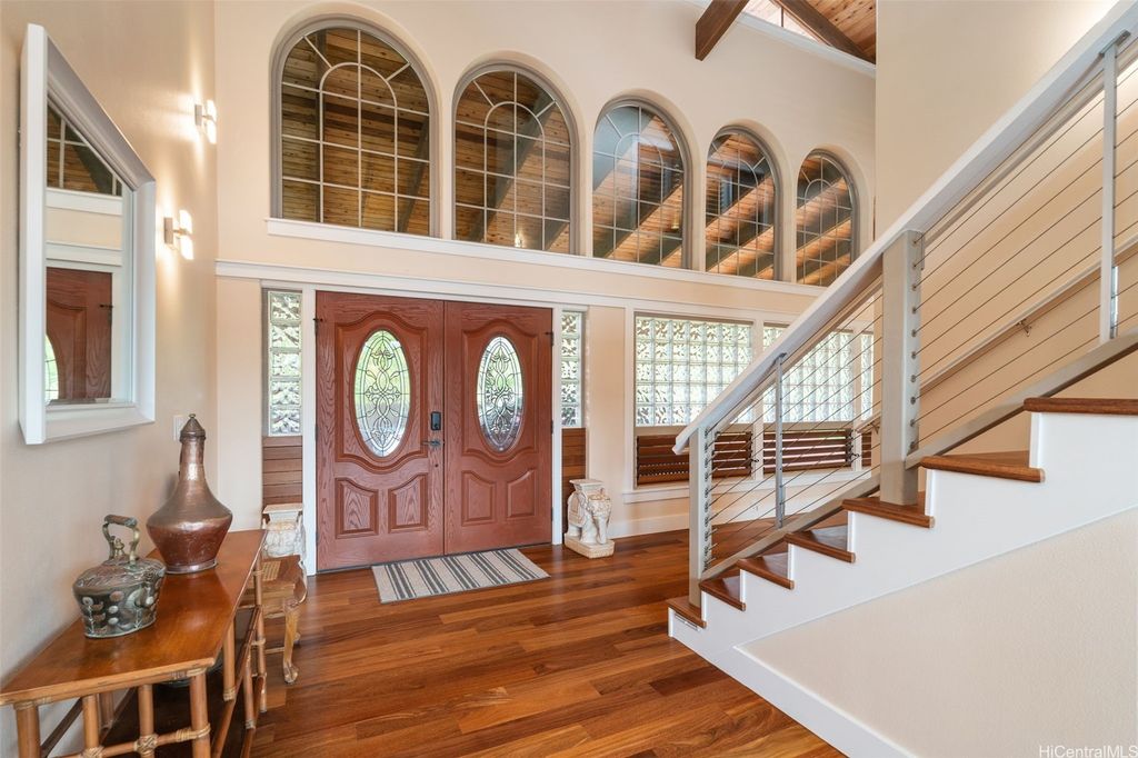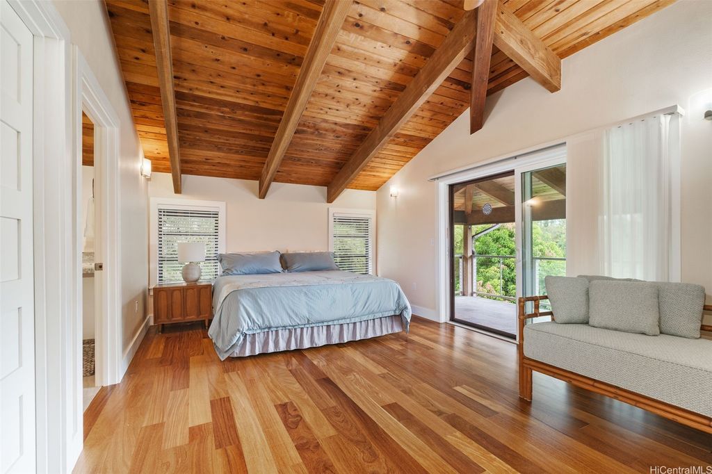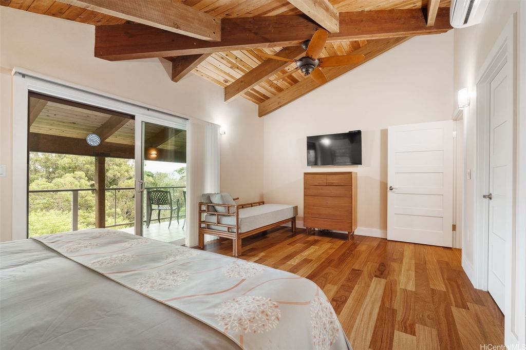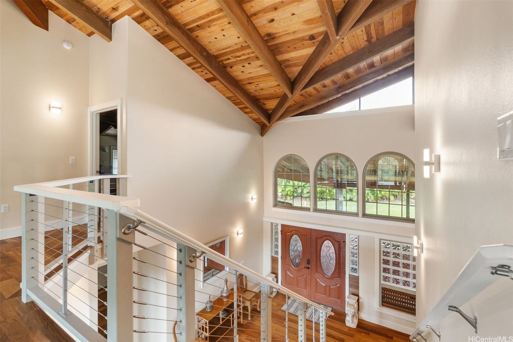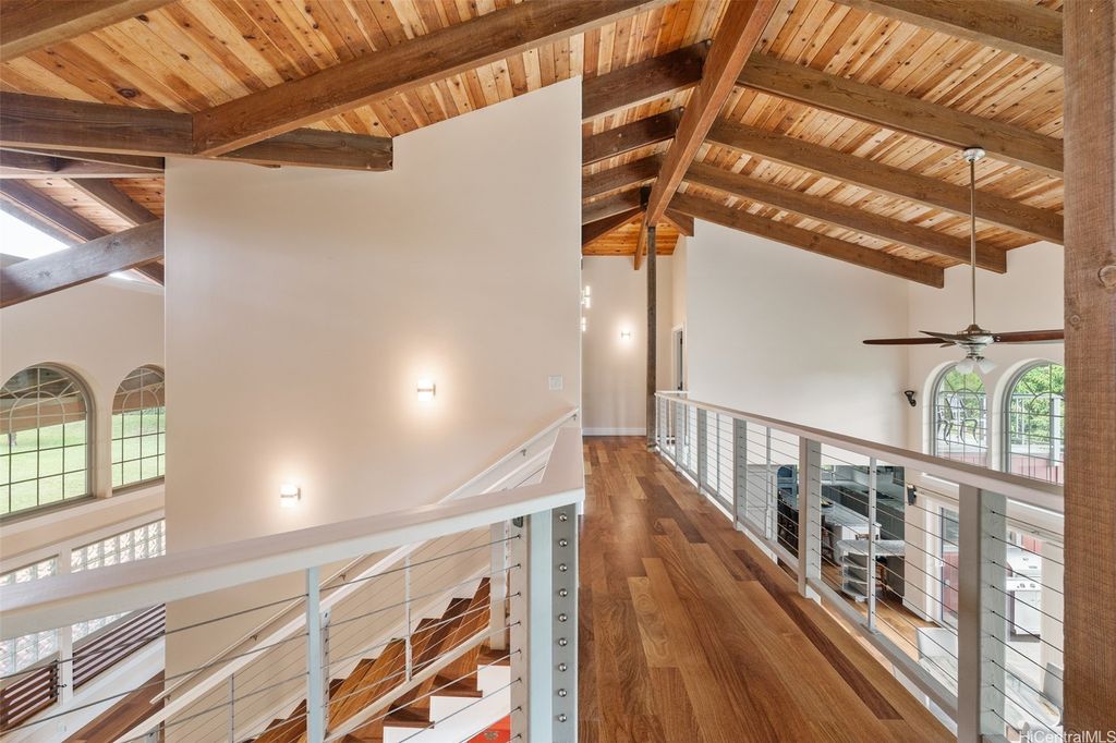 Price Reduction! Incredible 1.234 Acre Estate with a 3 Level Custom Home and an interior elevator. Also: 2 double-car Garages, 6 person Spa-Hot-Tub, Gourmet-Kitchen and Fully-Furnished! This home looks into a tropical forest valley for the most peaceful setting in all of Pupukea and watching the sunset in the ocean beyond is fantastic! Much cooler and quieter than any properties down below (therefore the fully operational wood burning fireplace) yet every room is air-conditioned with separate Split-Air Systems. Cool & Quiet is a key feature yet just minutes to world-famous beaches, Historic Haleiwa Town and Turtle Bay Resort. Cathedral Ceilings and floor to ceiling windows bring in the light and dramatic views! Every room is pre-wired w/Fiber-Optics and Co-Axle Cable plus a Full Security System, Formal Dining Room, hardwood floors and Majestic Entry-Foyer and an entire lower level perfect for Hobby Workshop or a huge workout room (elevator stops at this ground level). One of the most dramatic estates in all of Pupukea Highlands and perfect for an extended family or mountaintop retreat! Must see to truly appreciate. Country Living at its Best!