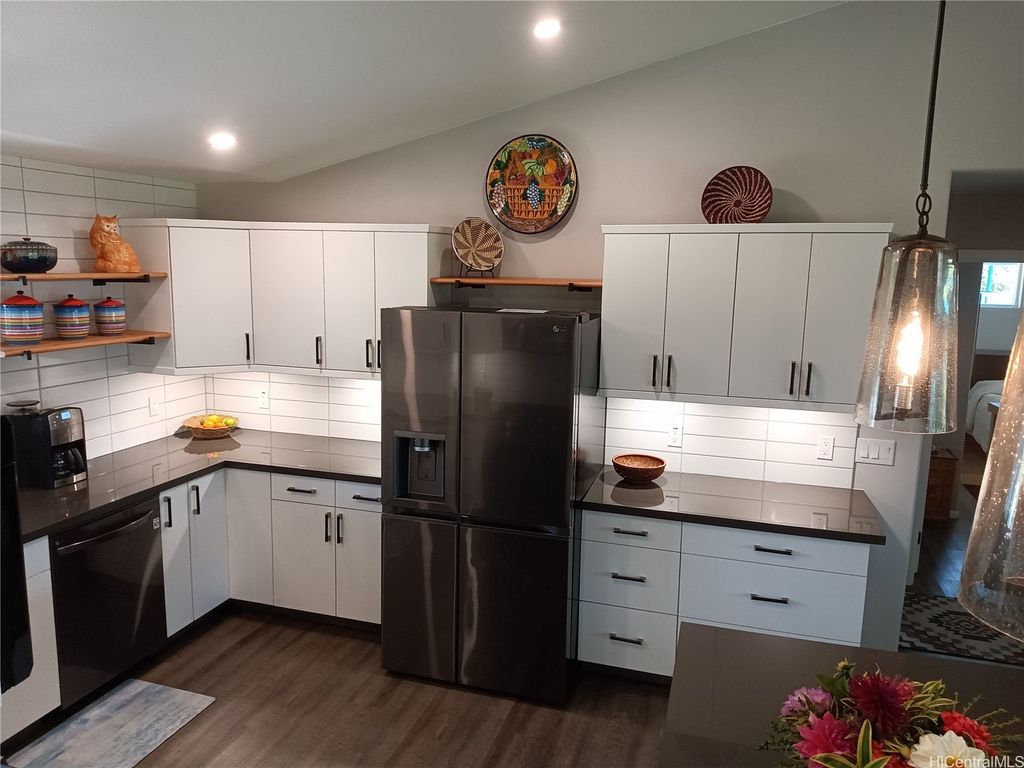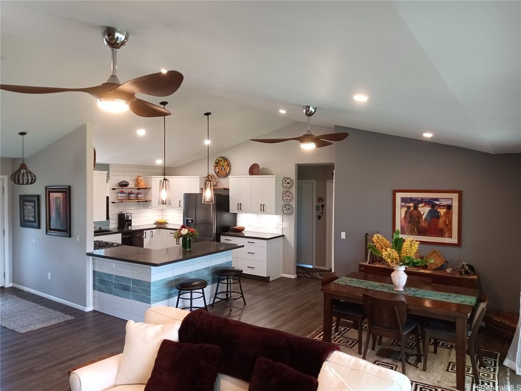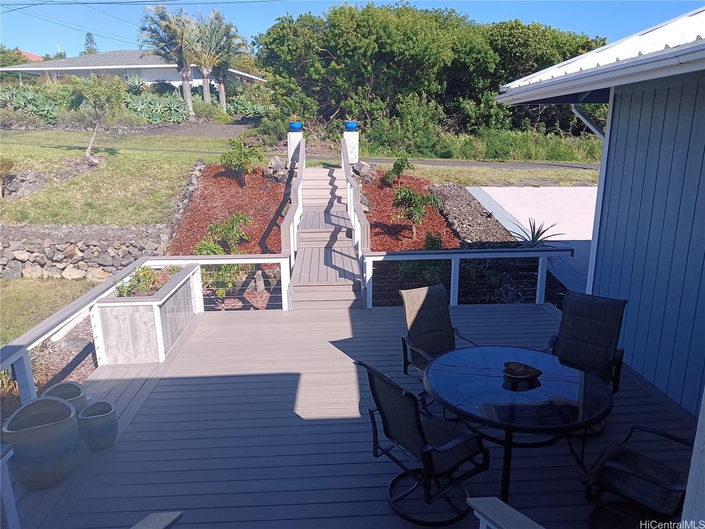 This 2022 beauty near the 18th tee with ocean and fairway views is move-in ready with furnishings including 2 king beds, a new dining set, patio furniture, dishware and more. Only one close neighbor makes it feel like living in a park, not a subdivision. Discovery Harbour has spring fed County water, an active community center, volunteer fire department and community watch. The well maintained golf course is a private, separate entity. The property is in lava zone 6, at a 1400' elevation, with very reasonable insurance rates. Features include Trex decks, quartz countertops, accent and under cabinet lighting, jetted tubs, septic not cesspool and great neighbors. A very clean 2008 Ford Escape could also transfer with the property. Thank you for looking. "All comments, data is provided by seller or seller's representatives. Buyer to confirm all & hold all parties harmless from any discrepancy data in the mls and advertising. Limited Service-Data Entry Addendum signed by seller/s must be signed by buyer/s with Purchase Contract."