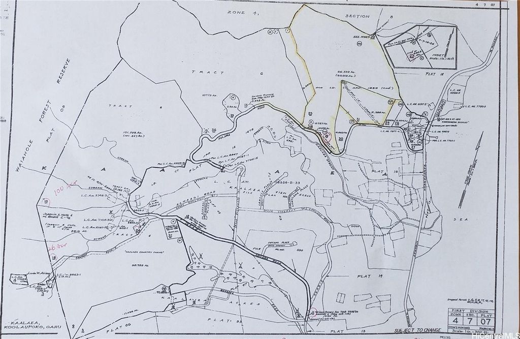 Incredible Development Opportunity in Kaneohe - Nearly 80 Acres of Prime Land. A rare find for investors and developers! This expansive property offers two parcels, TMK 1-4-7-0031-0000 (12.39 acres, Country/Residential Zoned) and TMK 1-4-7-0025-0000 (66.53 acres, P-1 Preservation Zoned). Located just 5 minutes from the ocean and Kaneohe Bay, the site features breathtaking views and significant development potential. The first parcel, priced at $4.5 million, offers an excellent opportunity for residential development. Picture turning this 12.39 Acres land into expansive one-acre lots, perfectly situated for high-demand luxury homes. Its prime location near the ocean makes this parcel ideal for a residential community. The second parcel spans 66.53 acres and is priced at $1.6 million, zoned for P-1 Preservation. The seller is open to selling both parcels together or individually. Buyers are encouraged to conduct their due diligence. Don't miss this chance to own a unique slice of paradise by the Bay!
