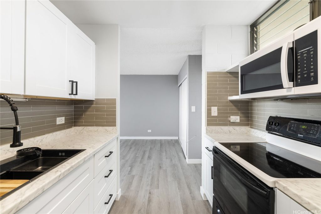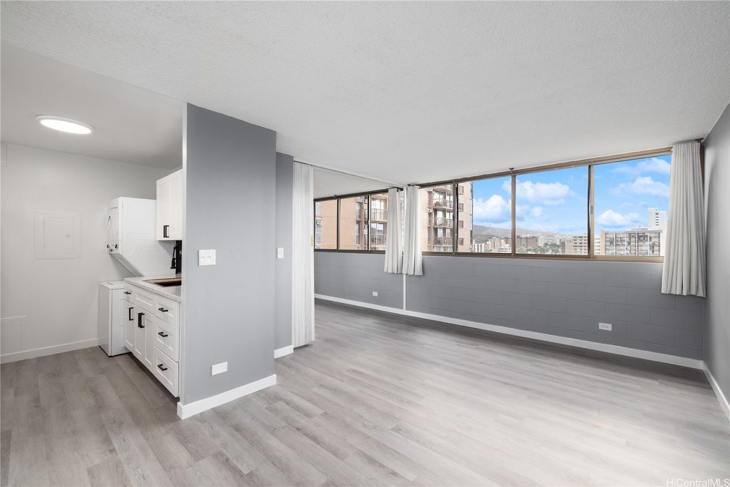 PRICED FOR A QUICK SALE! Seller Offering $10,000 credit at closing.Offers will be presented as they are recieved.The building is VA Approved! A prime investment/living opportunity awaits you in this secured building in the heart of Makiki! This remodeled flexible 1bed/1bath unit features new vinyl flooring, fresh paint &modern cabinetry w/ soft close drawers. Chefs will appreciate the stylish butcher block countertop w/ a deep sink in the kitchen,microwave & washer/dryer in unit for your convenience. This PET FRIENDLY (<25lbs) residence offers both comfort & style. Enjoy stunning city views from your private retreat, secured covered parking & additional storage.The building boasts fantastic amenities,including a rooftop pool, a dedicated dog park for your furry friend, & the Beretania Tennis Club right next door. Located close to Kakaako, Safeway,the Blaisdell Center, Honolulu Museum of Art, Straub, Queen's Hospital, the University of Hawaii & Hickam Airforce Base.The location of property combines convenience w/ lifestyle. MF include cable TV, hot water, sewer, & water. Don't miss out on this incredible opportunity! Street parking is available.Building has 100% Hurricane Insurance.