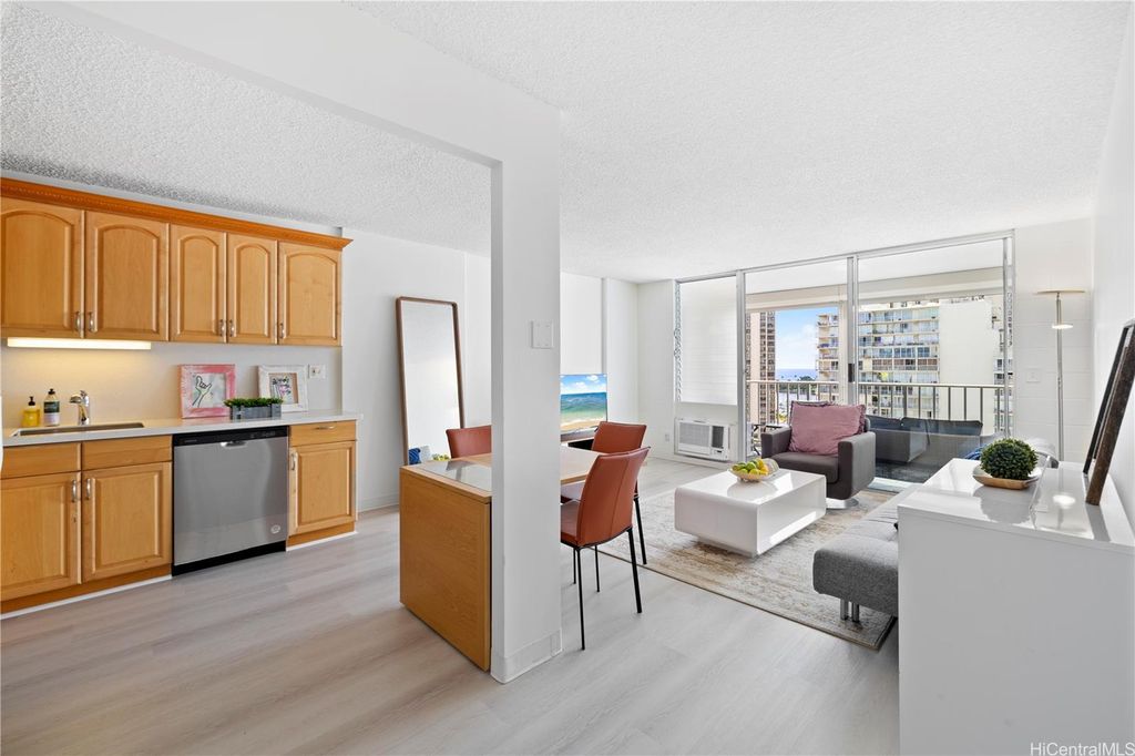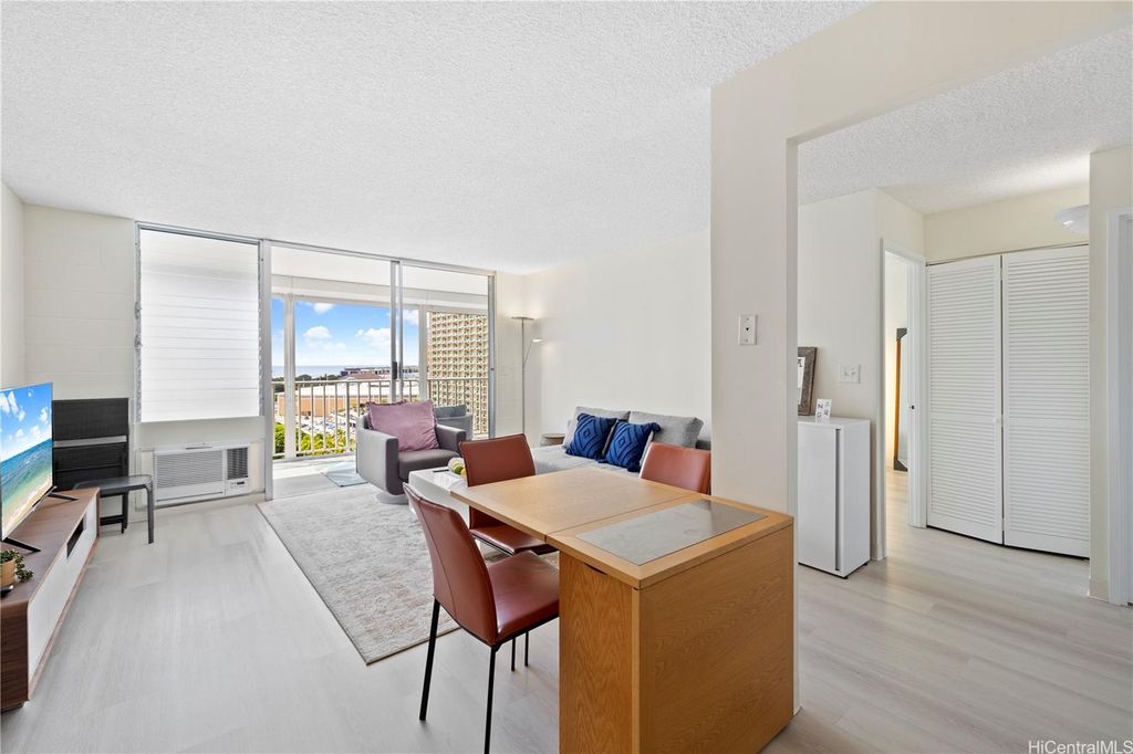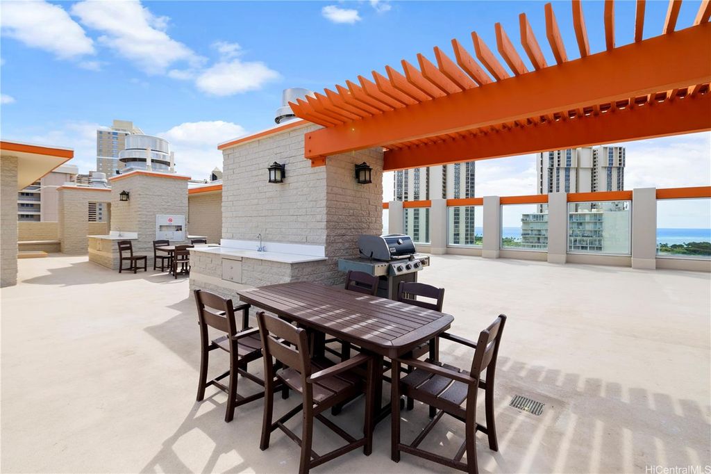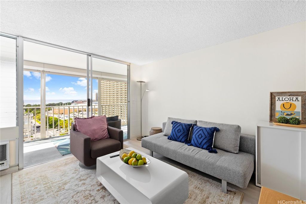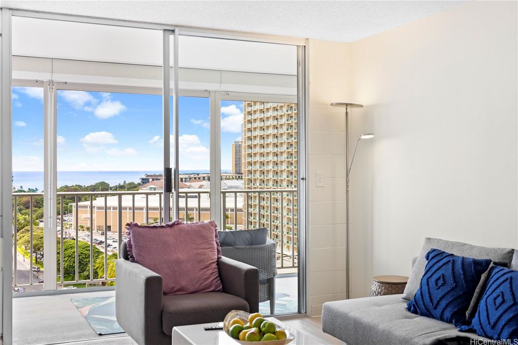 This beautifully Corner 1-bedroom, 1-bath condo at Atkinson Plaza, perfectly positioned between Waikiki and Ala Moana. Enjoy a spacious lanai with ocean views, OR Brand new storm shatters to close the lanai with quiet living space. in-unit washer and dryer, and secure covered parking. This unit offers access to amenities, including a rooftop pool, sauna, BBQ areas, and tennis court"”all just close from Ala Moana Center, the beach park, and local dining. Make this convenient, stylish condo your new home in paradise!