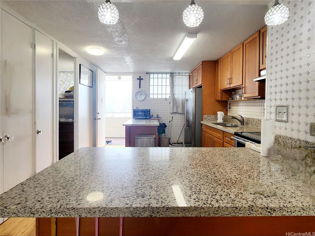Experience the convenience of mid-town living at the Woodrose building. This 2-bedroom, 1.5-bathroom unit is just steps away from the vibrant Ala Moana Center, Don Quijote, Walmart, Sam's Club, and a diverse selection of dining options, offering a perfect blend of comfort and accessibility. Enjoy easy access to public transportation, making city life a breeze. The unit was remodeled in 2015, and the distinctive Jack and Jill bathroom ensures privacy and functionality. The maintenance fee includes electricity, cable, hot water, water, and sewer. Additionally, the unit includes a reserved parking space and storage for added convenience. Enjoy peace with the building's swimming pool. Safety is prioritized here, with a dedicated night security guard and a vigilant site manager on duty. This property is perfect for first-time homeowners as well as investors, representing the dynamic heart of Honolulu.