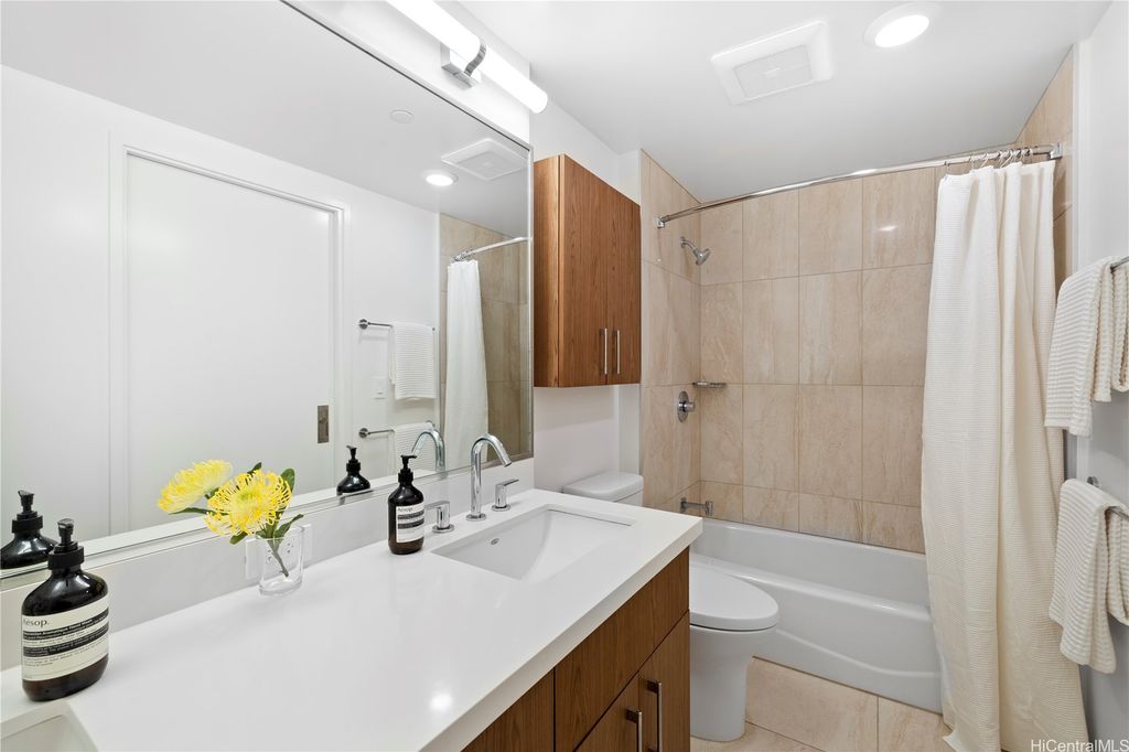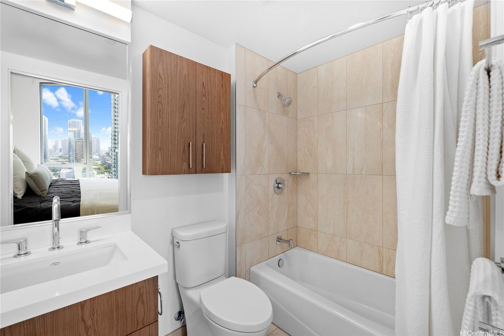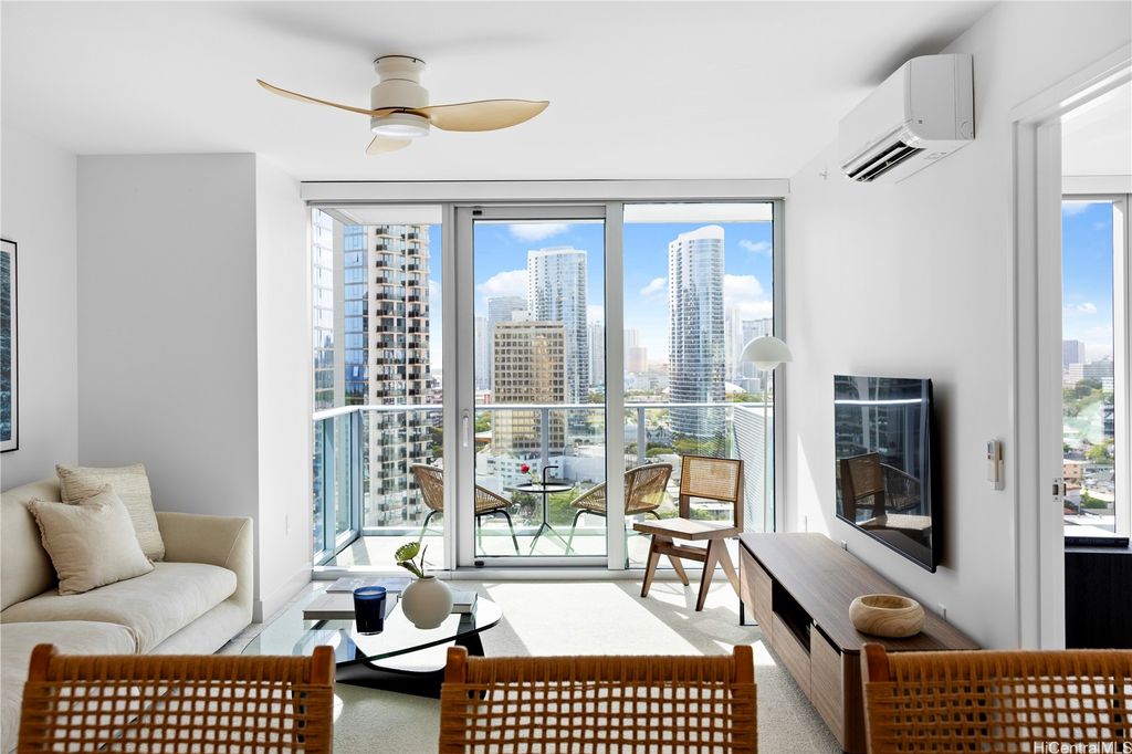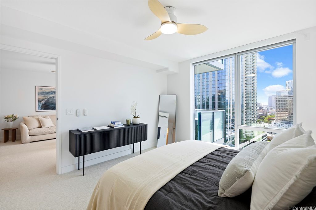 Airy & Bright 2-Bed Residence in the Heart of Ala Moana This 2bed/bath home features an open and inviting floor plan with bedrooms separated by the living room for added privacy. The spacious peninsula kitchen offers generous counter space for cooking and entertaining"”no dining table needed"”with abundant storage throughout including a linen closet. Enjoy motorized window blinds, two covered tandem parking stalls, and views of the city, mountains, and ocean. Resort-style amenities include a fitness center, pool, BBQ cabanas, club lounge with full kitchen, 4 guest suites, theater, and dog park. Just steps from Ala Moana Shopping Center, Ala Moana Beach Park, restaurants, grocery shopping and Sam's Club. This home blends urban convenience with modern comfort.