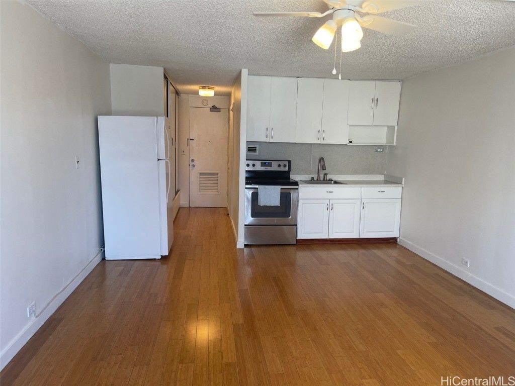 Great location in the heart of Honolulu! Pacific Grand is a unique studio-only building, a great starter unit or investment property that is move-in ready and conveniently located near Don Quijote, Walmart/Sam's Club, Ala Moana, Bus Lines, Eateries, and even a Biki Station downstairs. This unit has cabinet/storage space, bamboo flooring, a window AC unit, and a great city/ ocean view! Parking can be rented through the building (if available). Electricity is included in the HOA as well. RECENTLY RENOVATED not shown on the pictures, Schedule your showing! This building is VA approved!