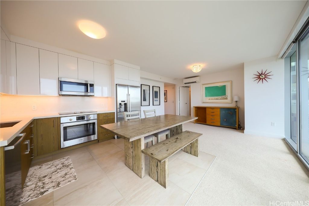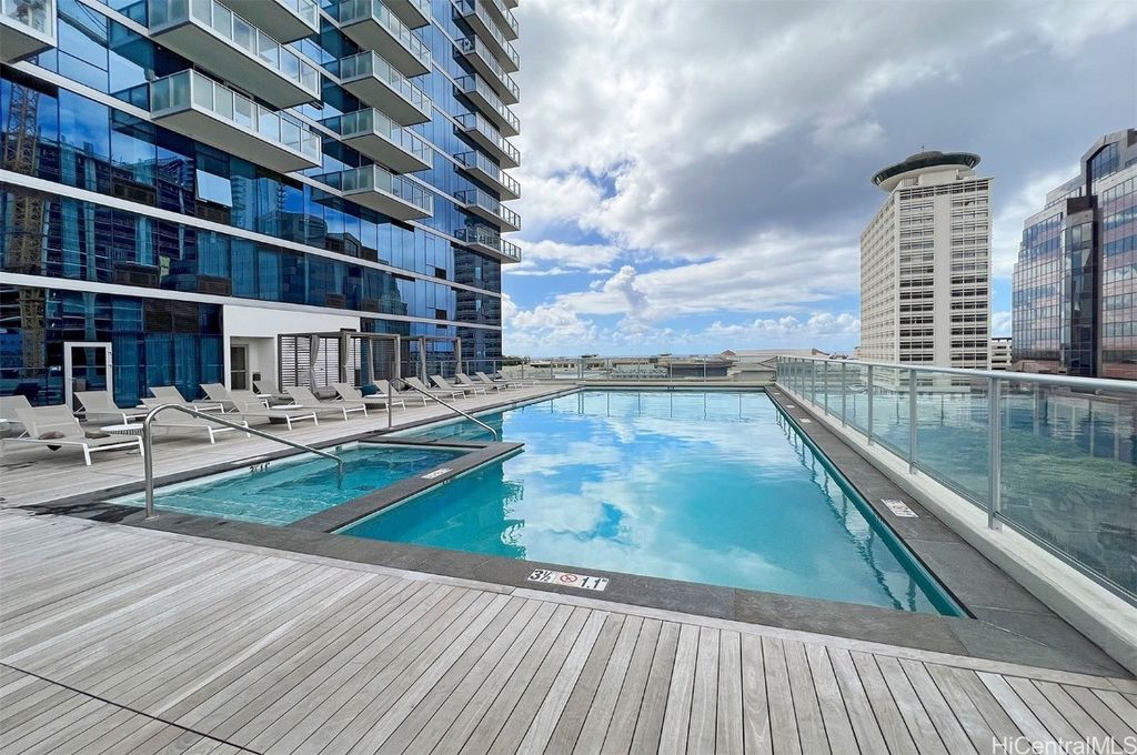 Make this luxurious high-floor 2-bedroom, 2-bathroom with 2 parking stalls unit at Azure Ala Moana your next home! Enjoy breathtaking city and sunrise views through floor-to-ceiling windows, filling the space with natural light. The sleek, modern kitchen features high-end Bosch appliances, quartz countertops, and elegant finishes. Indulge in resort-style amenities, including a pool, spa, fitness center, movie theater, BBQ cabanas, and a dog park. Conveniently located near Ala Moana Center, Walmart, Sam's Club, and Target, this pet-friendly condo offers the ultimate blend of luxury, comfort, and urban convenience.