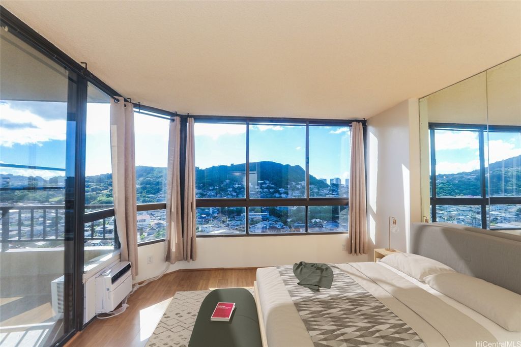 Looking for a peaceful retreat near downtown Honolulu? This 1-bedroom, 1-bath, 1-covered-parking condo is the perfect fit! With a fixed lease rent through 2070, there's no guessing"”just peace of mind. This high-floor corner unit is full of natural light and boasts views of Punchbowl and the sparkling Honolulu city lights. The building offers just the right amount of amenities: a heated pool, hot tub, gym with sauna and showers, and outdoor barbecue/recreation areas. Plus, it's well-maintained with a resident manager, 24-hour security, and plenty of guest parking. Located on a quiet cul-de-sac, you'll enjoy controlled FOB access to the lobby and parking garage, as well as three elevators for quick trips up to your unit. Inside, the kitchen comes fully equipped with a refrigerator, stove, oven, and range hood, with a convenient pass-through to the living room. The Nuuanu Valley breeze keeps the space cool and fresh, and you're just a short drive to freeway access, downtown, shopping, dining, and entertainment. With ample space for relaxing or hosting, this move-in-ready unit is vacant and easy to show. Don't miss out!