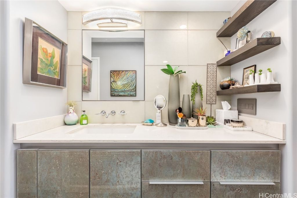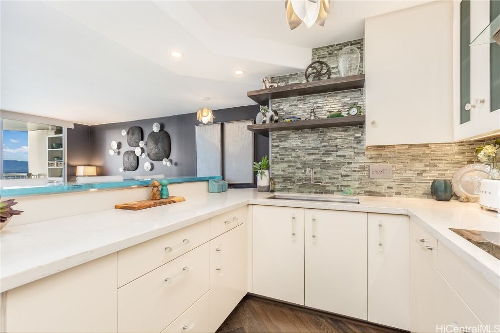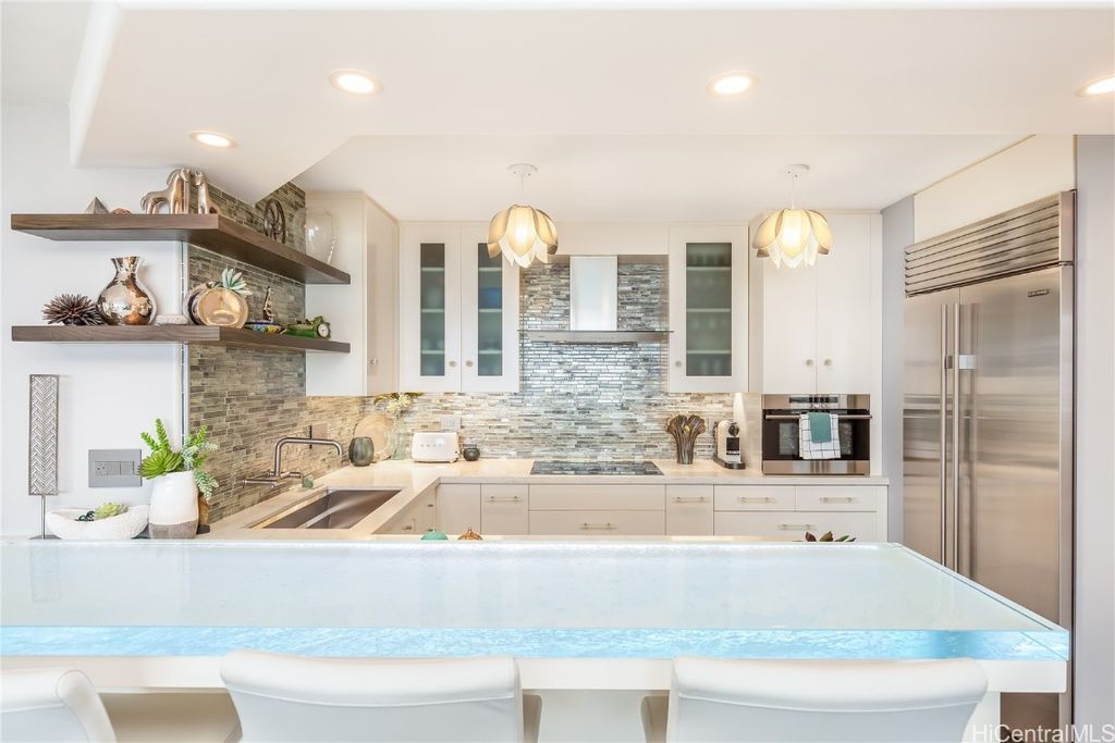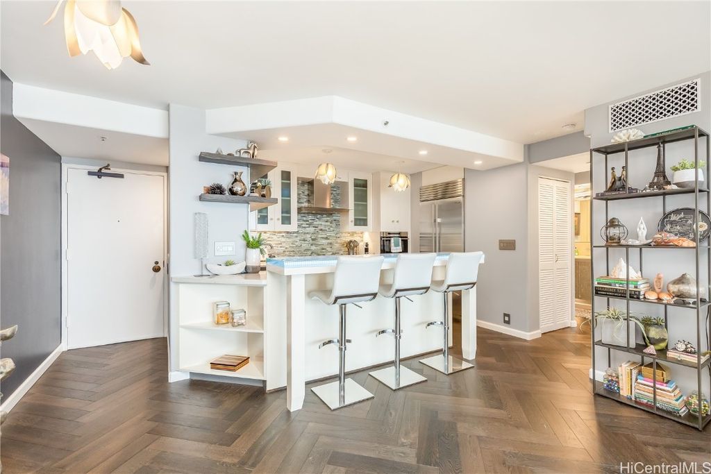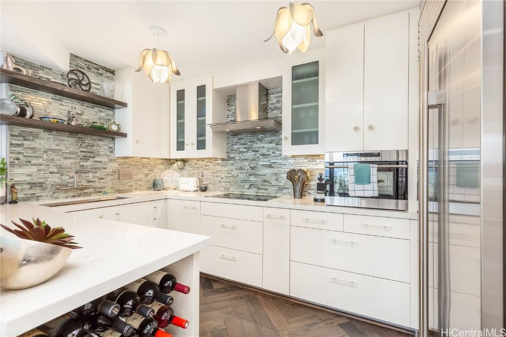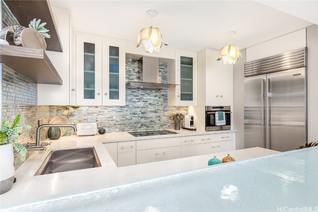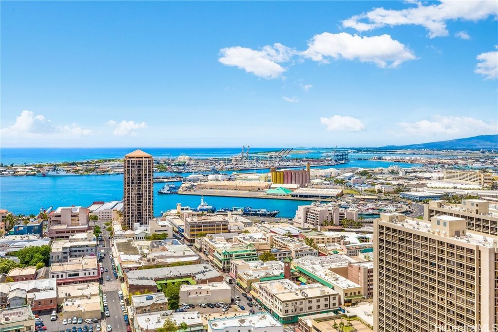 Luxurious, fully remodeled one bedroom condominium now available! If you are looking for a custom high end renovation, but don't want to spend a year waiting on the supply chain and dealing with contractors, this unit is a dream come true! Enjoy amazing views of the ocean, harbor and downtown from the large spacious lanai on the 34th floor. The owner spared no expense on every detail which makes this unit truly one-of-a-kind. The luxurious interior features ultra high end brands and custom finishes - Subzero refrigerator, Wolf steam oven with cooktop and hood, Kohler faucets, led illuminated custom countertop/bar, custom blossom lights from 3form, maple wood kitchen cabinet with custom frosted glass, Asko washer/dryer, deep soak tub, and a brand new Toto washlet toilet. Owner also invested thousands in properly cleaning the AC ducts to ensure clean air throughout the unit and upgraded thermostat. The building is packed with amenities which include a large gym, pool, large jacuzzi, tennis court, bowling alley, racquetball/basketball court, koi pond, bbq area, car wash and so much more. Close distance to the downtown offices and many hidden restaurant gems. Must see!
