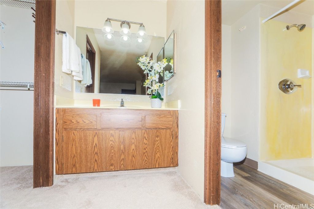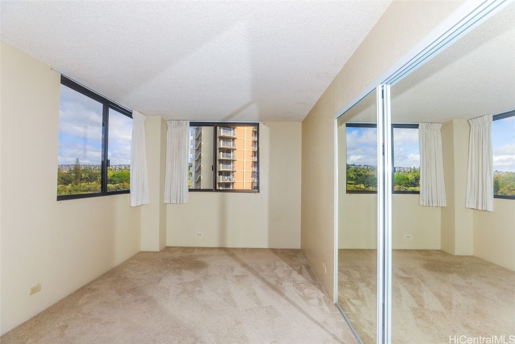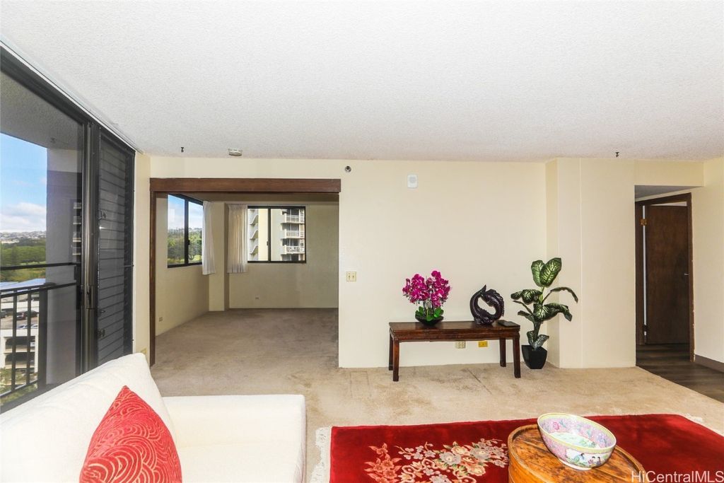 Spacious 3 bdrm, 2 full bath with full-sized washer and dryer. 2 parking stalls. Located on the cooler side of the building (Ewa/Mauka). Bring your imagination. There is a storage locker downstairs for smaller things. Walking distance to the mall, movie theaters and Pali Momi Medical Center. Park at Pearlridge has a lot of guest parking.