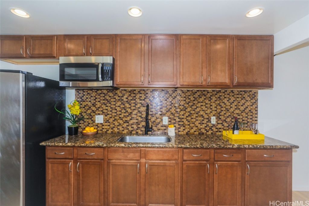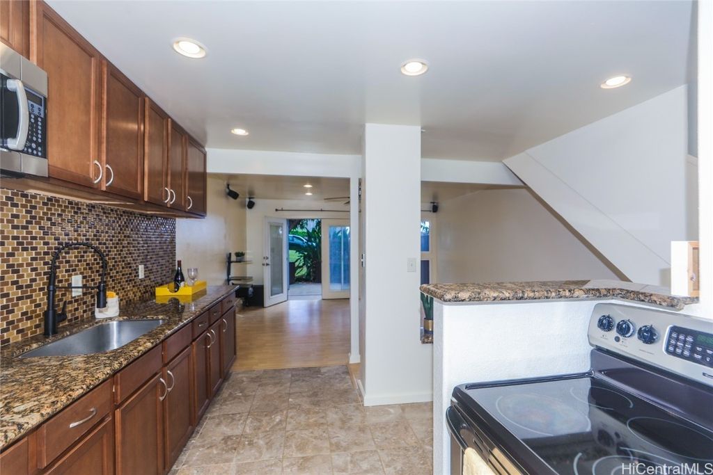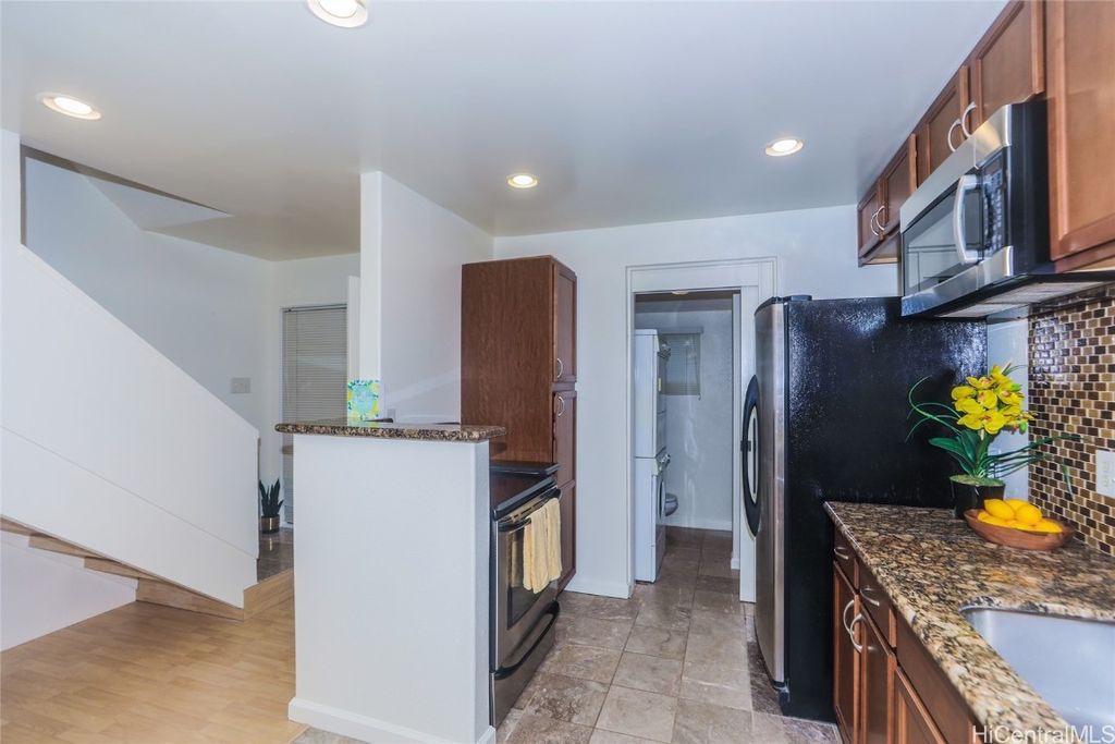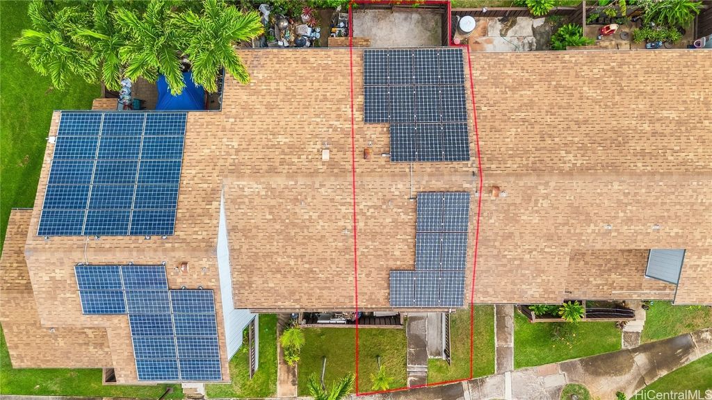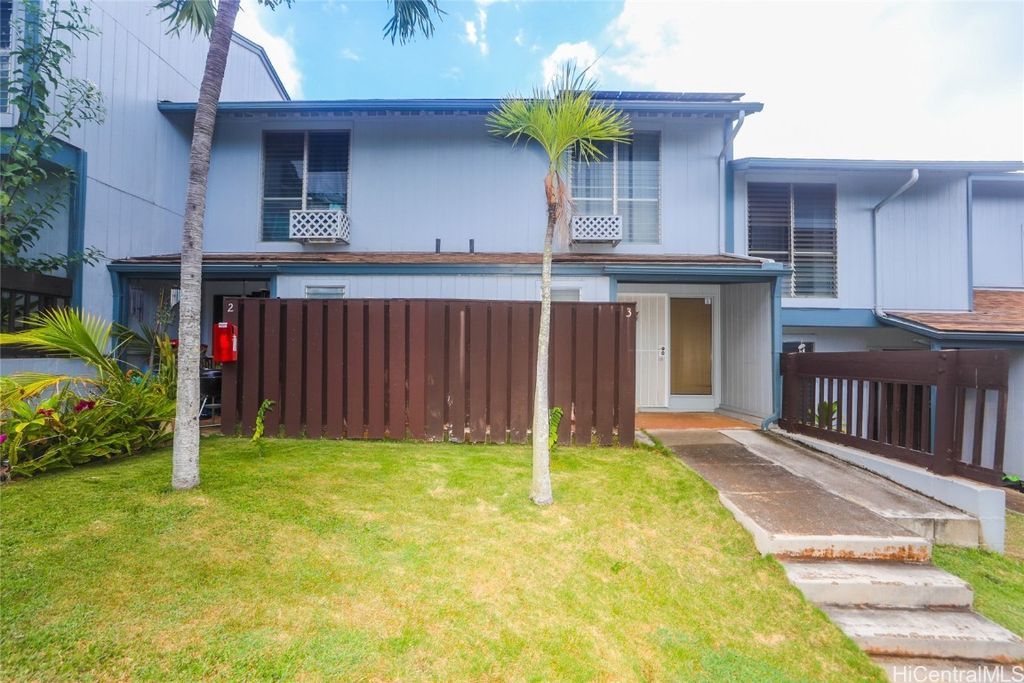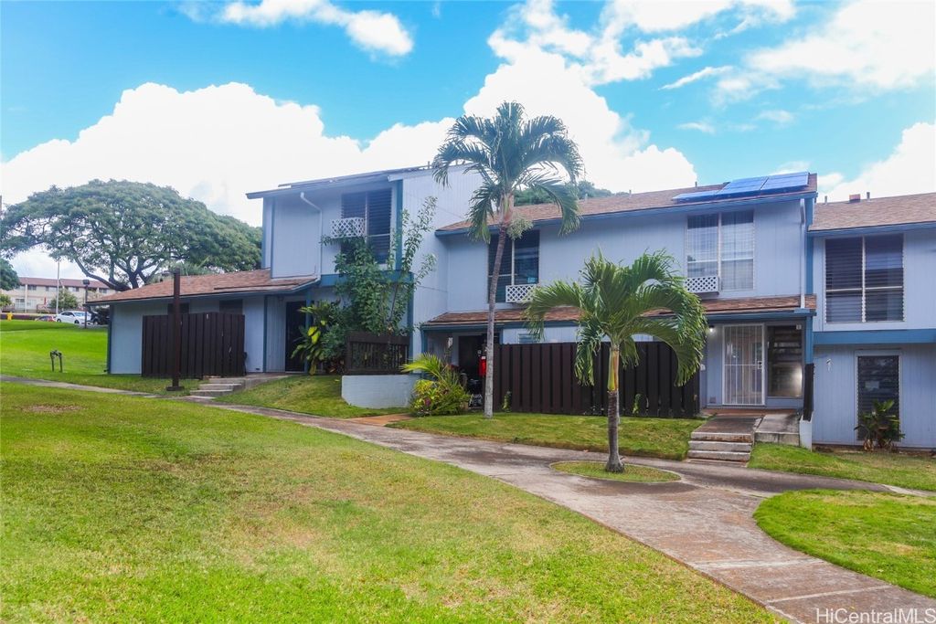 Welcome to this rarely available, move-in-ready 2-bedroom, 2-bath unit at Palehua Townhouses 2 in Makakilo! Featuring an open-concept layout with abundant natural light and refreshing breezes, this home perfectly blends comfort and style. 18 owned photovoltaic panels provide energy savings year round! The updated kitchen is equipped with modern appliances, granite countertops, and ample cabinet space. The spacious living room opens to a fully fenced lanai, ideal for relaxing or entertaining. The first level also includes a full bath and laundry area for added convenience. The interior has been freshly painted and features no popcorn ceilings, recessed lighting in the living room and kitchen, and window A/C units in each bedroom for year-round comfort. Two assigned parking stalls are included, with plenty of street parking nearby. Enjoy additional amenities such as a community pool, two playgrounds, and a recreational area. Whether you're a first-time homebuyer or seeking a low-maintenance investment, this condo is a must-see. Schedule your showing today and make this exceptional property your new home!