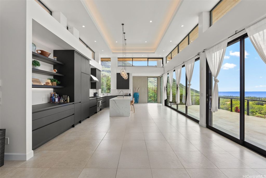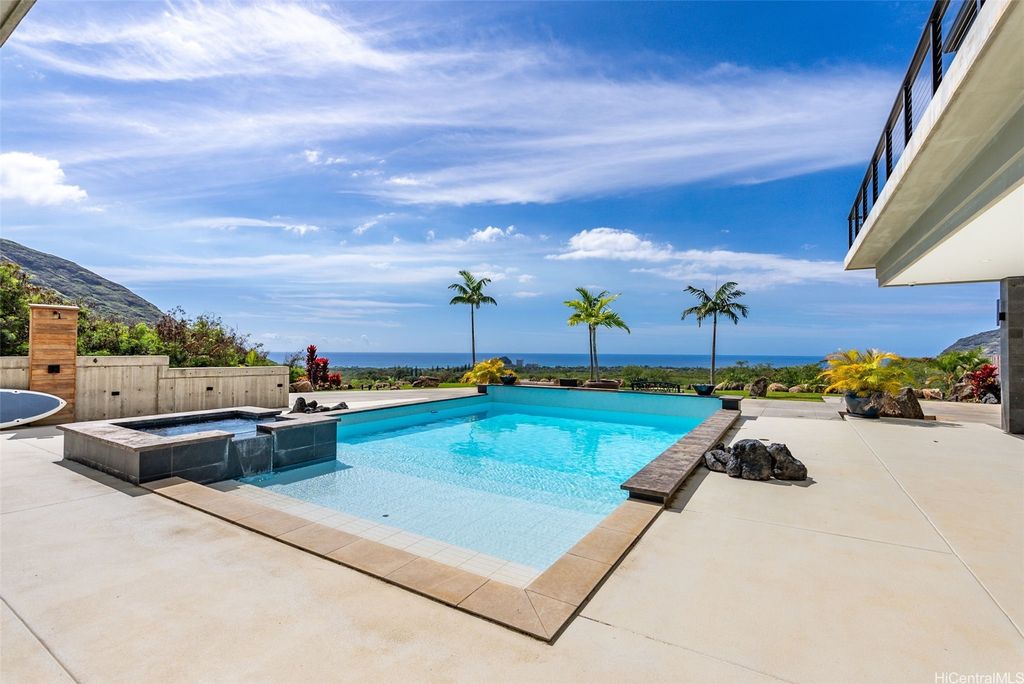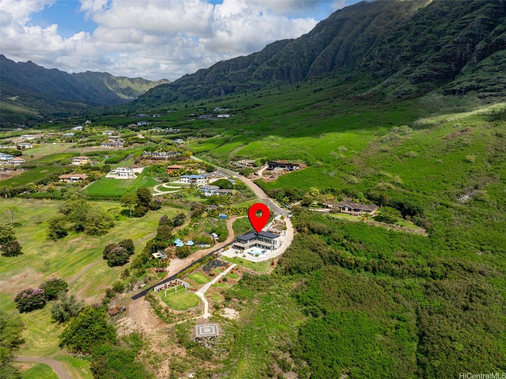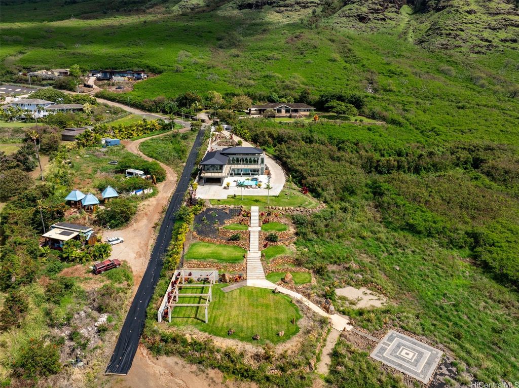 **Exceptional new price for this premier estate!** Welcome to 'Hale Makaha', a one-of-a-kind luxury estate nestled in the breathtaking, mountain-backed Makaha Valley within the gated community of Mauna "˜Olu. This elevated 2.009-acre property boasts stunning panoramic views of the ocean, mountains, sunsets, and lush valley surroundings. The main residence is designed for seamless indoor-outdoor living, featuring Fleetwood sliding doors, high-end finishes, a wraparound upper-level lanai, shaded lower deck, home theater, and elevator shaft. Outside, your private resort-style oasis includes a saltwater pool, built-in spa, laminar jets, and an outdoor shower. A landscaped path leads to the lower lot's garden pavilion"”perfect for entertaining, sunbathing, or future development. This estate has also hosted celebrity events, destination weddings, and vacation rental guests. Ample parking includes upper slab space, a long driveway, a carport, and even the ability to pull into the home. 2 TMKs being sold together: 1-8-4-029-148-0001 & 0002.