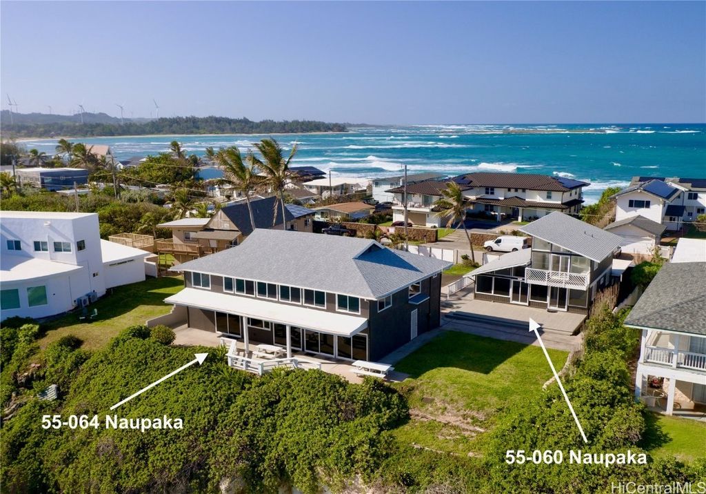 Live your Hawaii dream in this gated oceanfront compound, perfectly situated on the serene Naupaka Peninsula of Laie Point. This sale includes 2 OCEANFRONT HOMES (11 bedrooms, 7 bathrooms) on a large 16,875 sq ft lot. With approximately 100 linear feet of unobstructed ocean frontage, enjoy stunning panoramic views of clear blue ocean, Laie Bay, and the majestic Ko'olau Mountains. Both homes were recently renovated. 55-060 Naupaka Street includes an approximately 1,478 sq ft 3 bedroom 2 bath home + a 1 bedroom 1 bath ohana unit. The larger 55-064 Naupaka Street includes an approximately 3,258 sq 7 bedroom 4 bath home & a 2 car garage. Both homes have their own separate individual Tax Map Key (TMK). Rare opportunity to own two adjacent oceanfront homes on the very desirable Laie Point. Very close to BYU, the Polynesian Cultural Center, North Shore beaches, Waimea Bay, Pipeline, & the 5-Star Turtle Bay Resort, farm-to-table restaurants, world class golf, oceanfront horseback riding, walking trails, and helicopter tours. Approximately an hour drive to Honolulu by car or 15 minutes by helicopter from Turtle Bay's Heliport. Very easy to view on short notice! Welcome home to paradise!
