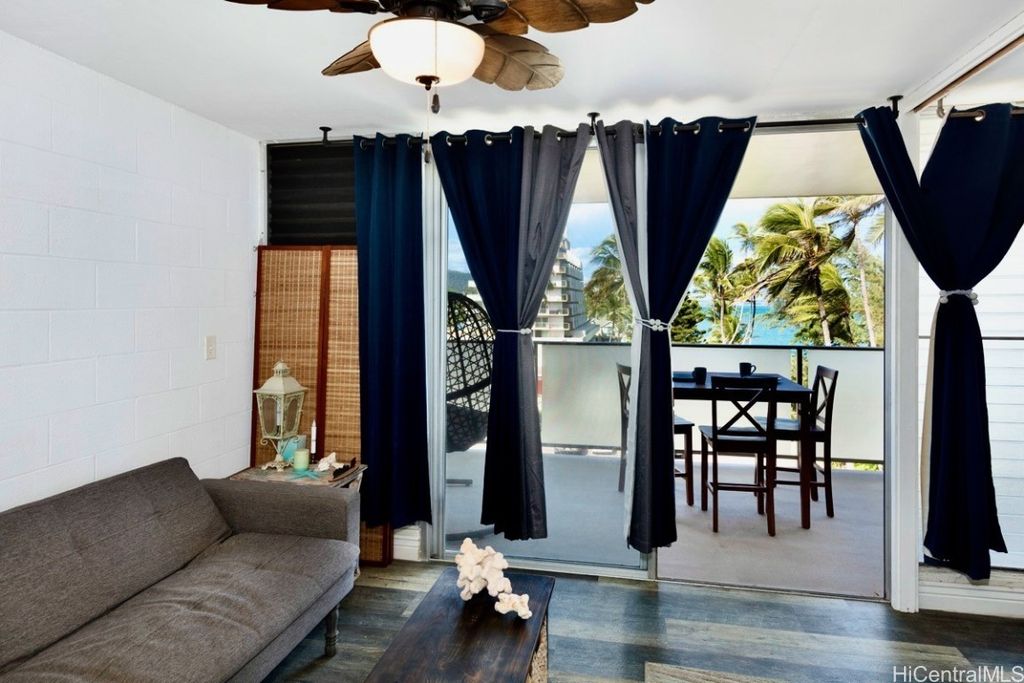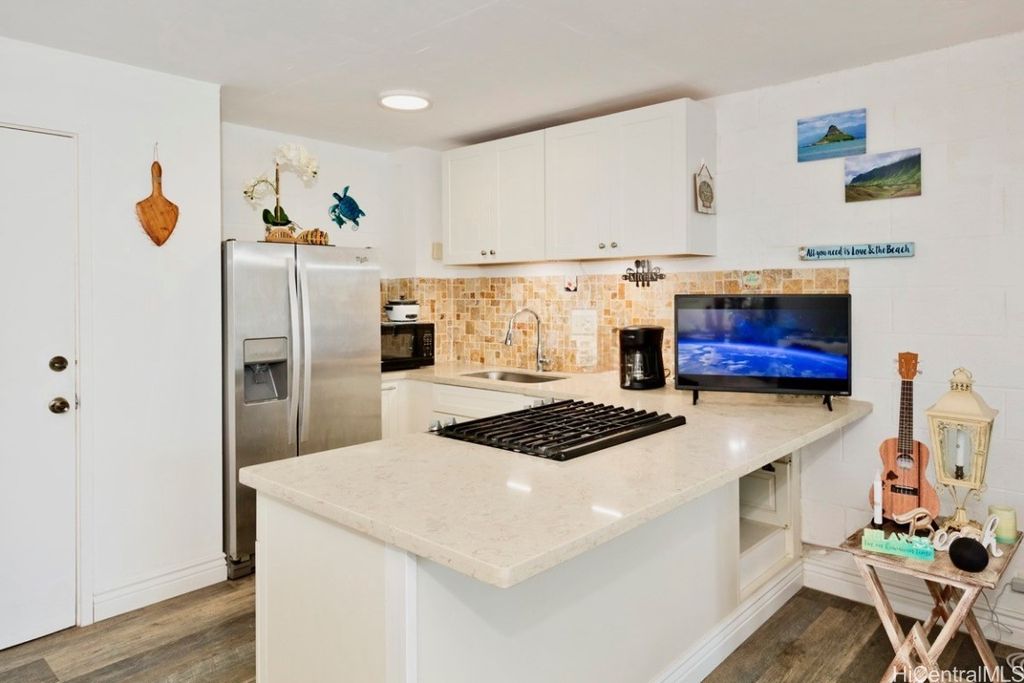 Discover the ultimate island lifestyle with this updated beachfront unit in Hauula. This one-bedroom, one-bathroom unit features an open and spacious layout, enhanced by the removal of the original partition. The kitchen has stainless steel appliances, granite countertops, and shaker-style cabinets, combining modern convenience with classic style. Wood-grain laminate flooring throughout ensures durability and easy maintenance. From your living room or the expansive private lanai, enjoy breathtaking ocean views, cool breezes, and stunning coastal scenery. The property offers great amenities, including a pool, direct beach access, a BBQ area, community laundry facilities, and secured entry. This oceanfront retreat is a rare chance to embrace the beauty and charm of Hawaii's coastal living at an affordable price. Don't miss your opportunity to own this slice of paradise!