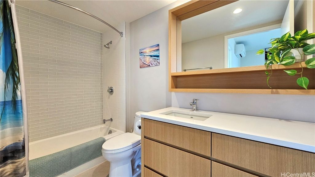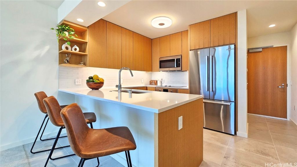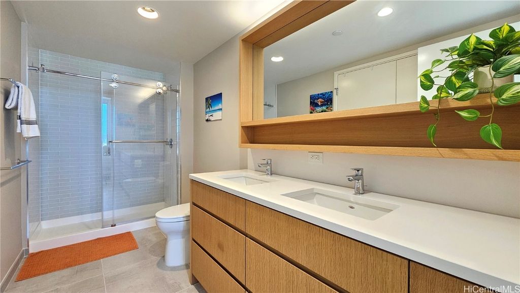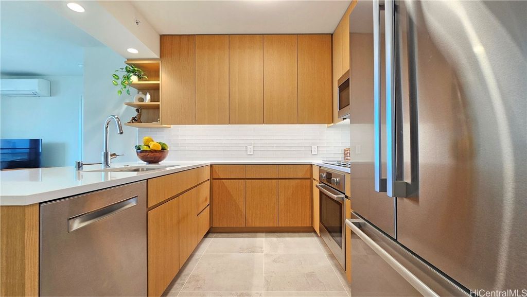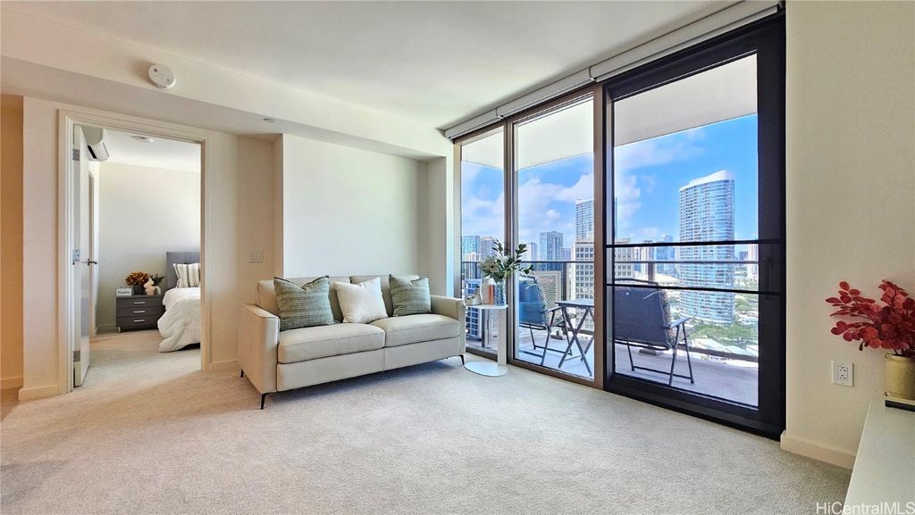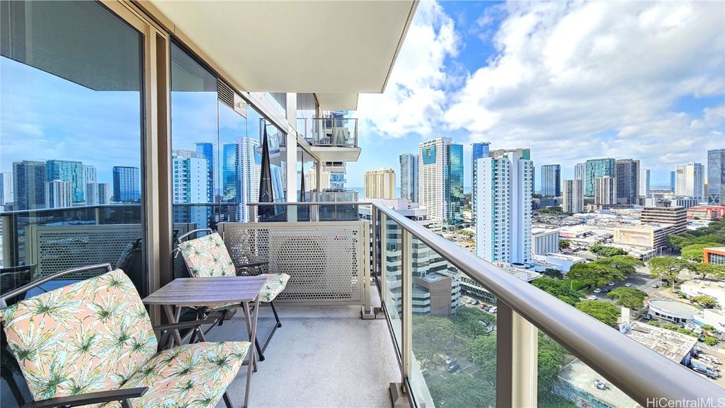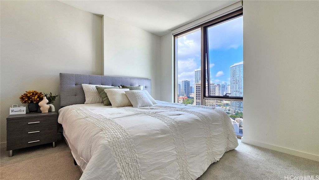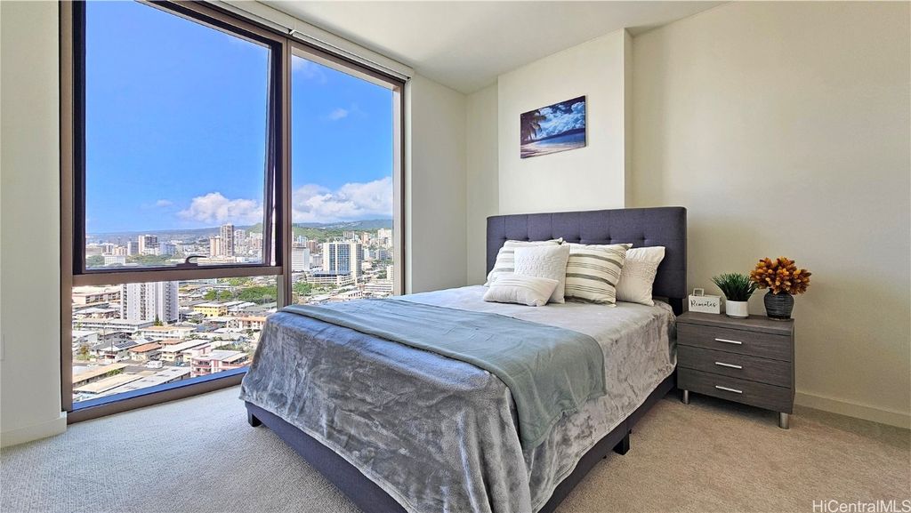 Experience modern luxury in this fully furnished 2-bedroom, 2-bathroom condo in Sky Ala Moana West, a premier residence completed in late 2023. This rare 08-line unit offers exceptional storage space right by the entrance, spacious walk-in closets, and dual sinks in the primary bath. Spacious lanai with stunning views. Enjoy breathtaking city, partial ocean, sunset, and mountain views from your beautifully designed home. High-end furnishings include a real Italian leather sofa bed, adjustable bed frames, brand-new mattresses, and motorized window shades. Custom window screens ensure an insect-free living experience. Additional highlights: "¢ 2 parking spaces + storage locker "¢ Prime location: 1-min walk to Target, Walmart, and Ala Moana Shopping Center; 5-min to Ala Moana Beach Park; 10-min to Waikiki "¢ World-class amenities: Gym, sauna, steam room, BBQ area, pools, dog park & more Move-in ready"”luxury, convenience, and the best of Honolulu living await!