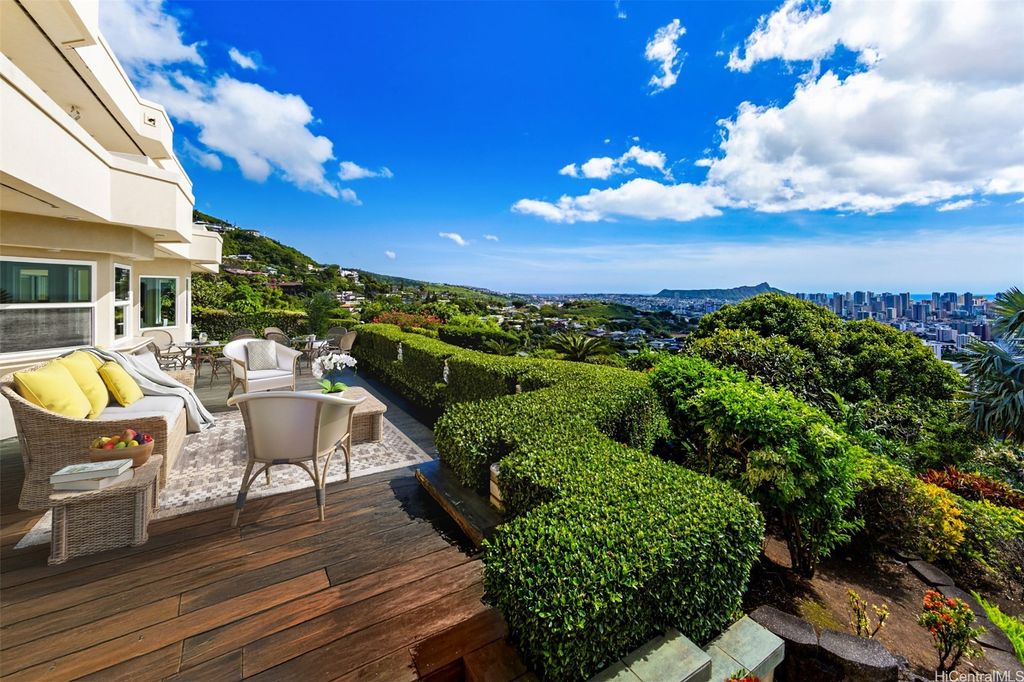 Discover an exceptional private sanctuary, nestled along Makiki Heights Drive, where breathtaking Pacific Ocean views stretch from Diamond Head to Waikiki to Downtown Honolulu. Gated entry, a large motor court, & 4-car garage welcome you home; step inside & find a commanding 6-bedroom, 8,323 sq.ft. luxury residence featuring a grand 2-story main living area, maid's quarters, wine cellar, formal dining room, multiple pocket doors & lanai access points, & much more. A serene outdoor world awaits, with walking paths, secret gardens, & secluded spaces nestled among tropical landscaping, herb gardens, flowering foliage, & old-growth Longan, Avocado, & citrus trees. This sale represents a one-of-a-kind opportunity to own a legacy large-parcel residence with unobstructed vistas of Oahu's iconic scenery & destinations. Situated minutes to urban Honolulu, fine dining, boutique shops & daily needs, plus near-endless options for beach activities & entertainment. Welcome home to 2443 Makiki Heights Drive. Listing includes enhanced, virtually staged and zoomed-in photos.