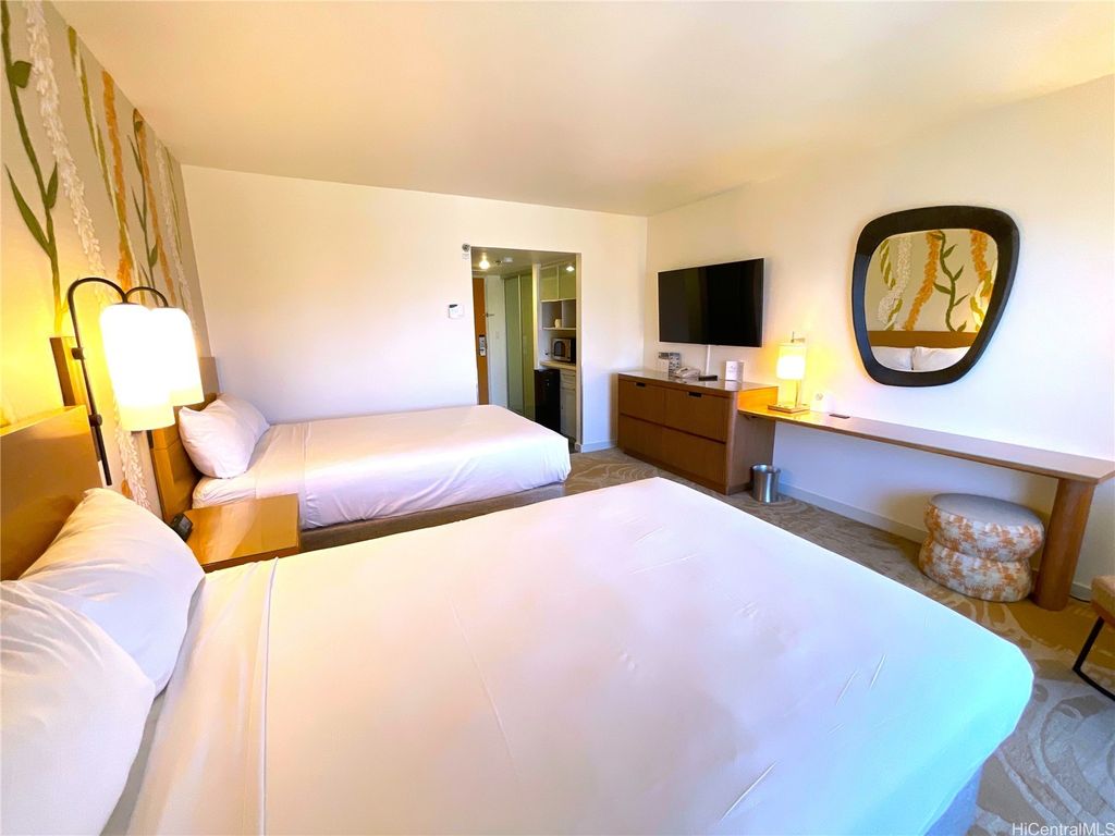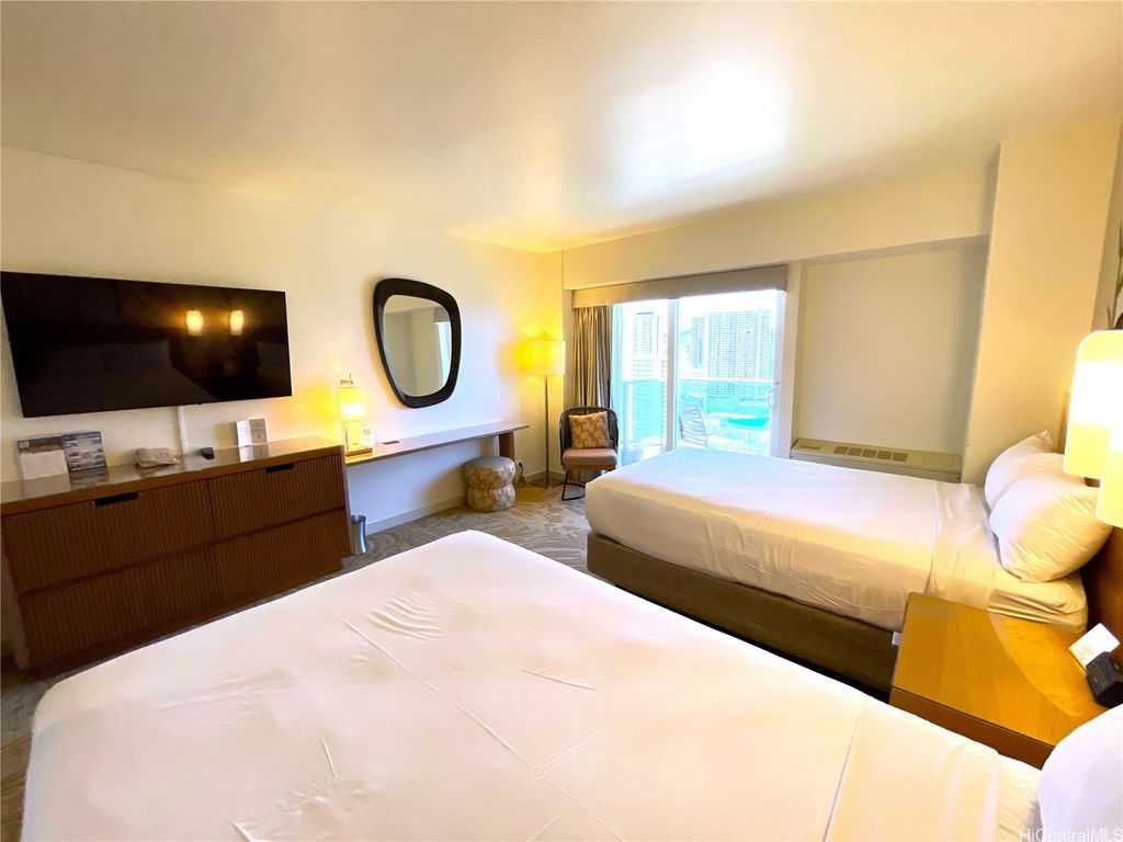 This high-floor modern studio offers 345 SQF of luxury living with an ocean view. Enjoy world-class hotel amenities, ensuring every comfort is met. Centrally located near the beach and Ala Moana mall, indulge in shopping, dining, and entertainment within walking distance. With its vacation rental potential, you can earn income when not enjoying the island life yourself. Plus, Ala Moana Hotel allows outside management companies, to maximize income and minimize hassle. Don't miss this opportunity to own a slice of paradise that's both lucrative and luxurious! Please first check out the virtual tour. Prearranged and prepaid renovation finished in May - a bonus for any new buyer.