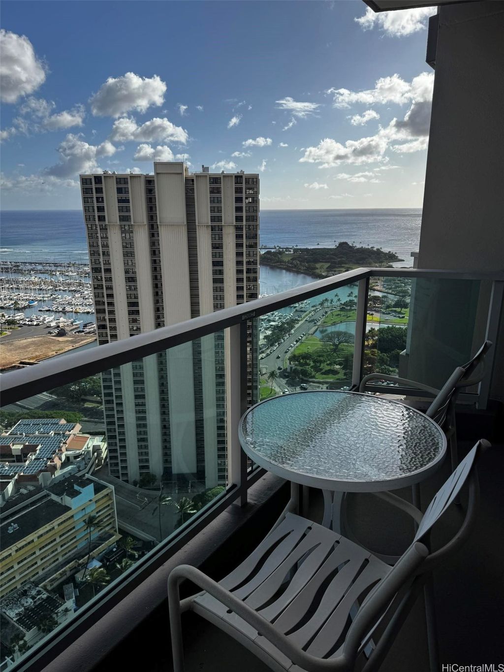 Motivated seller for this rare high floor studio with lanai with waikiki, mountain, ocean, marina and sunset views. The Unit has been fully renovated just a few months ago ! New furnishings, wallcovering, carpet, etc all fresh and new at no cost to you ! This unit has been in the Mantra Hotel pool, has positive cash flow and we can share the last 2 years of accounting. You can keep it in the hotel pool, self manage or hire from one of the many other management company's ! Enjoy your own piece of paradise with this well known complex with restaurants , scuba shop, right at the beginning of famous Waikiki and directly connected to Ala Moana Mall. Just a short stroll across the street to famous magic island and its lovely lagoon and beaches. Close to walk to the Hawaii Convention Center, and renowned Waikiki restaurants. World class amenities such as valet, concierge, meeting rooms, sauna and steam, pool, gym and more. You are also welcome to block your own time of up to 90 days a year to stay in your unit and enjoy all the amenities.