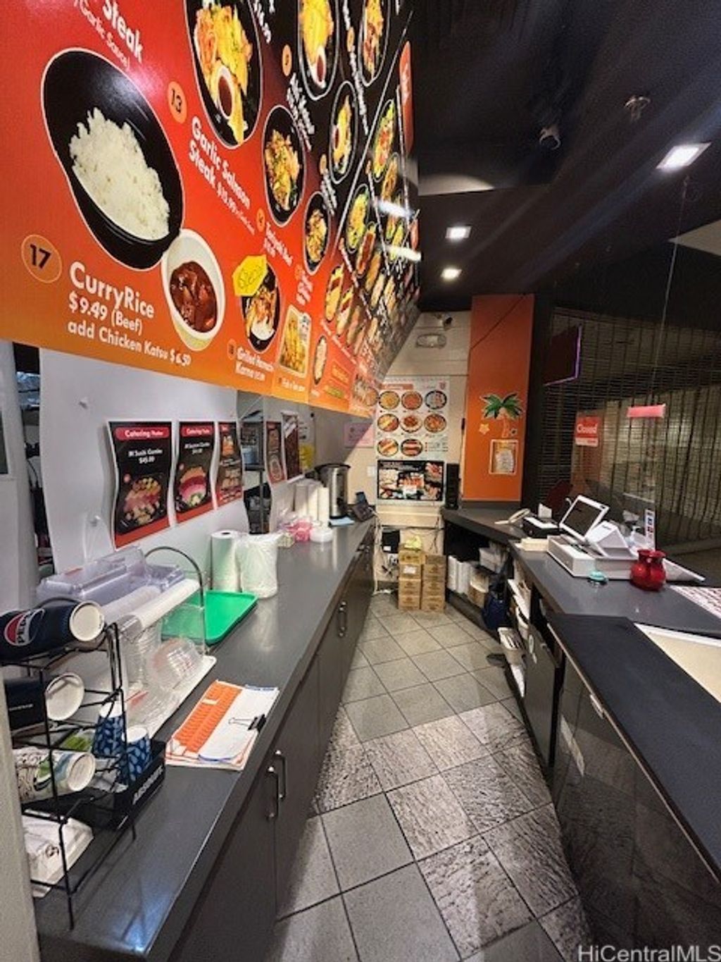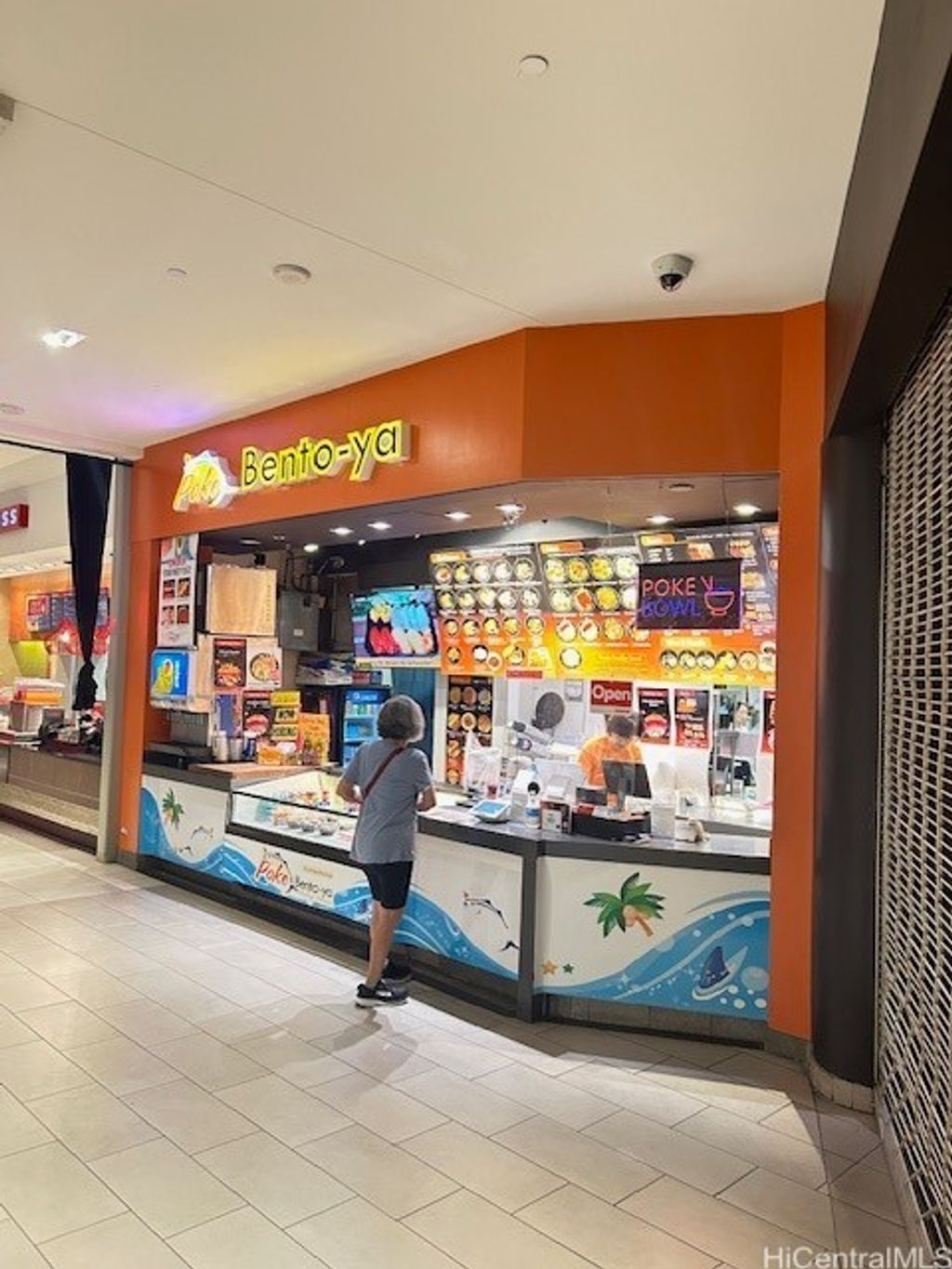 Your opportunity to purchase a turn-key restaurant in popular Pearlridge Shopping Center. Ample parking and steady foot traffic. Premium include FF&E. Subject to Landlord's approval. Poke & Bento-ya is located on the third floor of the Pearlridge Wai Makai food court, adjacent to the movie theaters. The business opened in 2018 and serves fresh sushi, sashimi, maubies, bentos, poke bowls, and salads. The spacious kitchen includes two separate cooking areas with hoods. The kitchen is connected to a centralized grease interceptor and includes several refrigerators, freezers, sinks, and preparation tables. The lease rent is included Cam.