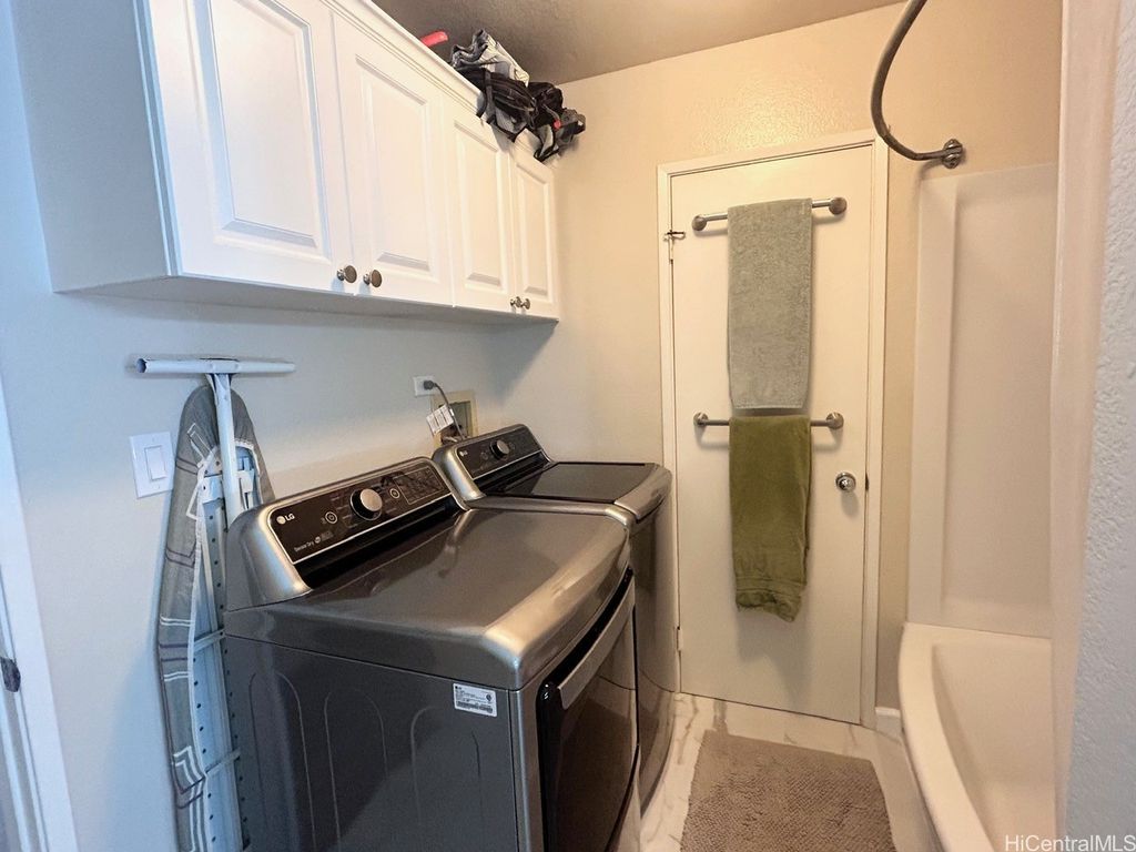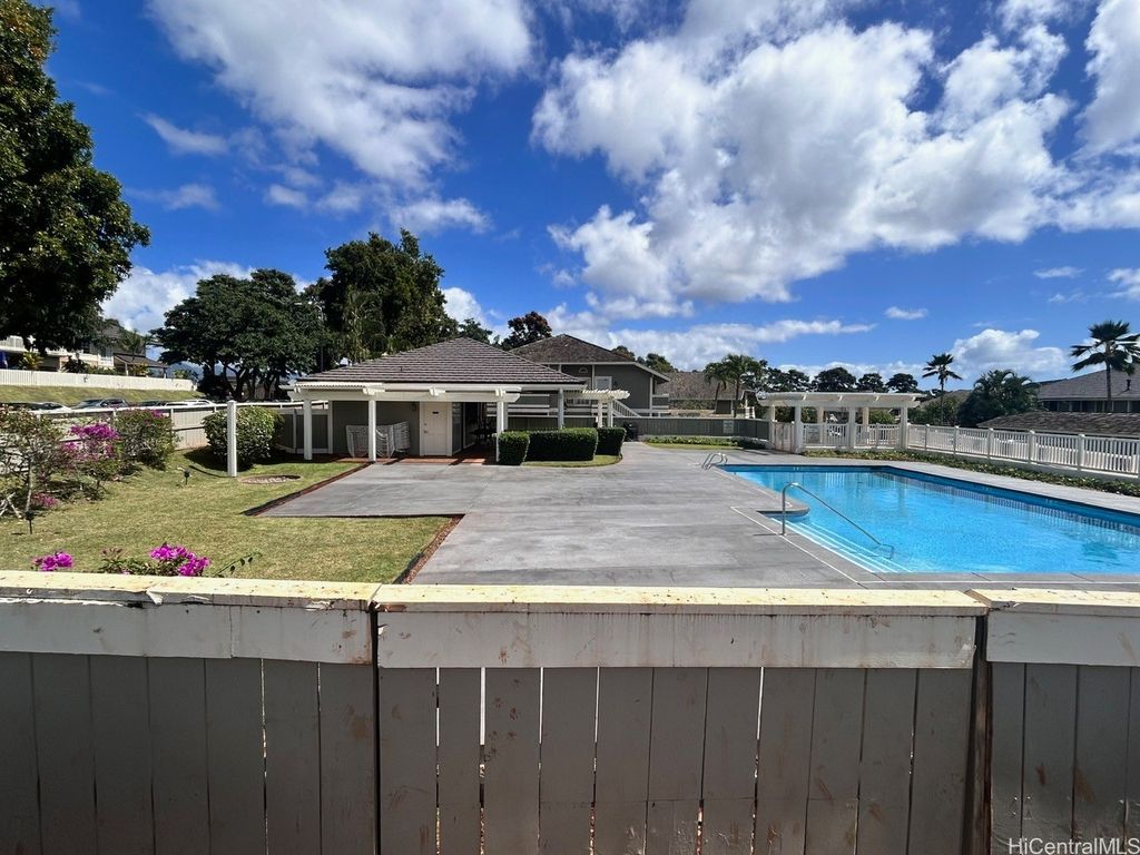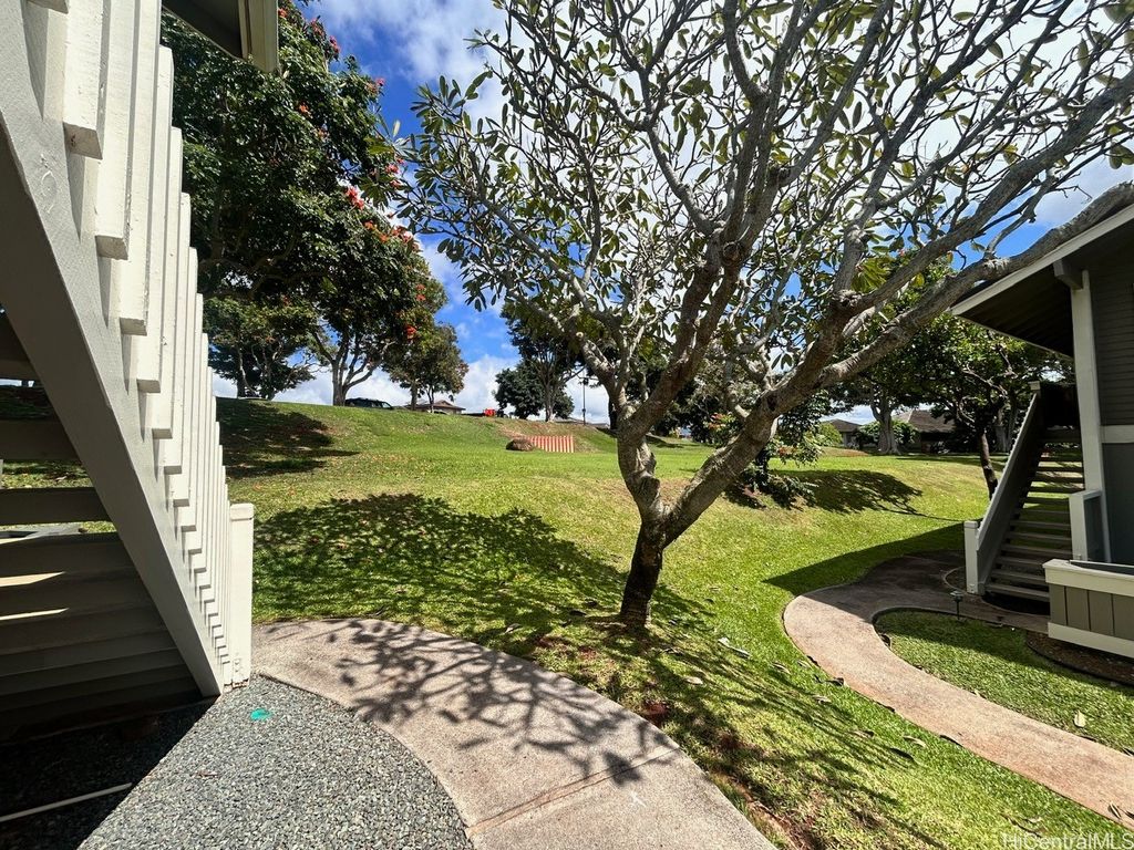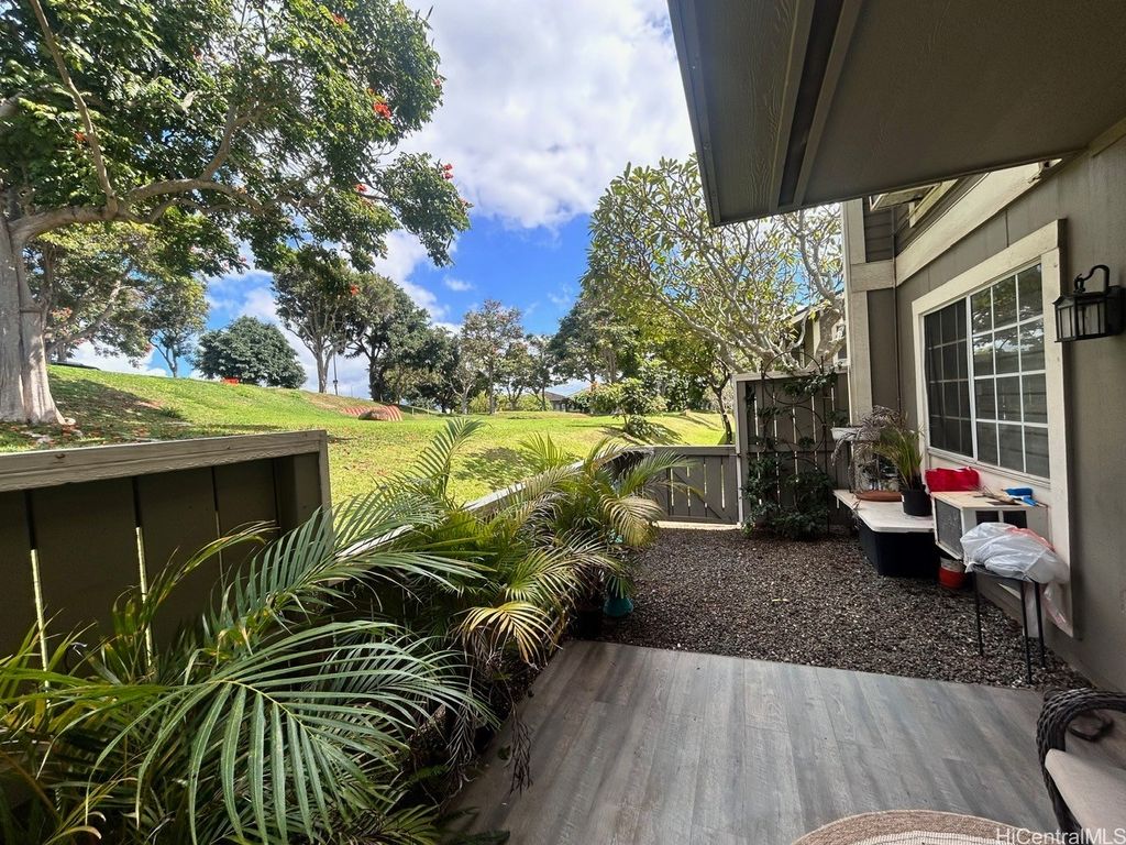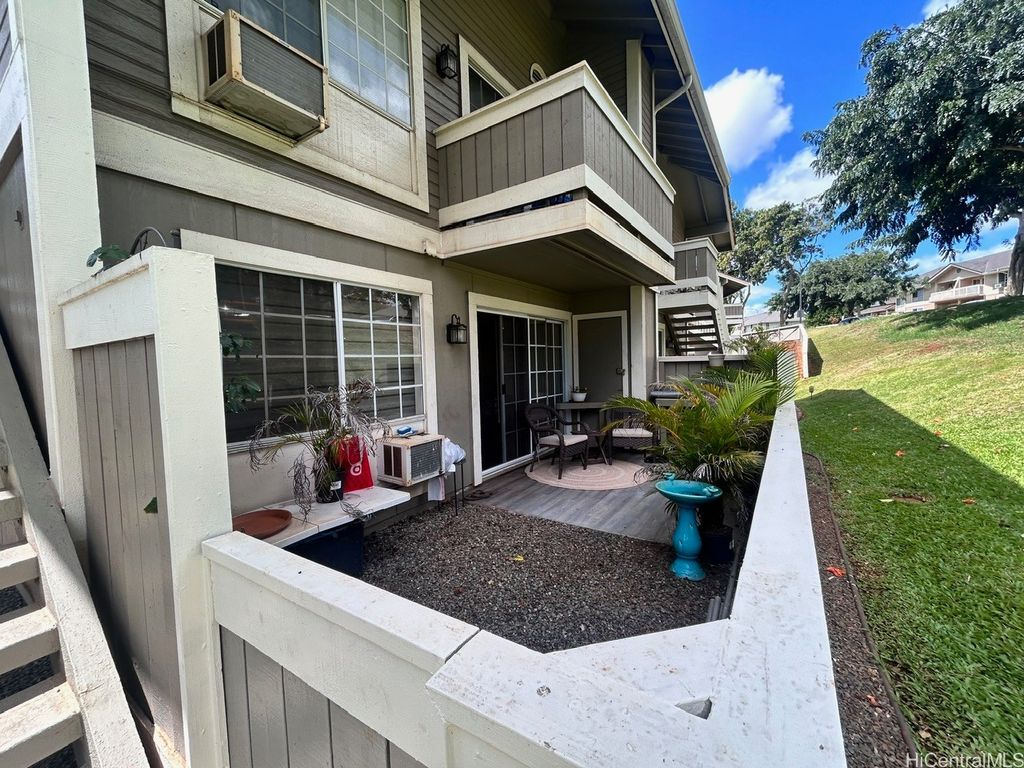 Welcome to Royal Palm at Waipio ! PRICE REDUCTION ! Well maintained GROUND floor unit with 2 STALLS is located in Phase I and conveniently just a walk away from the Club house, pool and BBQ Amenities. Unit sits on back side of the building which provides a little more privacy with less foot traffic. The tree lined main street above provides hours of shade and cool breezes for you to enjoy your covered patio. Upgrades to this home in the last few years include the Vinyl plank flooring, Granite countertops in Kitchen and Bathroom, Karastan Berber carpets in bedrooms, Marble flooring in bathroom, Shower, LED lighted Bathroom mirror with steam de-mister and Interior paint. What about the appliances ? Yes, all the appliances were replaced as well which includes Ice Box, Stove, Microwave, Full size Washer/Dryer, sink and dishwasher. Also installed are newer ceiling fans and remote controlled modern blinds. Nothing for you to do but move in ! Royal Palm at Waipio is a very well maintained community with Property Manager on Site and Security Patrol throughout. Located near hospitals, a multitude of Stores and shops, Bus routes and not to mention Costco's !