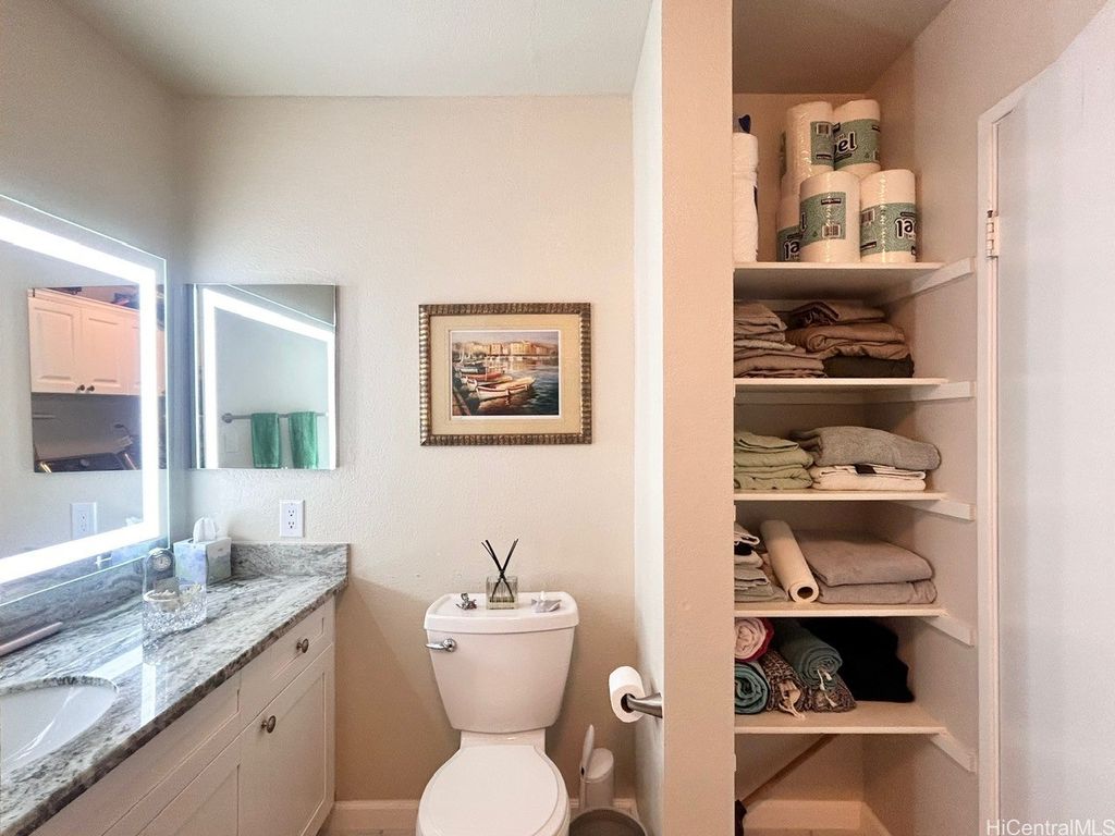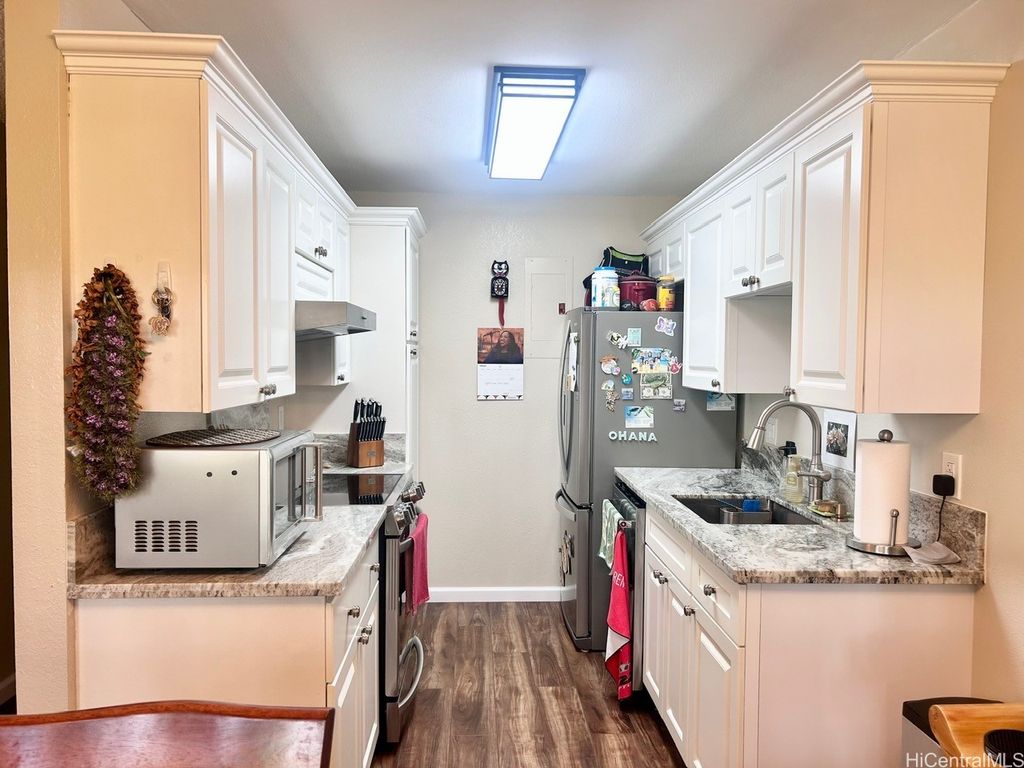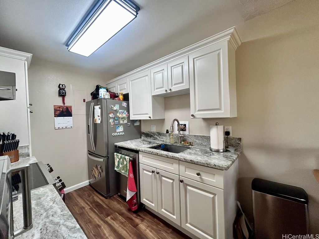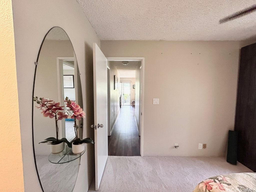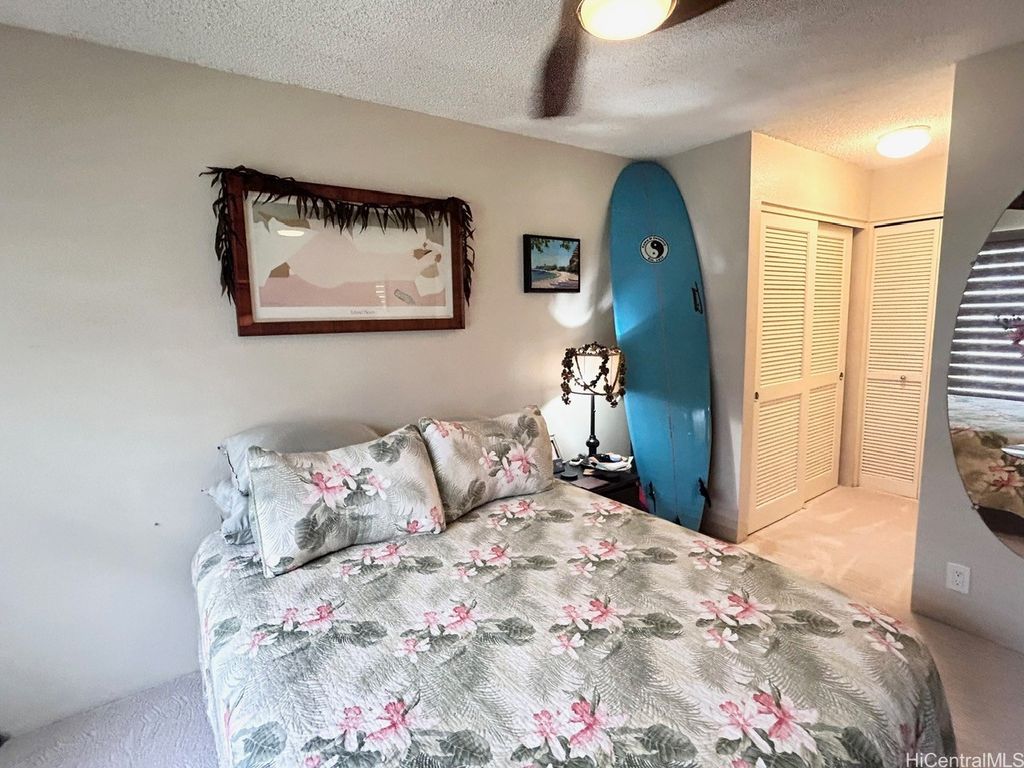 Welcome to Royal Palm at Waipio ! PRICE REDUCTION ! Well maintained GROUND floor unit with 2 STALLS is located in Phase I and conveniently just a walk away from the Club house, pool and BBQ Amenities. Unit sits on back side of the building which provides a little more privacy with less foot traffic. The tree lined main street above provides hours of shade and cool breezes for you to enjoy your covered patio. Upgrades to this home in the last few years include the Vinyl plank flooring, Granite countertops in Kitchen and Bathroom, Karastan Berber carpets in bedrooms, Marble flooring in bathroom, Shower, LED lighted Bathroom mirror with steam de-mister and Interior paint. What about the appliances ? Yes, all the appliances were replaced as well which includes Ice Box, Stove, Microwave, Full size Washer/Dryer, sink and dishwasher. Also installed are newer ceiling fans and remote controlled modern blinds. Nothing for you to do but move in ! Royal Palm at Waipio is a very well maintained community with Property Manager on Site and Security Patrol throughout. Located near hospitals, a multitude of Stores and shops, Bus routes and not to mention Costco's !