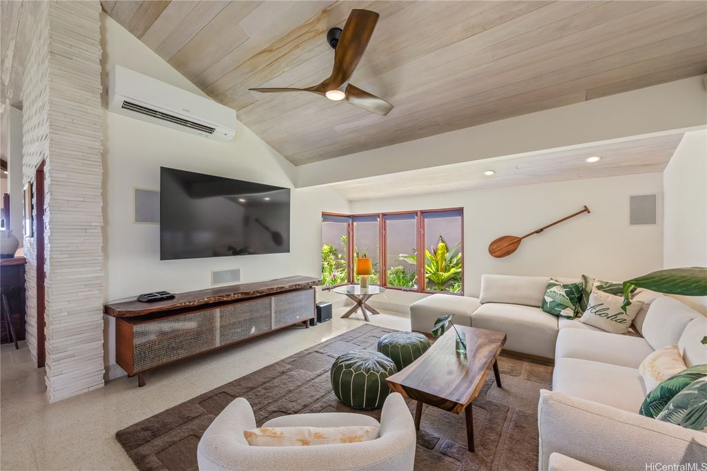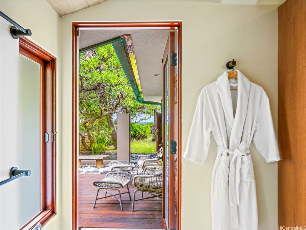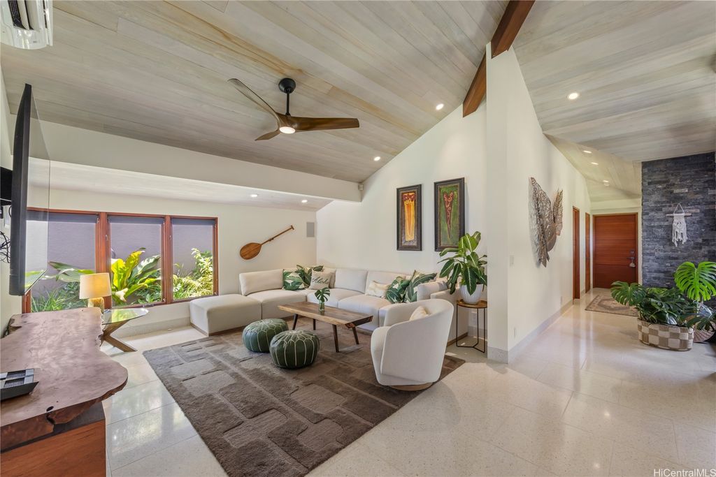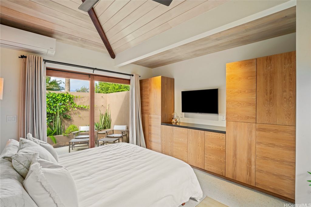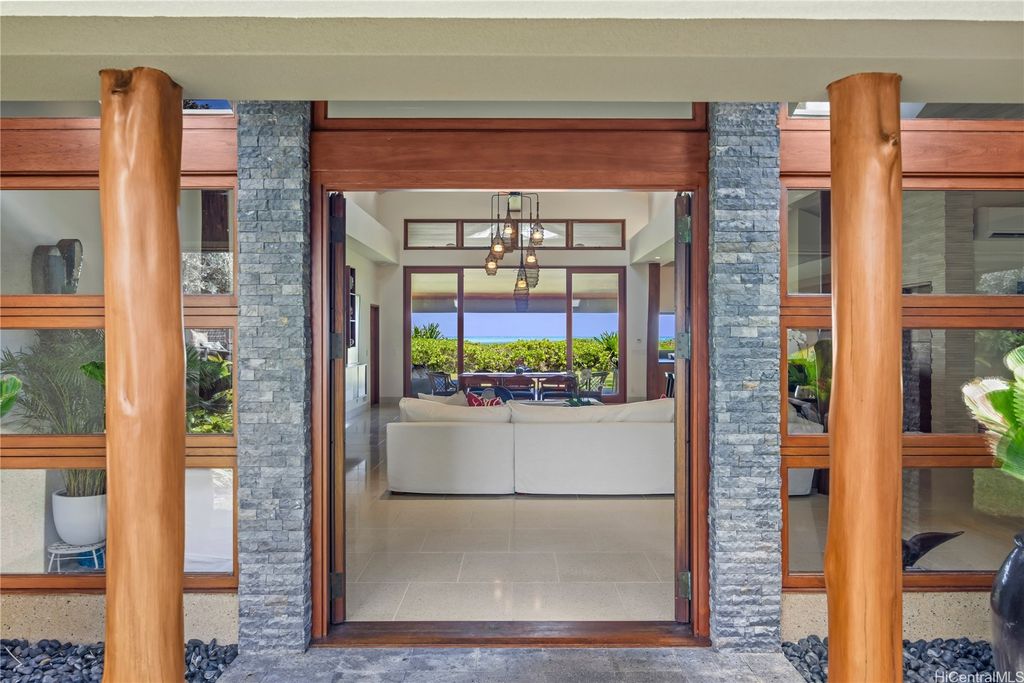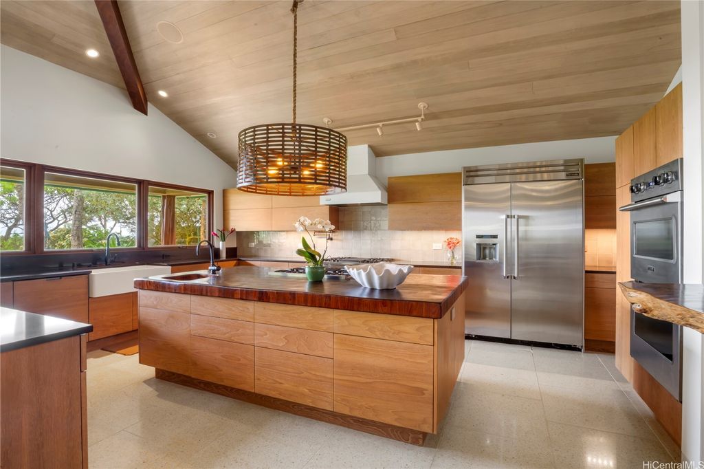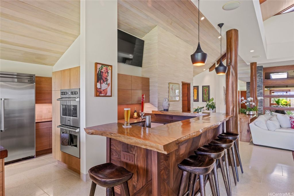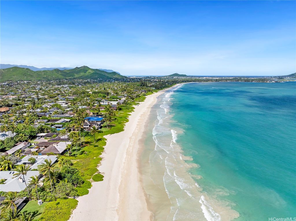 Nestled along the pristine shores of Kailua Beach, 376 Dune Circle offers an unparalleled beachfront living experience on one of Oahu's most coveted beachside streets. This luxurious 4-bedroom, 4-bathroom single-story retreat on a generous 10,283-square-foot lot blends timeless elegance with modern comfort. This home showcases a warm, earthy palette inspired by the surrounding sand and native hardwoods such as koa, monkeypod and ohia creating a harmonious connection with its natural environment. Step inside to discover an open, light-filled interior with high peaked ceilings and terrazzo tile floors effortlessly combining casual sophistication with low-maintenance island living. The well designed layout features rich wood and stone accents, complimenting the azure ocean views that serve as the home's stunning backdrop. The spacious living areas flow seamlessly, offering the perfect setting for relaxation or entertaining, while the meticulously appointed kitchen with high end appliances reflects a commitment to quality and style. Thoughtfully designed by Jaime Jackson and Mark Eyler, the architect. A true sanctuary where luxury meets the laid-back spirit of the islands.