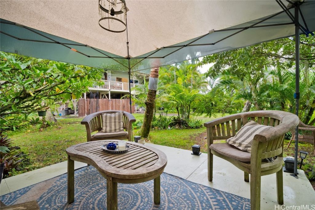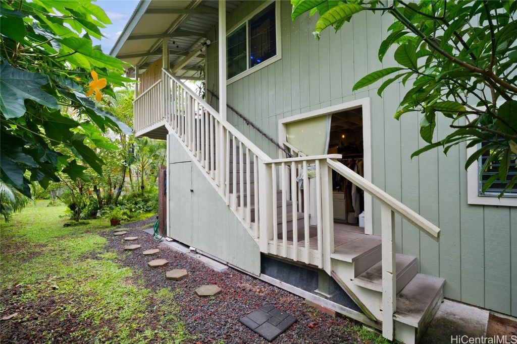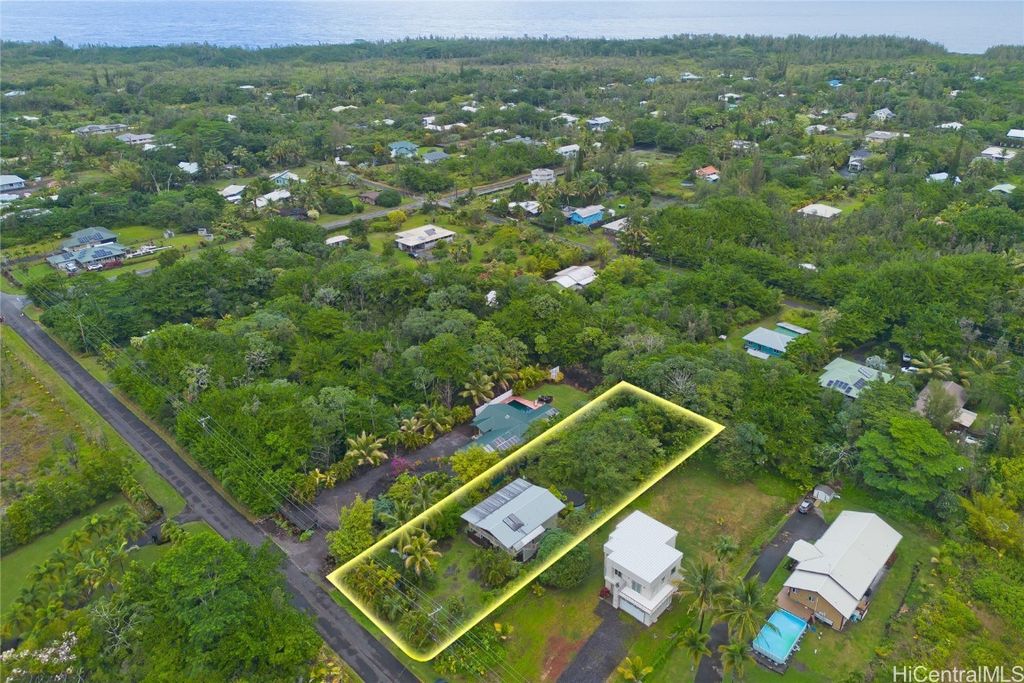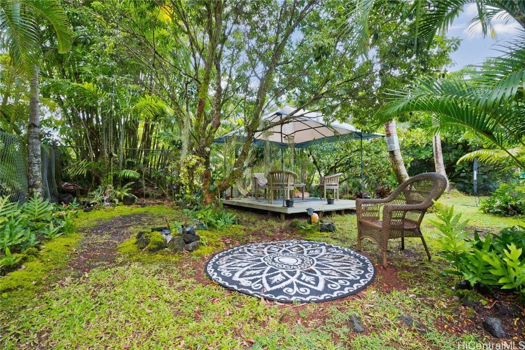 This hidden oasis offers the perfect blend of island comfort and natural beauty, just moments from the Pacific Ocean, where you can enjoy the refreshing ocean breeze & peaceful surroundings. This two-story home offers a versatile 3-bedroom, 2-bath layout, with 2 bedrooms and 1 bath upstairs, and 1 bedroom and 1 bath downstairs. Enjoy a spacious screened lanai upstairs, ideal for relaxing or entertaining, & a large open area downstairs for a workshop, gym, or extra storage. Come experience a True Garden Paradise! Step outside into a vibrant paradise of lush greenery! This botanical oasis features pink trumpet trees, painted eucalyptus, rainbow shower trees, bamboo, and more, creating a serene tropical escape. Enjoy the sweet scents of puakenikeni, orchids, plumeria, and night-blooming jasmine, while coconut, banana, avocado, and other fruit trees thrive here. With Tahitian gardenia, classic gardenia, & lush foliage, it's the perfect island retreat. Whether you're looking for shade, tropical fragrance, or fresh fruit straight from your backyard, this garden paradise has it all! Come, see, & experience the magic of this one-of-a-kind tropical retreat! Big Island MLS 718169