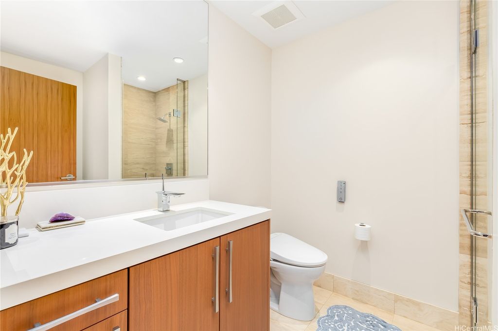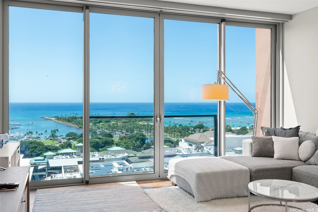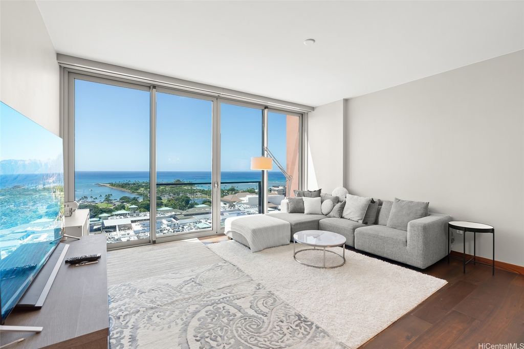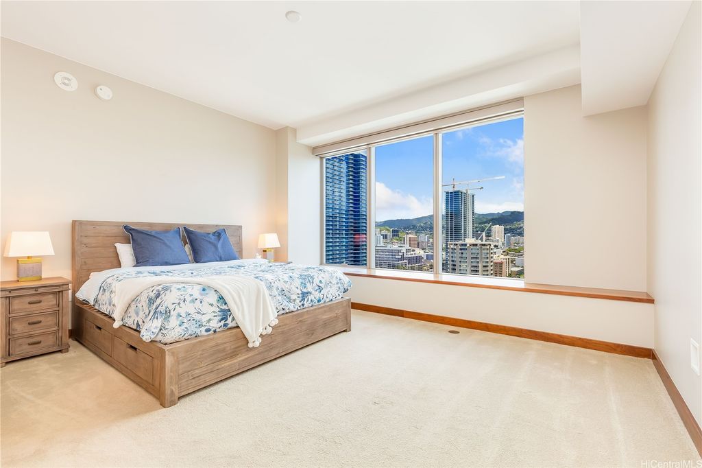 One Ala Moana is located adjacent to Ala Moana Shopping Center, offering convenient access to abundant shopping and dining venues. The amenity deck provides a pool, hot tub, three large BBQ cabanas, a chef's dining kitchen room, a party room, a fitness center, a game room, a theater room, and guest suites for residents. Staff are on duty 24/7, striving to ensure residents live comfortably. Additionally, Unit #1900 includes a deeded storage room approx. 97 sqft., in which the other monthly fee of $46.25 is maintenance fee for the storage room.