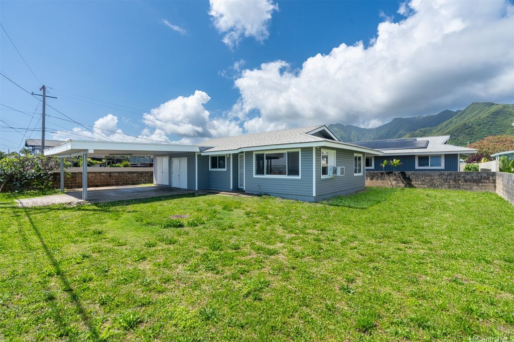 Experience the epitome of coastal living in this delightful single-story residence nestled in a friendly neighborhood. This 3-bedroom, 2-bathroom home offers unobstructed, breathtaking ocean views, combining privacy with the convenience of a securely fenced-in yard and a double carport. The interior has been freshly painted, creating a bright and welcoming atmosphere. Living here, you're just minutes away from a local shopping center, the renowned Pounders Beach, and the famous Polynesian Cultural Center"”making it an ideal spot for relaxation and adventure. Don't miss the opportunity to own a piece of paradise where every day feels like a vacation!