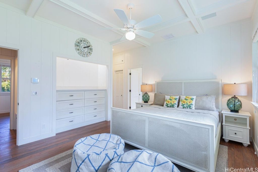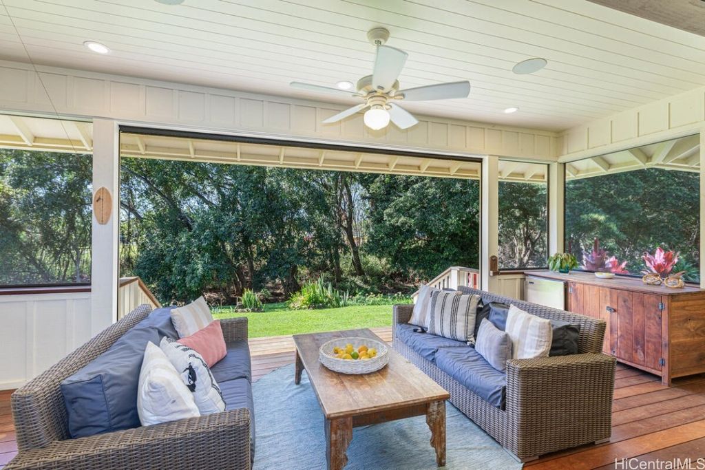 Welcome to the prestigious Poipu Beach Estates! This exquisite custom-built home is just minutes from Kauai's finest beaches and restaurants. Tucked away along a private driveway and adjacent to the serene Waikomo Stream, you'll experience a unique sense of peace and privacy. Owned by just one owner, the home was crafted as a forever home, featuring high-quality materials and a seamless blend of modern luxury with timeless Hawaiian architecture. Enjoy soaring ceilings, central air conditioning, a photovoltaic solar system, and a remote-controlled screened-in deck. The gourmet kitchen is a chef's delight, equipped with a Sub-Zero refrigerator, Wolf gas range, and Miele dishwasher. This fully furnished turnkey property is also a successful vacation rental, situated in one of Kauai's few licensed zones for nightly rentals, providing an excellent income opportunity. Step outside to an outdoor oasis complete with lava rock wall showers and a spacious fire pit, perfect for gatherings or quiet evenings. The two-car detached garage includes an office space, private media room, and hurricane shelter, ensuring both functionality and elegance.