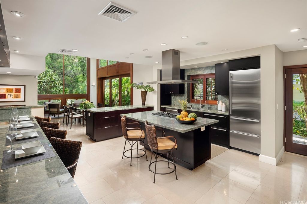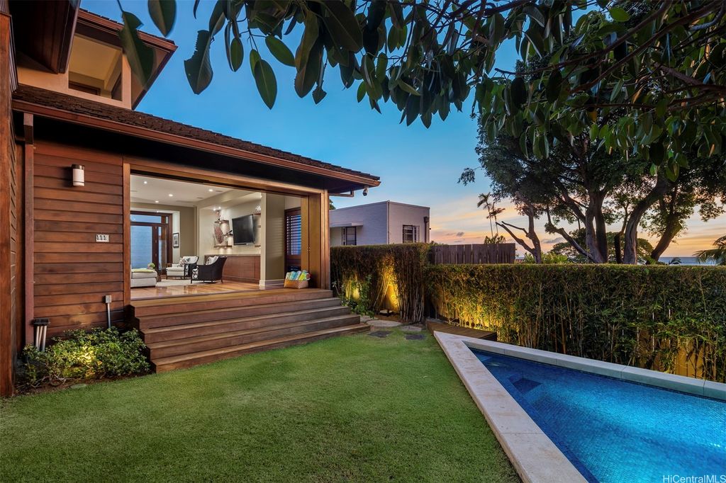 Coastal Living & The Perfect Location! Stunning 4-BD, 4.5 BA residence located on one of Honolulu's most coveted streets in the premier neighborhood of Diamond HD, offers numerous custom features & beautiful craftsmanship throughout. The central living spaces are lovely w/ a subtle & soothing color palette accentuated w/ rich hued hardwood floors & custom pocketing walls of glass framed in Mahogany wood. The seamless connection to the outdoor lounge & BBQ veranda, tiled pool & grassy lawn areas w/ beautiful mature trees & tropical landscape is what life in Hawaii is all about! Prof kitchen w/ stainless appliances & expansive counter seating connects to a dramatic dining area w/ elevated ceilings & striking walls of glass that open to enjoy island trade winds. The Primary Suite w/ adjoining outdoor balcony provides coastal views of azure waters by day & sunset glows at night. Enjoy a lovely bath w/ onyx countertops, deep soaking tub & walk in shower. Three addt'l bdrm suites all w/ private baths provide ample room for family or visiting guests. This premiere location is merely minutes to sandy beaches, surf spots, parks, farmers market, Waikiki, restaurants, shopping, & more!