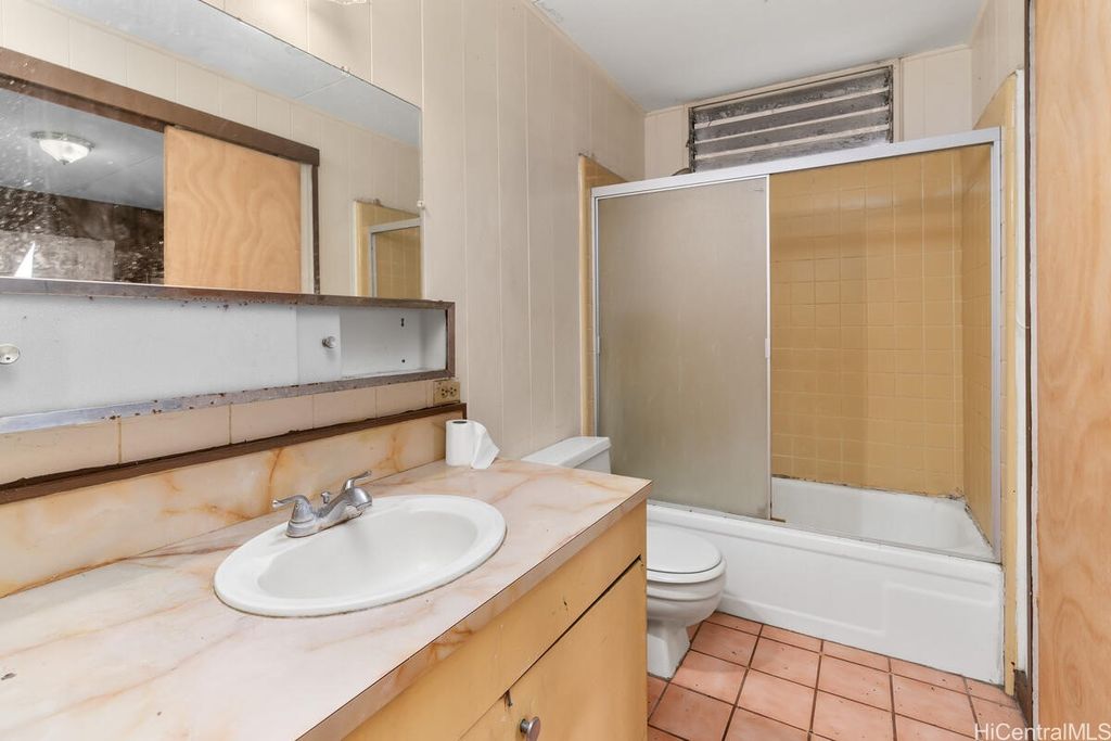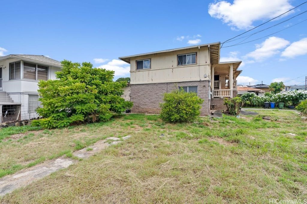 Prime location situated in a corner lot and close to Fort Shafter and Middle Street. This home is conveniently located near a bus stop with easy access to freeways, schools, stores, restaurants, and other businesses. Upstairs has 6 bedrooms and 2 full baths (wood frame), and downstairs has 4 bedrooms and 2 full baths (masonry). Just installed New Roof! Overall, the house will need some repairs and updating to make it shine again. House is being conveyed in As-Is condition. Open House Sunday, Sept 28th from 2-5pm.
