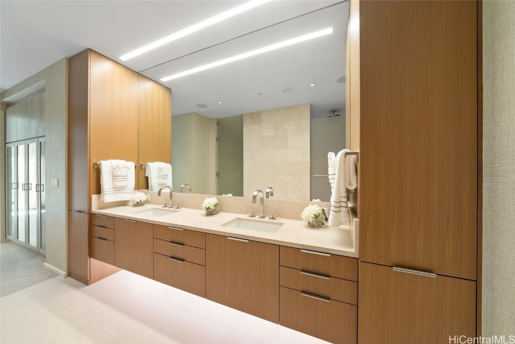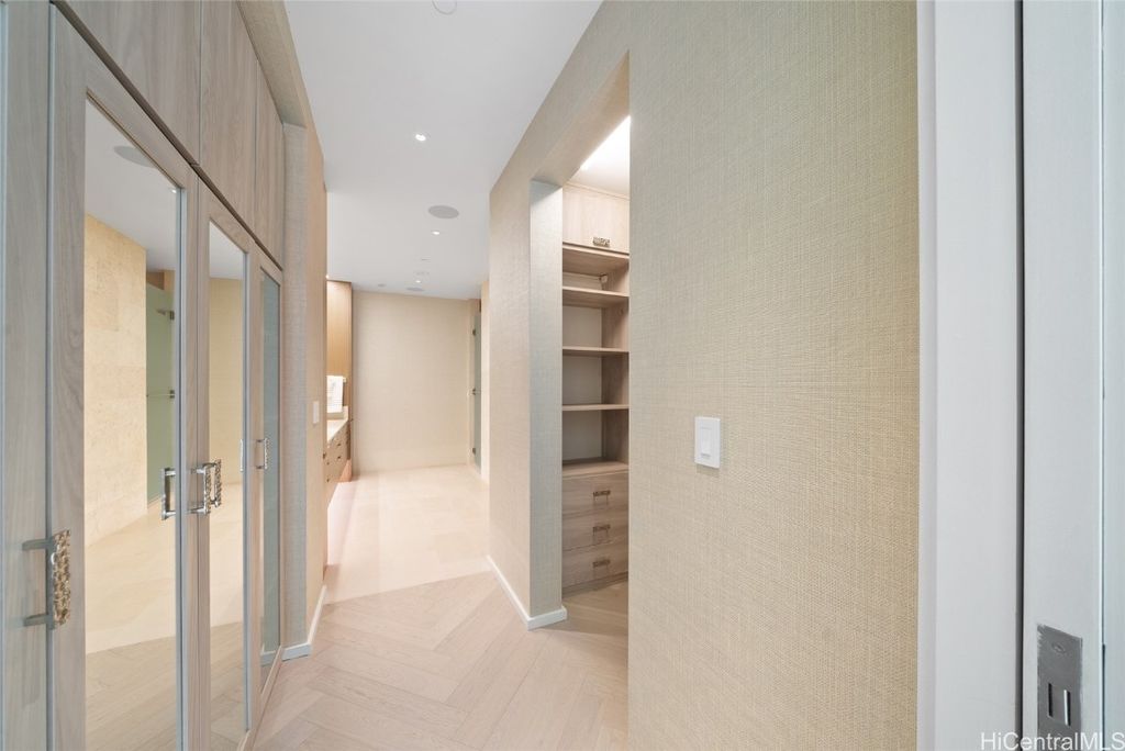 Distinctive brand-new renovated Courtyard Residence. Every detail of Unit 2302 has been thoughtfully upgraded with the finest materials sourced from around the world, blending modern sophistication with timeless design. Step into a grand entryway adorned with custom wood panels and a striking Taj Mahal quartzite accent wall in a leathered finish from Brazil, setting the tone for the exquisite craftsmanship throughout. The new sandy tones European oak wood floors throughout the living space, laid in a stunning herringbone pattern, add warmth and depth to the space. The kitchen was upgraded with custom-cut Taj Mahal porcelain slab floors in a satin finish from Italy and polished Cristallo quartzite backsplash and island bar die from Brazil. The adjacent dining and living areas exude sophistication, enhanced by Phillip Jeffries "Penthouse Pleats" wallpaper for a refined touch. The renovated second bathroom boasts a custom oak vanity topped with Taj Mahal quartzite, complemented by textured Spanish porcelain accent walls, creating a spa-like retreat. Nestled within the prestigious Park Lane community, Unit 2302 offers an exclusive blend of luxury, comfort, and contemporary design.