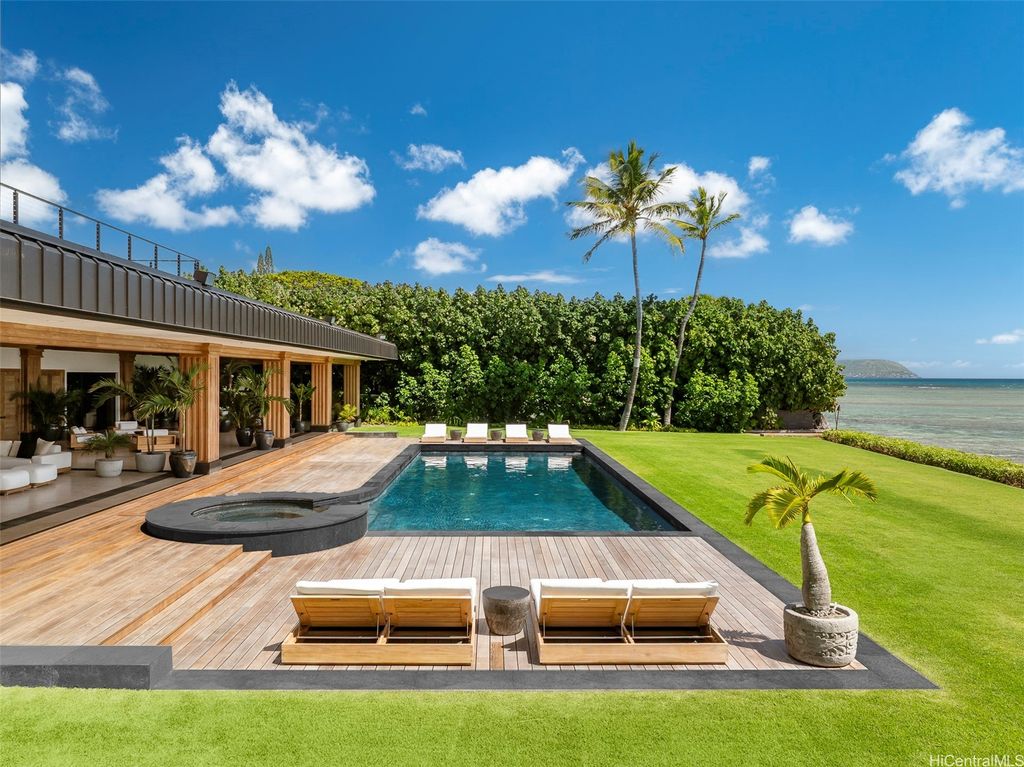 Spectacular Oceanfront Estate in Prestigious Kahala- Welcome to a stunning oceanfront estate in Kahala, a rare 1.3-acre retreat from street to sea. With 171 linear ft of breathtaking ocean frontage, this newly reimagined home blends contemporary design w/Hawaii's natural beauty. A gated entrance leads to a grand motor court, setting the tone for exclusivity. Inside the 10,000 sq ft, single-level HM, rich Burma Teak, soaring ceilings, & floor-to-ceiling glass create a seamless indoor-outdoor connection. Walls of glass pocket away, revealing uninterrupted ocean views. The expansive oceanfront lanai, spanning 5,000 sq ft, is designed for intimate gatherings or grand entertaining, featuring a sunken wet bar, built-in BBQ, & multiple lounge areas. The primary suite is a private retreat w/ lanai access & a spa-like bath wrapped in stone. Each guest suite offers its own peaceful escape, w/ separate living areas & serene garden or ocean views. A chef's kitchen, resort-style beachside pool & spa, & meticulous craftsmanship complete this one-of-a-kind estate. Thoughtfully designed & impossible to replicate, this is oceanfront living at its finest in one of Hawaii's most prestigious enclaves.