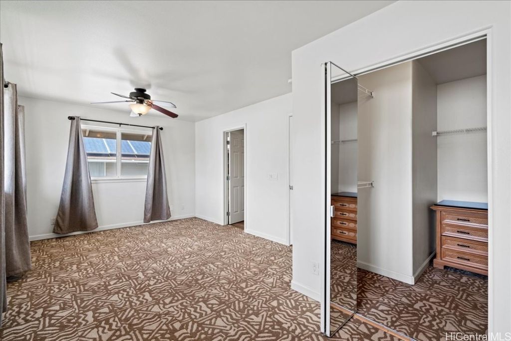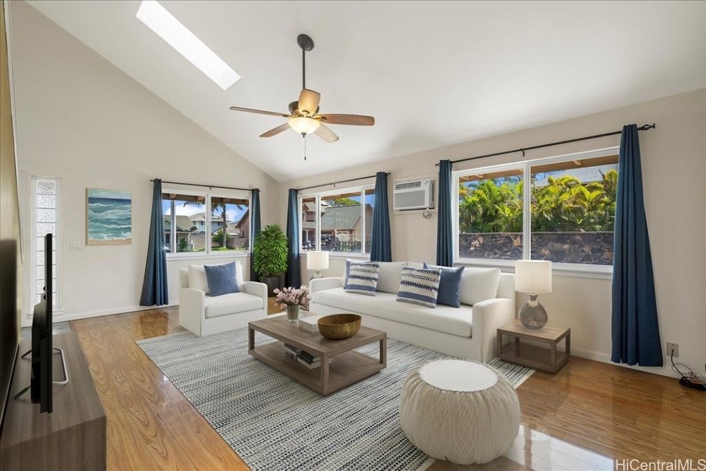 BIG PRICE DROP! Central Maui living in this large 4 Bed, 3 Bath home on a 5,697 sqft lot in The Greens @ Maui Lani. This home has 1,850 sqft of living space with a large 500 sqft, 2 car garage. The primary bedroom is located upstairs with a large closet, a shower and soaking tub. Downstairs is the kitchen and a separate bedroom and living area that can be locked out while accommodating multi-generational living. The backyard is equipped with 442 sqft of concrete that makes this a great place for entertaining. Take advantage of the 12 photoelectric panels that are completely owned along with the solar hot water system. The Maui Lani Golf Course is nearby. Located at the end of a cul-de-sac, and next to the community park, it's easy to take advantage of the outdoors. The airport is just 10 minutes away and even less to a handful of shopping malls and big box stores. Also listed in Maui RAM MLS #405310