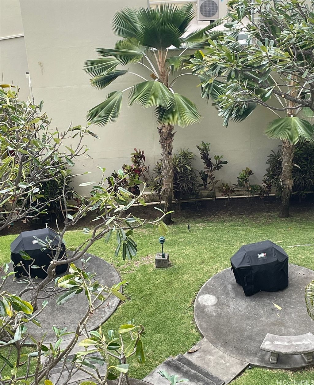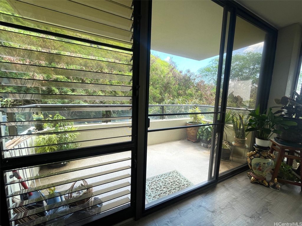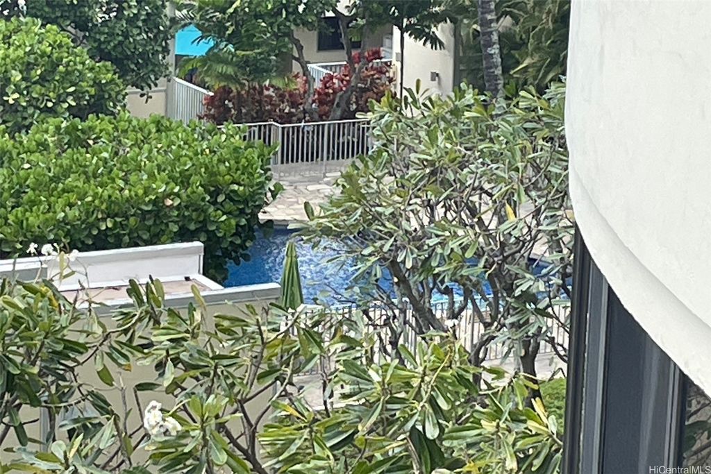 What makes this unit so SPECIAL??? CORNER unit with TWO LANAIS-- Enjoy Ocean & marina views and the sun lighting the top of Diamond Head. PRIVACY surrounded by the landscaping of Mother Nature. Spacious Lanai big enough for planting a garden with access through Sliding doors from Living Rm and separate access door from Front Bedroom. Functional Floorplan with VERSATILE AREA off KITCHEN"”use as a private office/den & storage or Eating Nook with pass thru bar. Well-ventilated kitchen with pass through counter to spacious Dining and Living areas that also enjoy expansive views. Large Primary Front Bedroom with lots of windows for ventilation and enjoyment of views. Featured are many Mirrored sliding closet doors including extra closets in nice-sized bathroom area with double sinks. Back bedroom with cool privacy and directly located next to hall bathroom and washer/dryer. Amenities include inviting front area with table & seating off Lobby, Recreation/Meeting Room near garden Pool, Outdoor Barbecue, Exercise Room on Mezzanine Level with entry to parking. Additional individual storage locker in bldg. basement. Two Assigned Side by Side full sized stalls & lots of guest parking.
