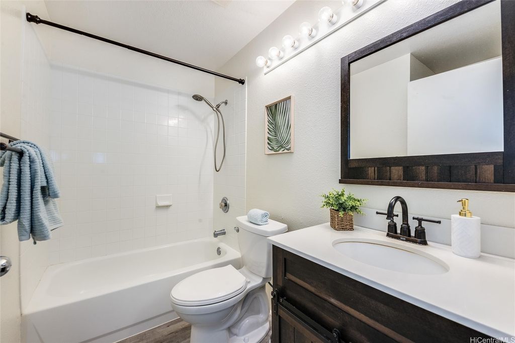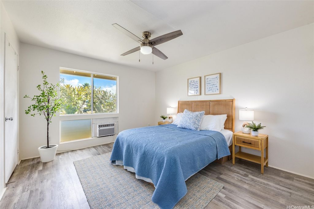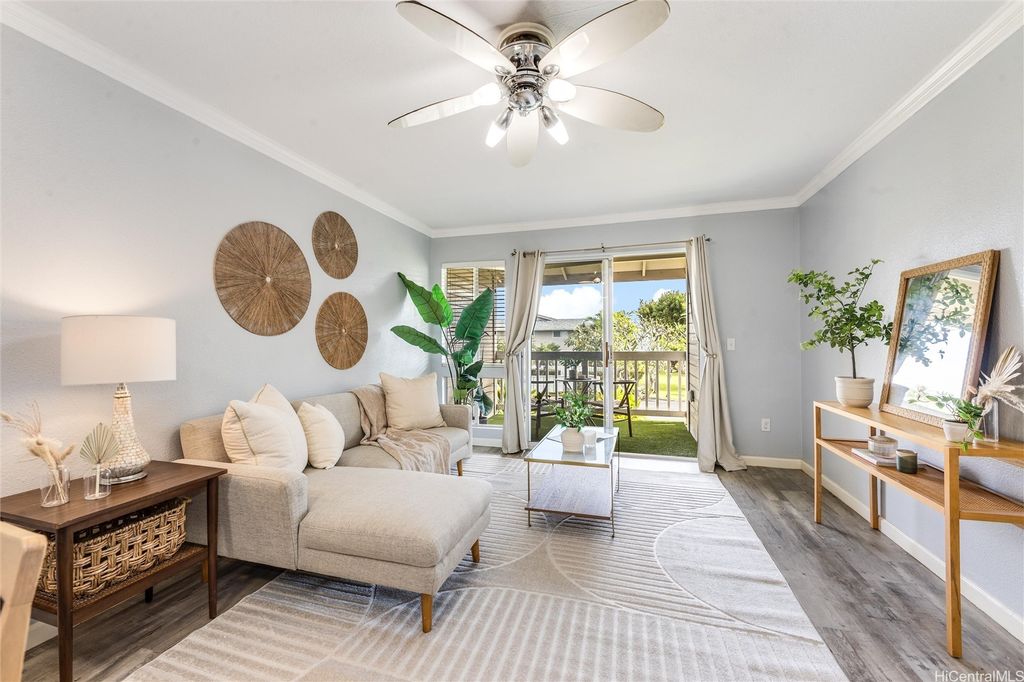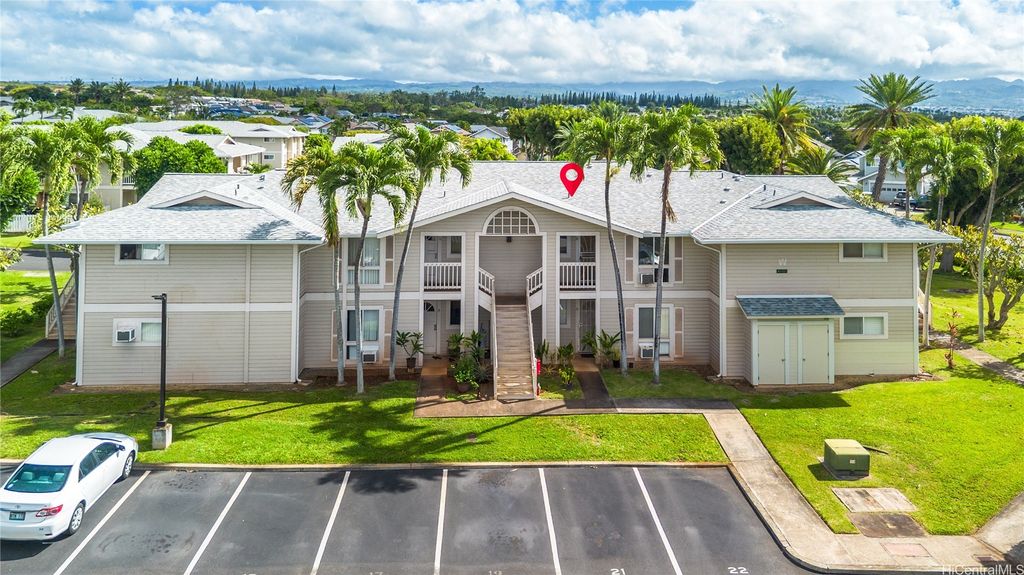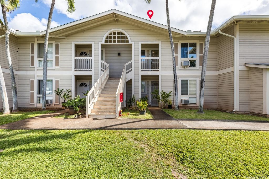 Best value upstairs 2-bed/2-bath in Parkglen! Spacious ~835 sf second-floor unit with two parking stalls just steps away. Freshly painted and move-in ready, this home features an open layout with a private lanai for indoor/outdoor living, and a well-designed floor plan separating the bedrooms for privacy. Parkglen at Waikele is known for its central location"”close to Waikele Premium Outlets, golf course, and freeway access"”yet tucked away in a quiet residential setting. Enjoy community amenities, nearby parks, and the convenience of shopping and dining within minutes. Recently sold upstairs units closed higher"”this is your opportunity to secure an excellent value. Seller is motivated"”schedule your showing today! Staging furniture has been removed. 100% INSURANCE COVERAGE. Pet Friendly.