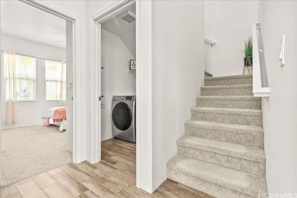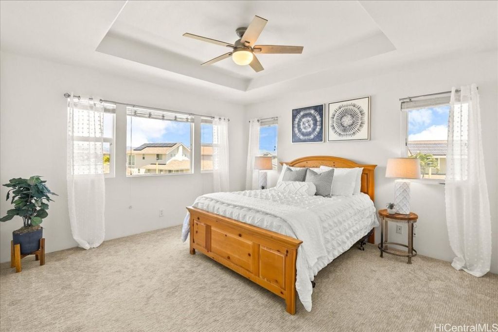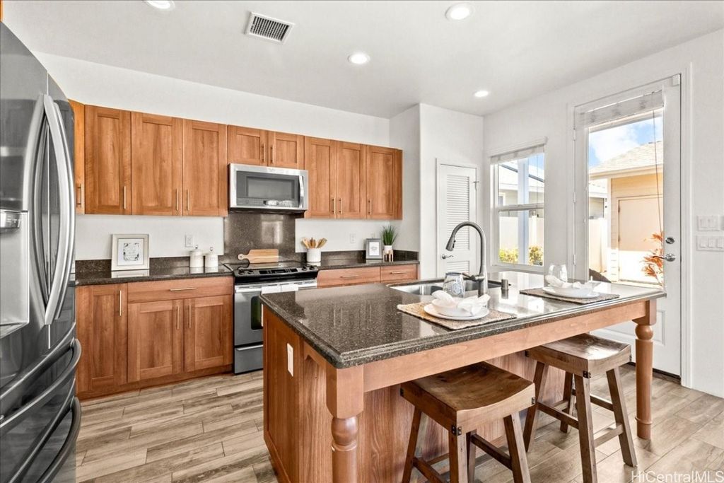 Step into this stunning residence located in the sought-after, resort-style, gated community of Kipuka at Hoakalei, surrounded by the beautiful Hoakalei Golf Course. This spacious home features open floor plan w/ abundance of natural light. The kitchen is equipped w/ SS appliances, including recently purchased refrigerator as well as washer & dryer. BRAND NEW STOVE, DISHWASHER & MICROWAVE installed just this month. Downstairs boasts ceramic tile floors, while upstairs is fitted w/ upgraded carpet. The home has been freshly painted, adding to its modern appeal. Additionally, the AC unit was replaced in 2020/2021, ensuring comfort year-round. The ground floor also offers a full BR & BA. Primary BR is generously sized w/ mountain views, while the upstairs loft provides additional living space, perfect for relaxation or entertainment. Tech area w/ built-in desk overlooks the courtyard & offers views of the swim club & rec area. As a resident, you'll have access to a variety of community amenities, including pool with gas grills & cabanas, playground, & the Wai Kai Hale Private Club, featuring a large lagoon for paddleboarding & kayaking. This is more than just a home; it's a lifestyle.