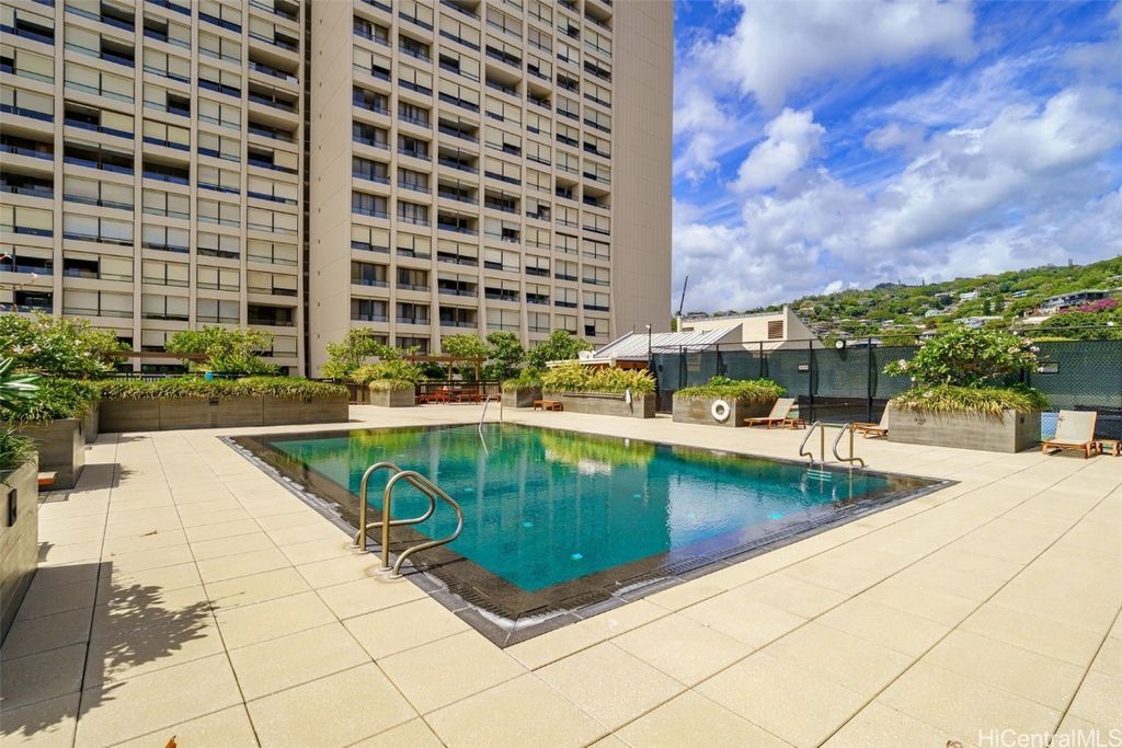 Mott-Smith Laniloa is in a convenient, quiet location of Makiki, close to private & public schools, shopping and restaurants. It is a well-managed, maintained and secure building with recently updated amenities within the last several years: swimming pool and deck, whirlpool/hot tub, tennis & pickleball courts, recreation room, multiple BBQ areas, putting green with 24 hour security and resident manager. Building was just completely painted with new piping and spalling replaced. Assigned covered parking, stall #160 on first floor of garage with ample guest parking. This upper floor, 1 bedroom 1 bath unit has two large enclosed lanais, providing mountain views of Punchbowl, surrounding area and a peak-a-boo ocean view. Condo unit is located in the "cool" side of the building with drop down shades on both lanais. Larger lanai can be used as additional living space with room for a punee bed (day bed). Recently painted, newer carpet and appliances including washer & dryer in unit. Tenant occupied, on a month to month rental agreement, yet easy to show with 48 hours notice.