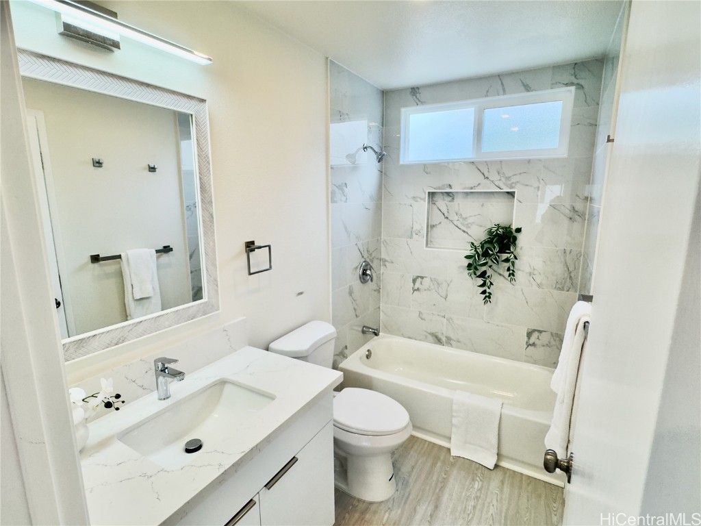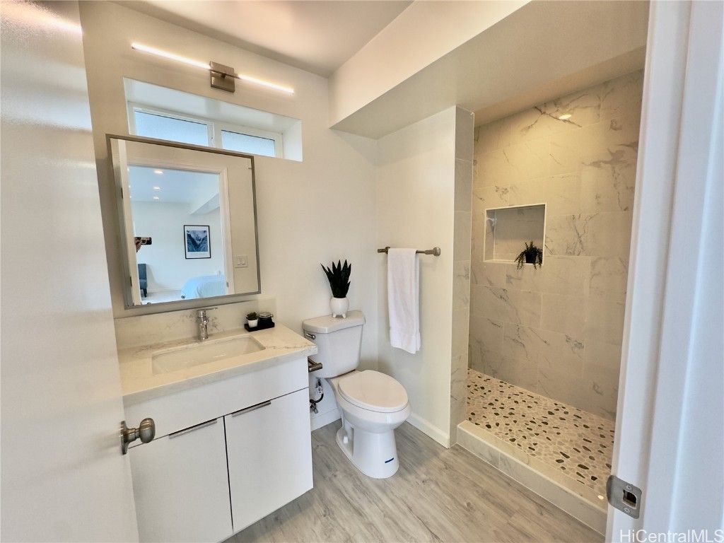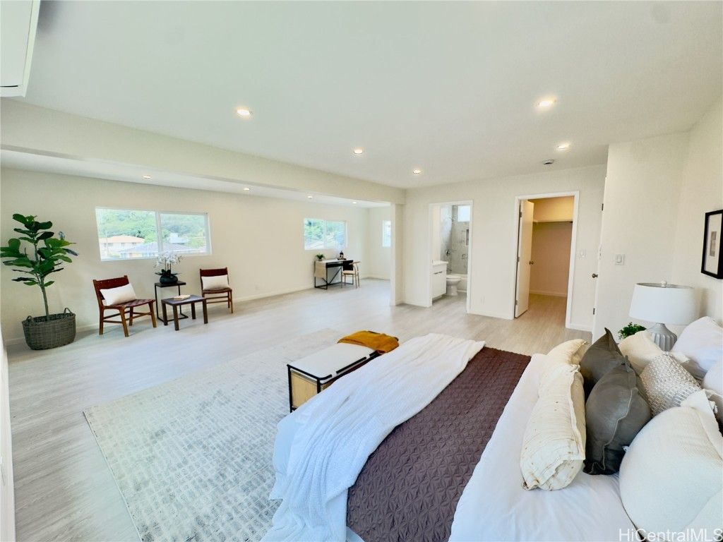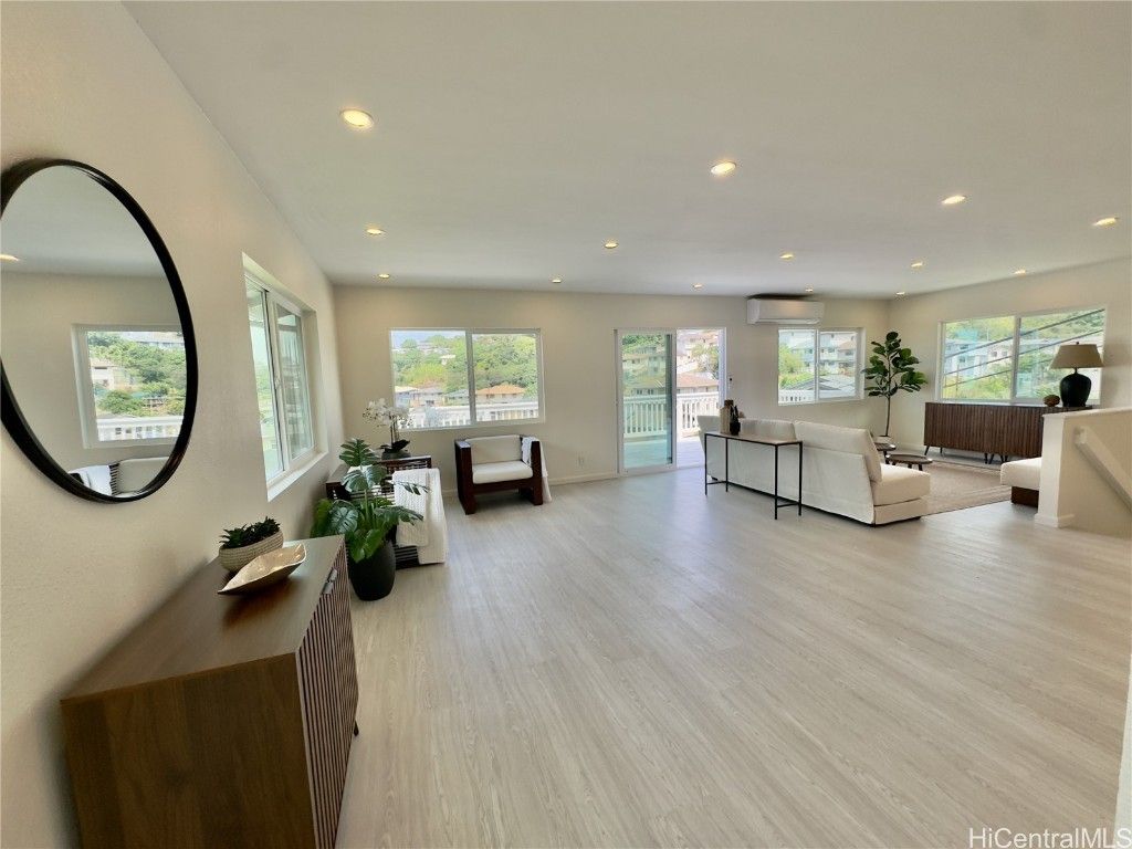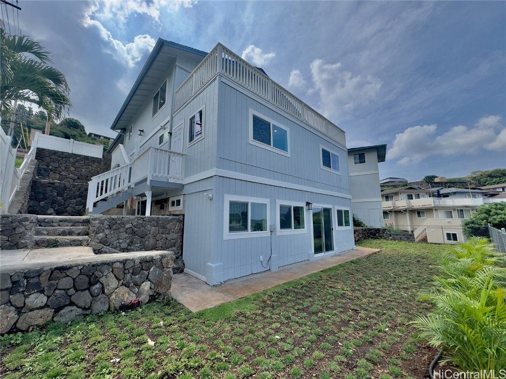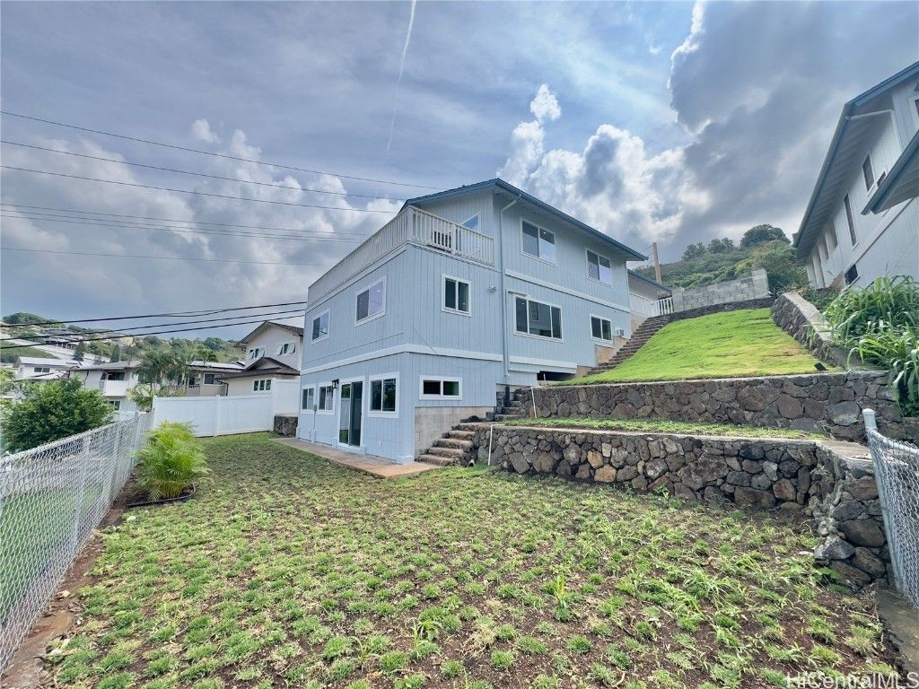 Welcome to this modern residence in desirable Aiea Heights! Perch on top along the perimeter lot with breathtaking ocean, coastline, and city views! Ample yard space with fully fence gates and it's custom finishes and high level upgrades throughout the home, this residence truely offers living at its finest! The open spacious living area leads out to the expansive deck for hosting a gatrhering and the enjoyment of the amazing surrounding views. Step inside the home to discovered the very large living spacevon the main level. A very spacious primary bathroom located on the middle level along with 2 other bedrooms. The lower level feature a 1 bedroom, 1 bath with a wet bar and separate entrance. This home offer endless possibilities and multi-generational living. Daikin split AC to keep you comfortable all year round.