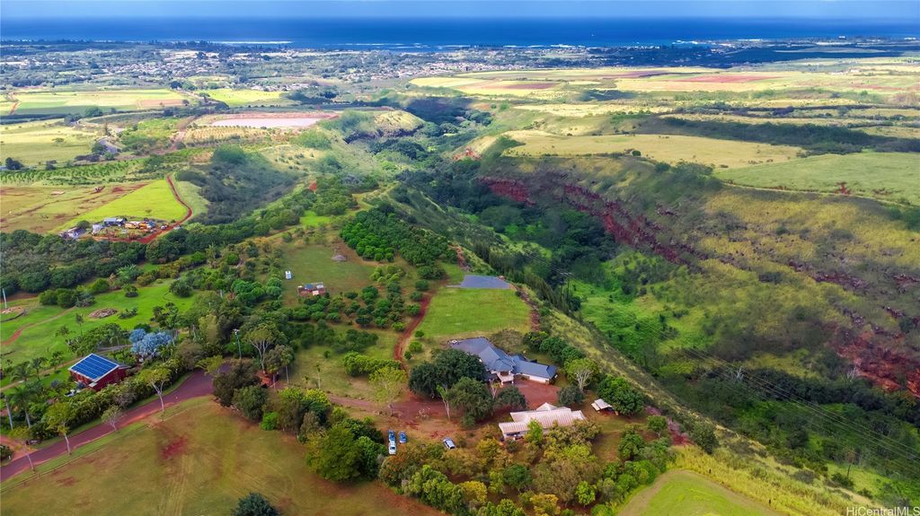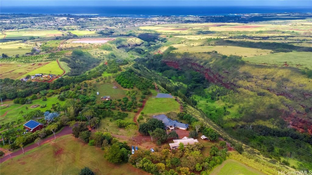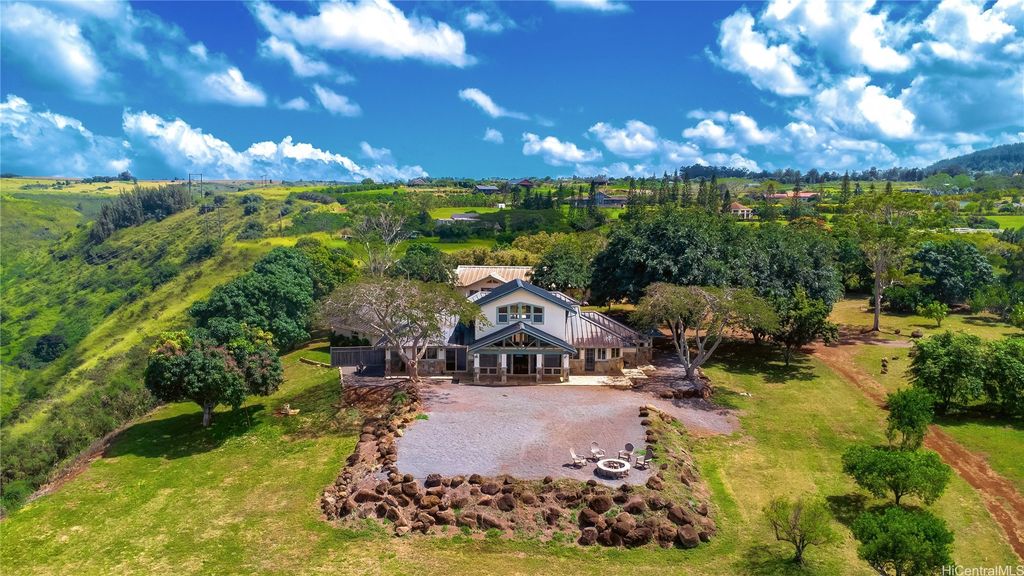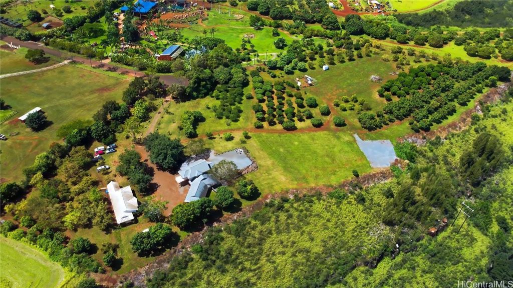 PRIVATE FARMHOUSE ESTATE - A rare opportunity to own a stunning 3 bed / 2.5 bath, two-story 2,519 SF home on a picturesque 7-acre farm in the gated and serene Poamoho Estates on Oahu's world-famous North Shore. Located at the end of a quiet cul-de-sac and bordered by a lush 100-foot ravine, this peaceful retreat offers both privacy and breathtaking natural beauty. Also included is a fully enclosed 1,250 SF workshop, complete with its own bathroom and office"”perfect for use as a home gym, game room, creative studio, or agricultural utility space. The property features over 400 mature fruit trees, including mango, avocado, lychee, longan, citrus, papaya, and breadfruit"”offering an abundance of fresh produce and incredible opportunity. From launching a farm-to-table business, CSA program, or local produce brand, the possibilities are truly limitless. Whether you're envisioning a working farm, private retreat, or community-supported agricultural venture, this unique estate blends lifestyle and potential"”all just minutes from charming Haleiwa Town, surf breaks, and the heart of the North Shore. Don't miss this one-of-a-kind opportunity"”schedule your private showing today!