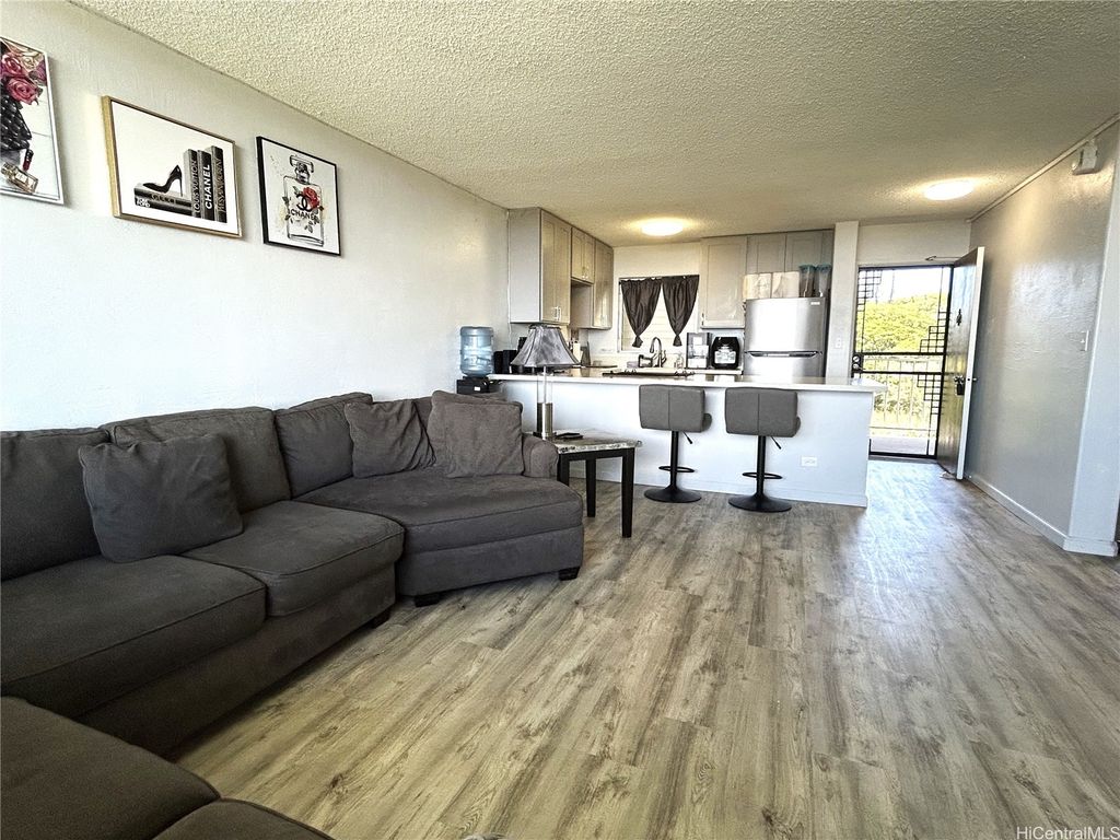 Price Reduction! Nice and spacious two-bedroom, two-full-bathroom unit with one parking stall. This home is located in building #5, which is the first building on the left and adjacent to the community pool. The dedicated parking stall is only a few steps away. Top floor unit with great airflow-cool trades blowing through this unit. Close to malls, military bases, restaurants, schools, hospitals. This well-maintained complex comes with wonderful amenities: a large swimming pool, jacuzzi, tennis, and basketball courts, putting green, recreation/meeting room which includes a kitchenette, ping pong table, pool table, library, vending machines, BBQ and picnic areas, 2 fitness rooms, sauna, car wash area, and outdoor sitting areas. This gated, pet-friendly complex also has 24/7 security, EV charging and ample guest parking