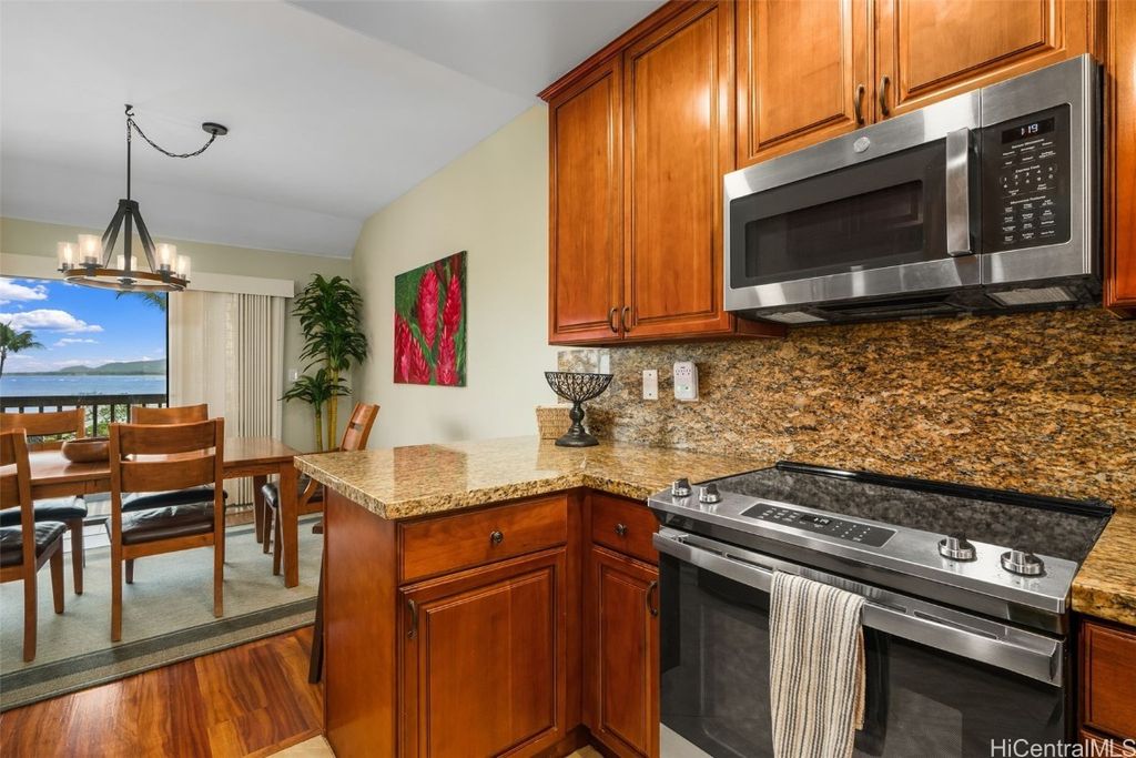 Remodeled 2-bedroom, 2-bath third-floor walk-up unit at Lae Nani offers stunning ocean and beach views and a prime location on the Coconut Coast of Kauai, Hawaii. Most likely the best view in Lae Nani. Spacious lanai to enjoy the morning sunrise over the ocean, with views out to the Hawaiian Heiau and keiki ocean pool. The ocean views continue into the primary bedroom, which also has its own lanai. Modern kitchen with newer stainless-steel appliances. Multi-zone split AC units in both the bedrooms and living area. Full-size washer/dryer in the unit with additional community laundry options available on property. Lae Nani is beautifully landscaped, offering a serene setting next to the Hawaiian Heiau. Enjoy the ocean, beach and keiki ocean pool or the community amenities with swimming pool, tennis/pickle ball courts and BBQs. Property is conveniently located near shopping, dining, and entertainment, and a short drive from the charming town of Kapa'a, where you can enjoy local boutiques, farmers markets, and a lively culinary scene. Unit comes fully furnished, including kitchenware and linens. Active vacation rental with booked reservations. (Artwork not included)