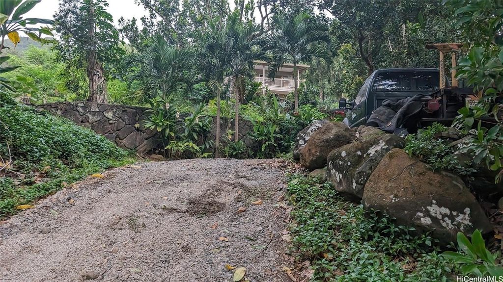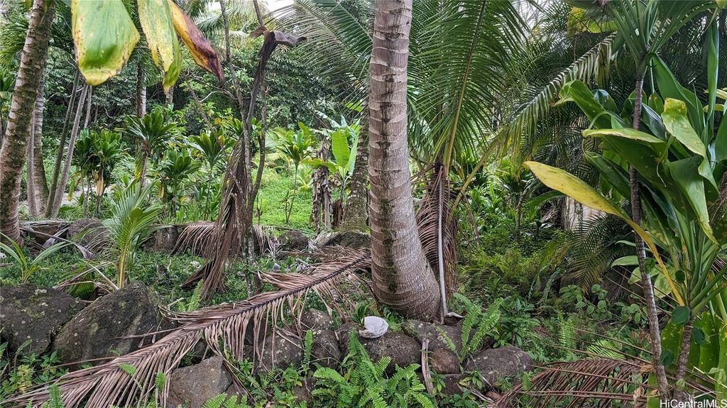 This property offers unparalleled views of the majestic Koolau Mountains and the serene Punaluu Beach. Beach access is just 1 mile away down Green Valley Rd. Spread across a little over 2.6 acres, this rare gem boasts lush coconut and banana trees, exotic flora, and a meandering stream available for watering or drinking with filtration. Live off the grid via the stream water or build a catchment system.. There is ample sunlight for solar power and many options for waste control. Enhancing this plot of paradise, the previous owner has already invested $150,000 in an engineered and permitted flat pad, complete with sturdy retaining walls crafted from concrete, rock, and block. Gated and Secured Access.