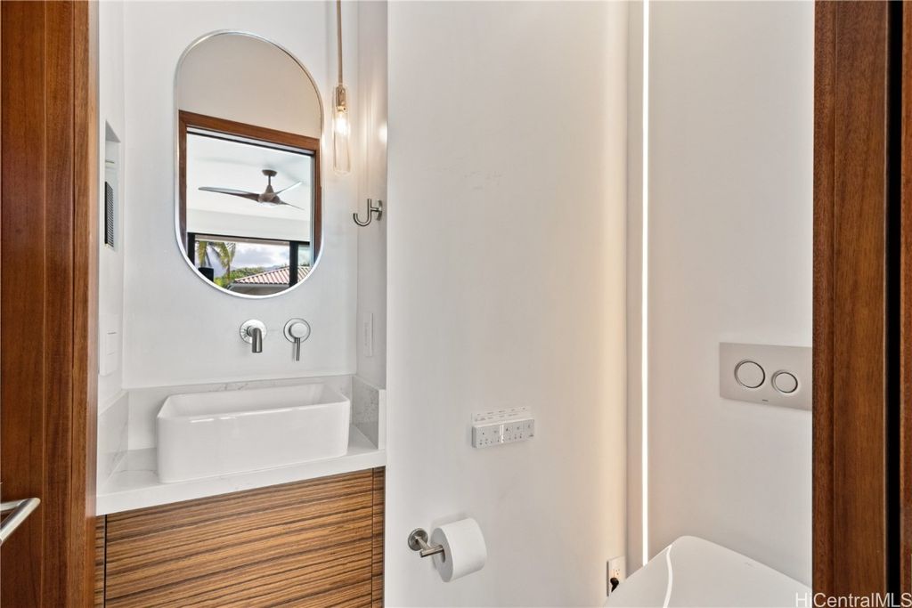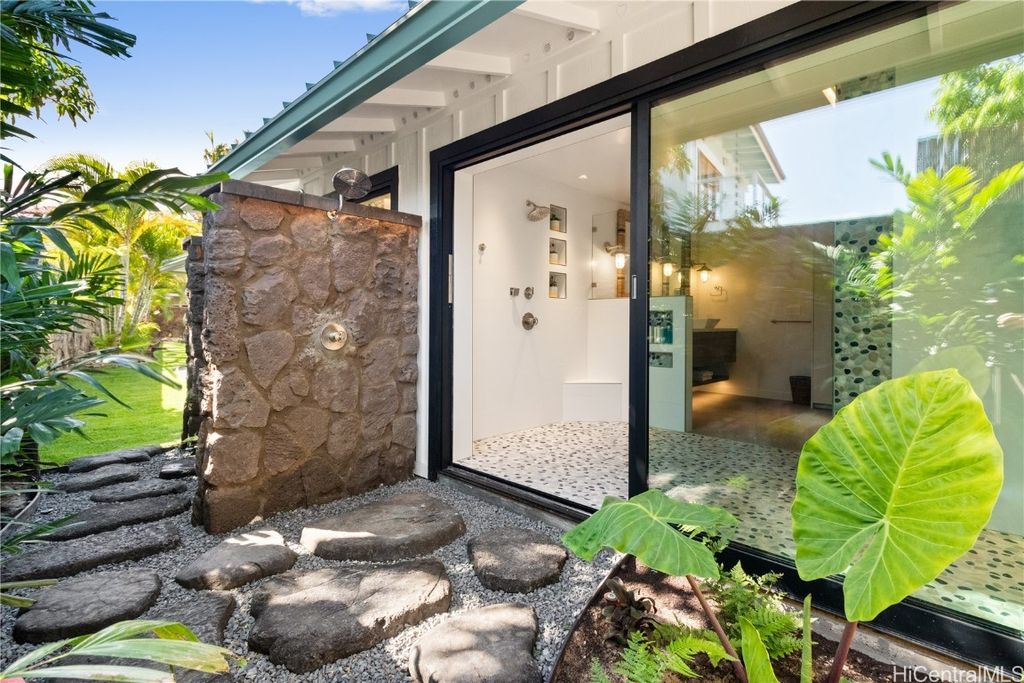 Brand new luxury remodel completed in 2025, Contemporary Hawaiian Style Design, One of the highest quality rental homes in Kailua. Ideally located, one house back from the sand in the heart of Kailua. A dream location and dream house near Kailua Beach Park, walking distance to Island Snow and the famous Buzz's Steak house with a perfect white sand beach 1 minute walk down a private access on this quiet beachside street. No street traffic, very private. This home has a resort like luxury feel. Large spacious gourmet kitchen with wolf gas range and subzero appliances. One level ranch style house with multiple sliding glass walls that completely open the home to a solar heated SALT WATER pool. All LED lighting, large tropical yard, Extra amenities include indoor/outdoor "jungle" shower options via sliding doors off both bathrooms and touchless Toto "Washlet" Bidet Toilets Gourmet outdoor kitchen on the lanai, split air conditioning in all rooms. Battery back up system for safety and security. Quiet and very private, with no street traffic at all. Host on site part time in upstairs detached ADU