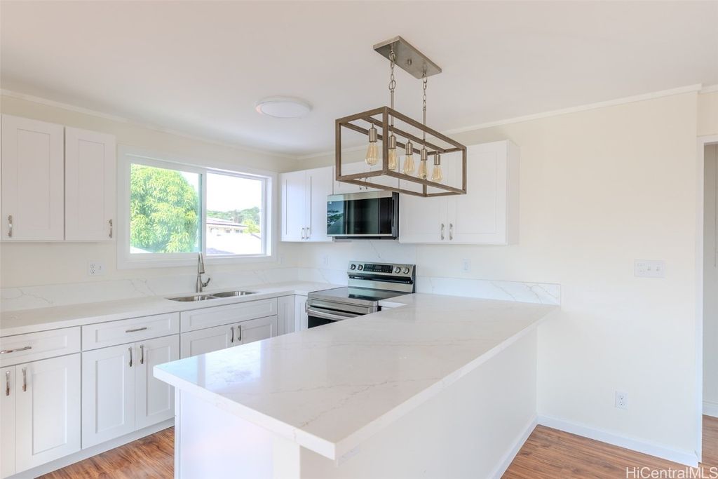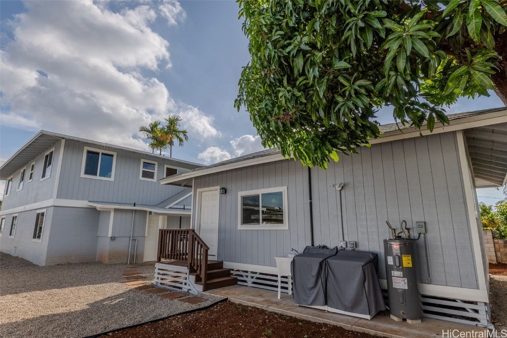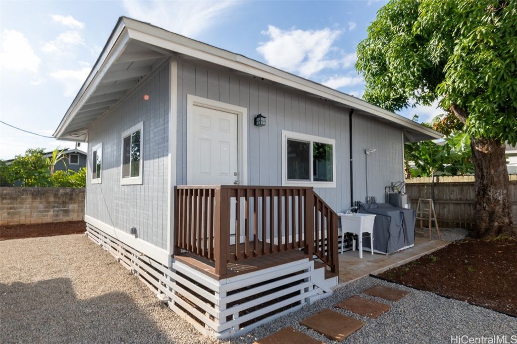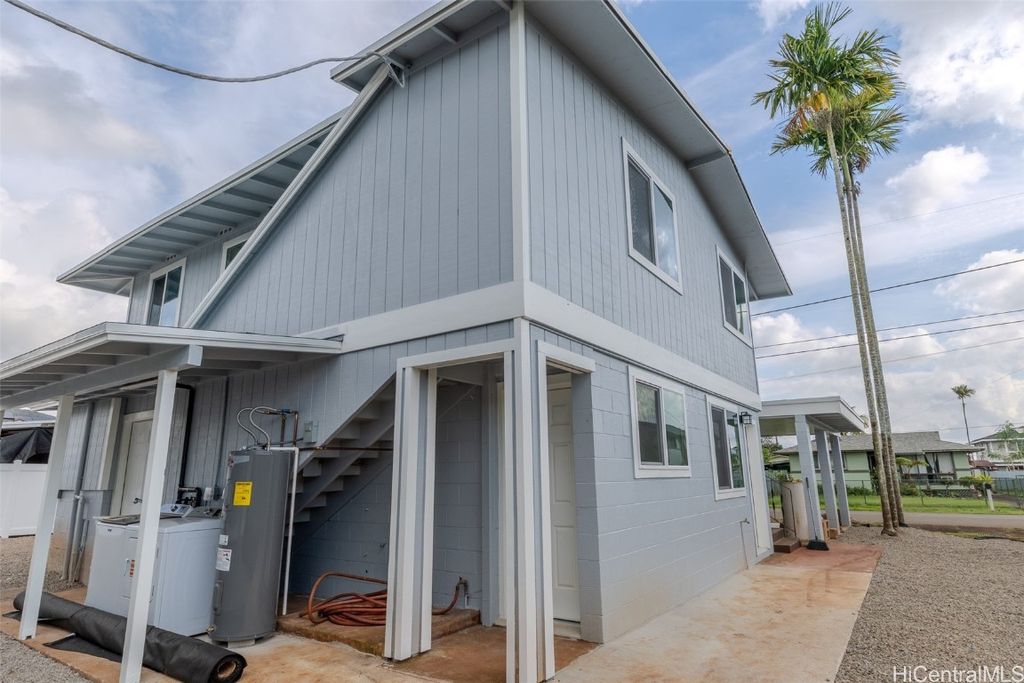 Come see this fully renovated home in Wahiawa ~ Two dwellings which is perfect for multi family or investors. The two story has 3 bedrooms on top level with an open concept kitchen. A separate entrance on the first floor opens up to a spacious living room and wet bar with 3 bedrooms and a bath. You can rent or have family live in the 2 bedroom cottage with full kitchen behind the main house. Be the first to use brand new appliances throughout. It is a short distance to the bus, park, neighborhood restaurants and general store. Enjoy many BBQ's and family gatherings outside.