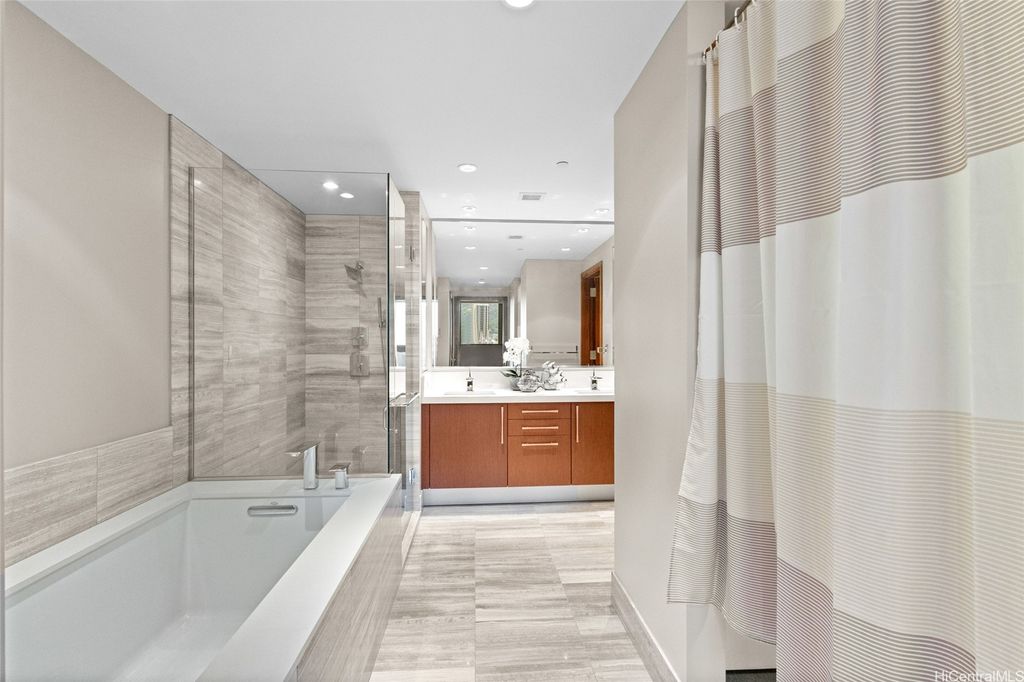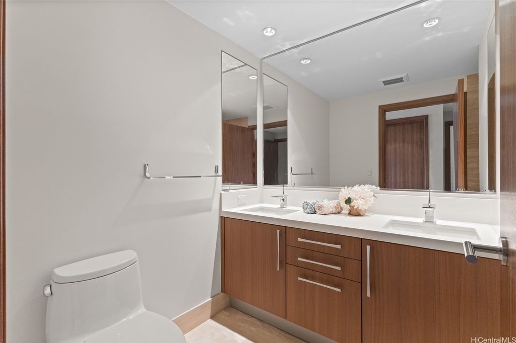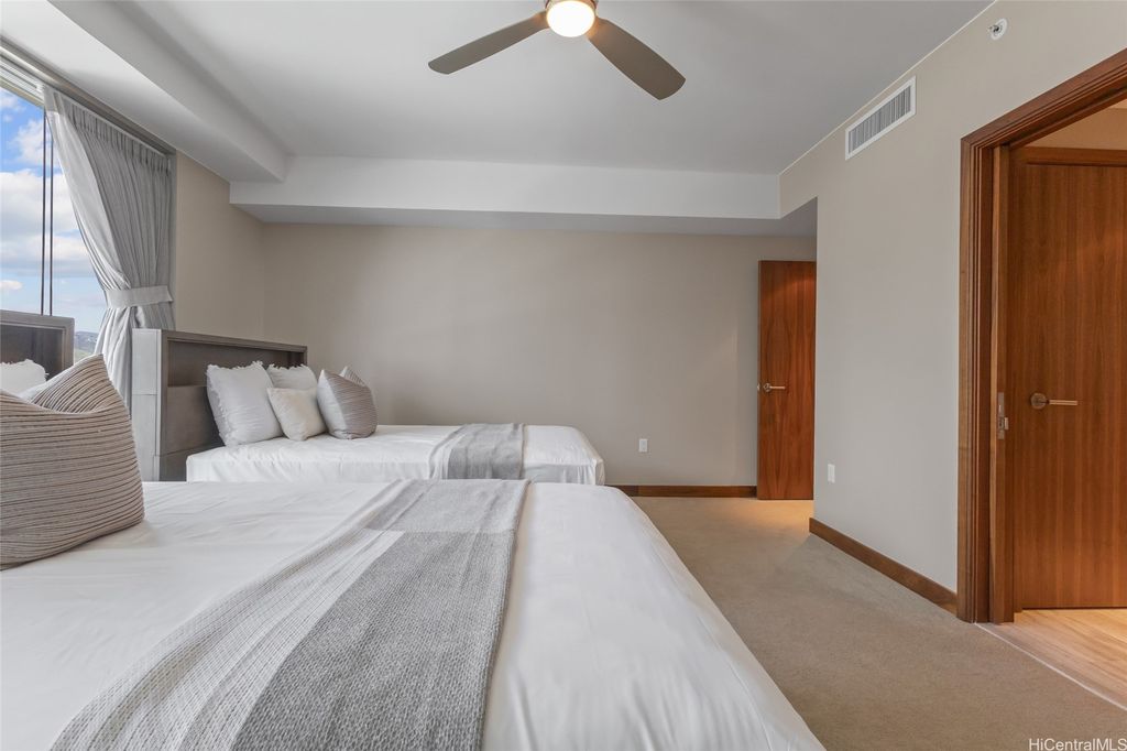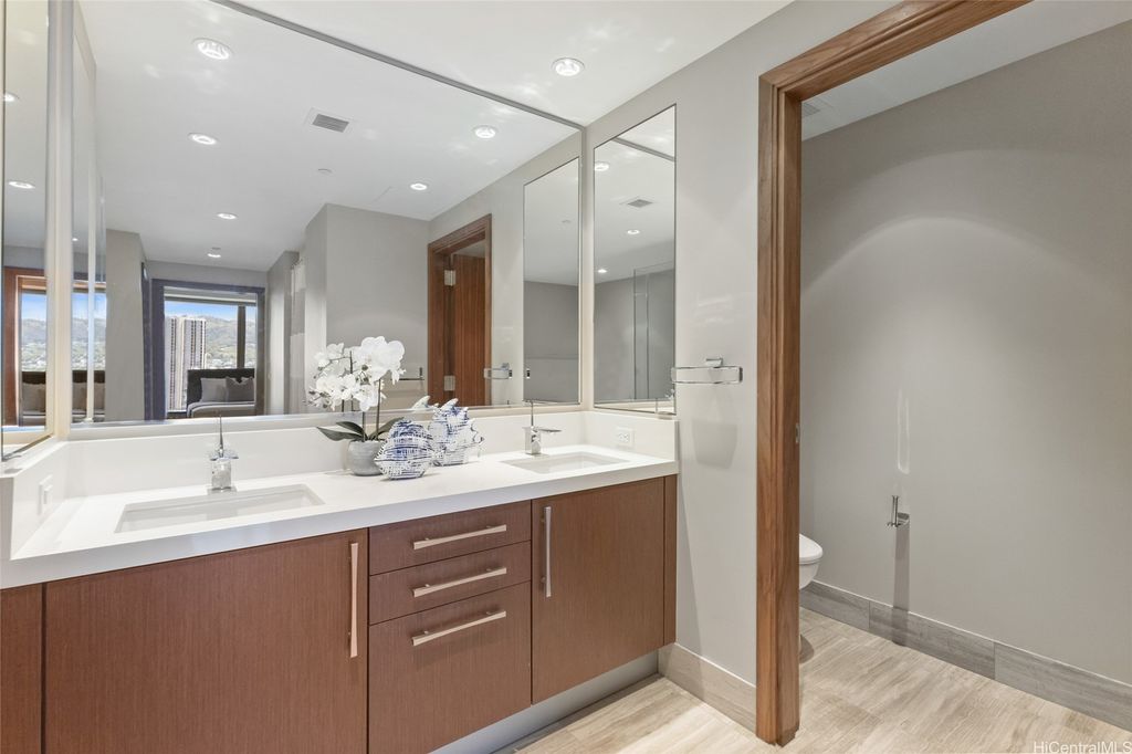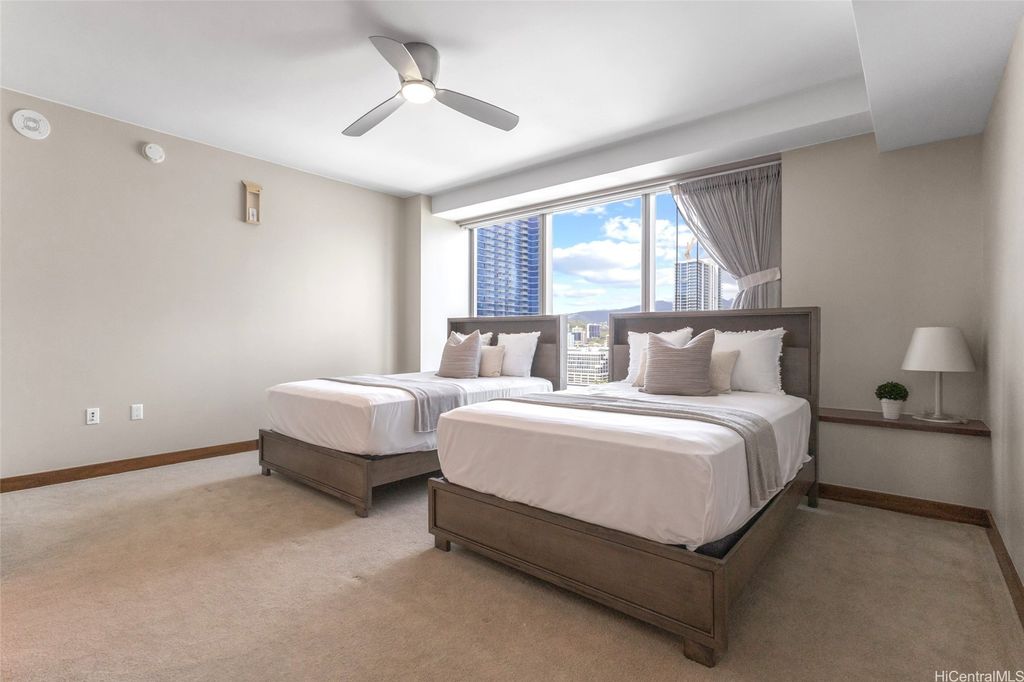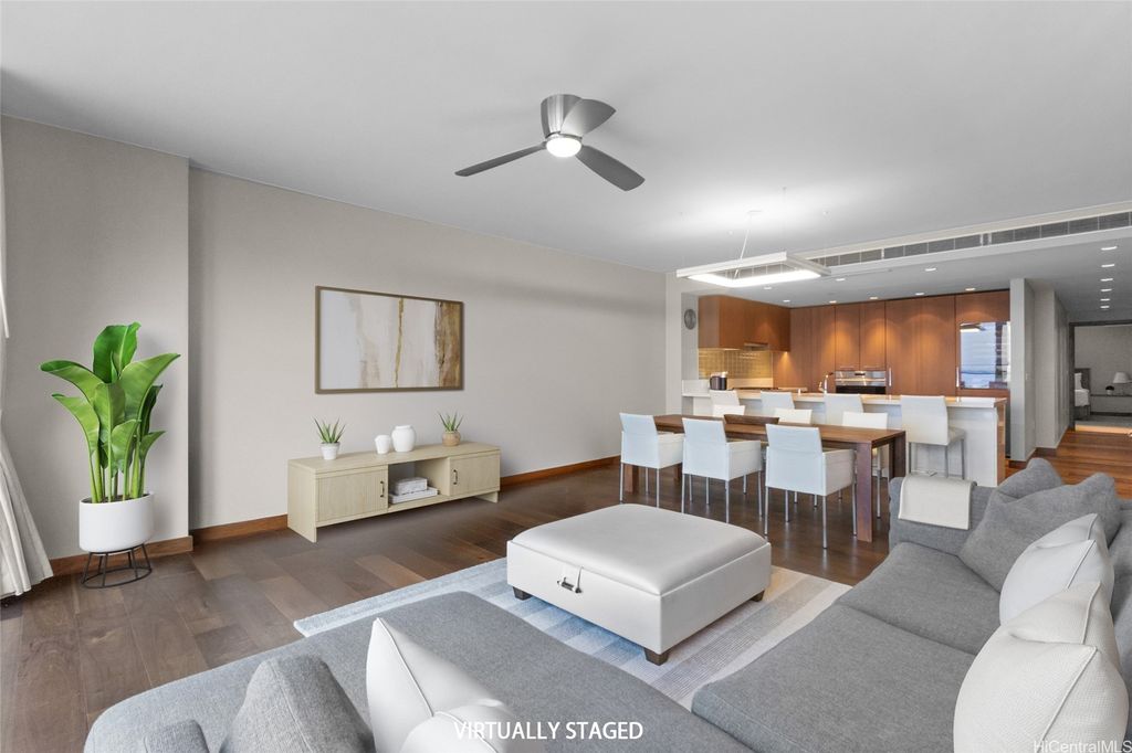 Discover a premium lifestyle within the luxurious One Ala Moana, located in one of Honolulu's most refined neighborhoods. This high-floor 3-bedroom, 1,800 sq ft residence offers breathtaking ocean and harbor views from the main living area, while the bedrooms are positioned on the cooler side of the building with lush mountain vistas. A spacious 93 sq ft climate-controlled storage room is included. Two side-by-side parking stalls are included, offering direct elevator access to the residence floor without the need to transfer. With direct access to Ala Moana Shopping Center and just minutes from the beach park's white sands and waves, this home offers the perfect balance of convenience, elegance, and island beauty. One Ala Moana provides resort-style living with world-class amenities including a saltwater pool, private cabanas, Chef's kitchen, BBQ areas, a fitness center, movie theater, children's playground, spa, guest suites, and dog parks in this pet-friendly residence. All furnishings can be included, making the transition effortless for the new owner. Luxury, comfort, and convenience come together in this exceptional home in the heart of Honolulu.