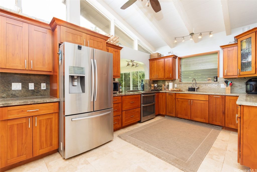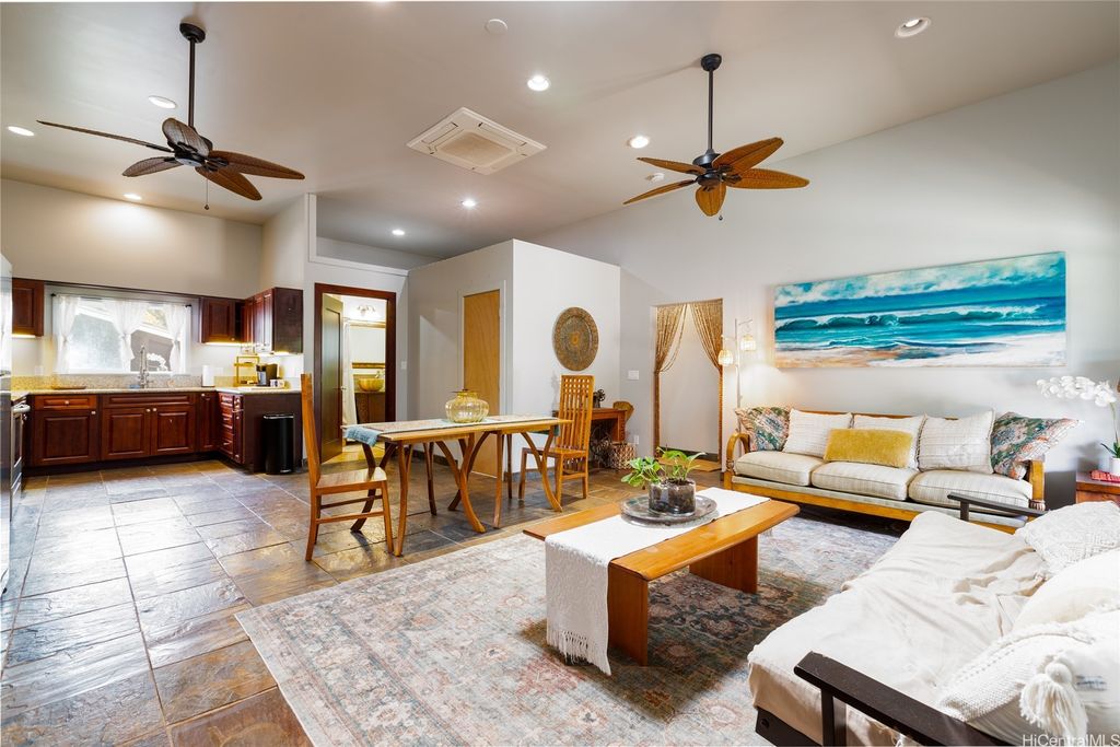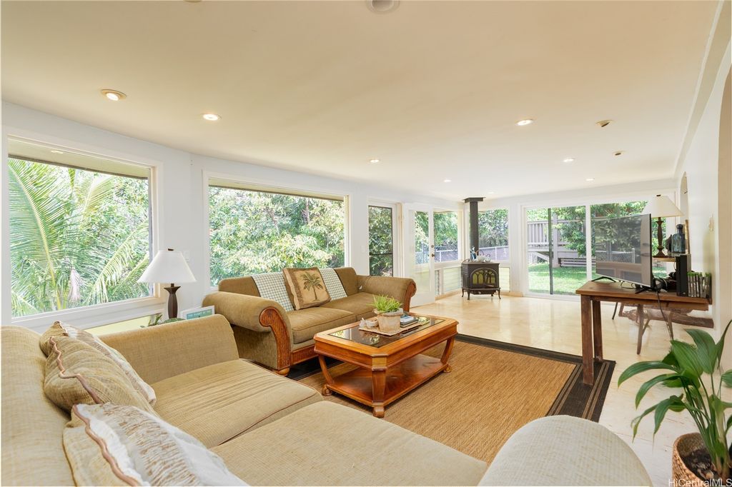 Nestled atop Pupukea's lush mountainside, this 1.27 acre estate features the perfect blend of a tranquil retreat and investment property. The main house has 3 bedrooms and 2 baths with high vaulted ceilings and large picture windows to let the natural light and greenery in, while the detached rec room and garage has been artfully converted into a versatile living area if needed, easily adding 2-3 more bedrooms, 2 full baths plus a studio workshop/lounge. There's a modular divider in the roundabout driveway adding even more flexibility and options to how you'd want to utilize this space. The outdoor shower (shown in the video) will become the must-have feature you never knew you needed until now. Enjoy your private picnic area complete with lava pit for those relaxing evenings after spending the day at one of O'ahu's iconic surf spots known the world over - just 5 minutes away. Overlooking the landscaped back yard, head to the gazebo, your peaceful haven for reflective thought. There's still so much untapped potential in the remainder of the property. However you choose to utilize this home, owning your private oasis on the North Shore is undoubtedly a coveted achievement.