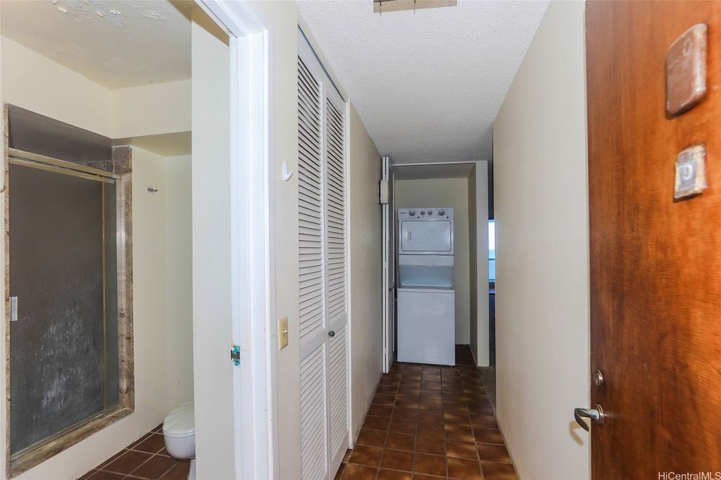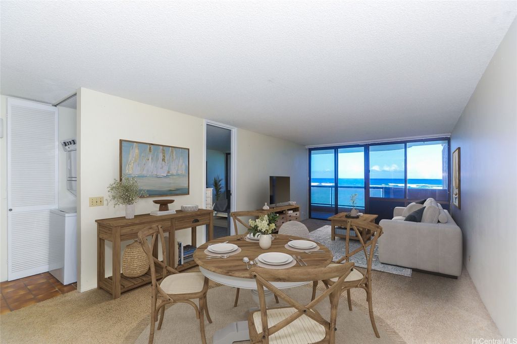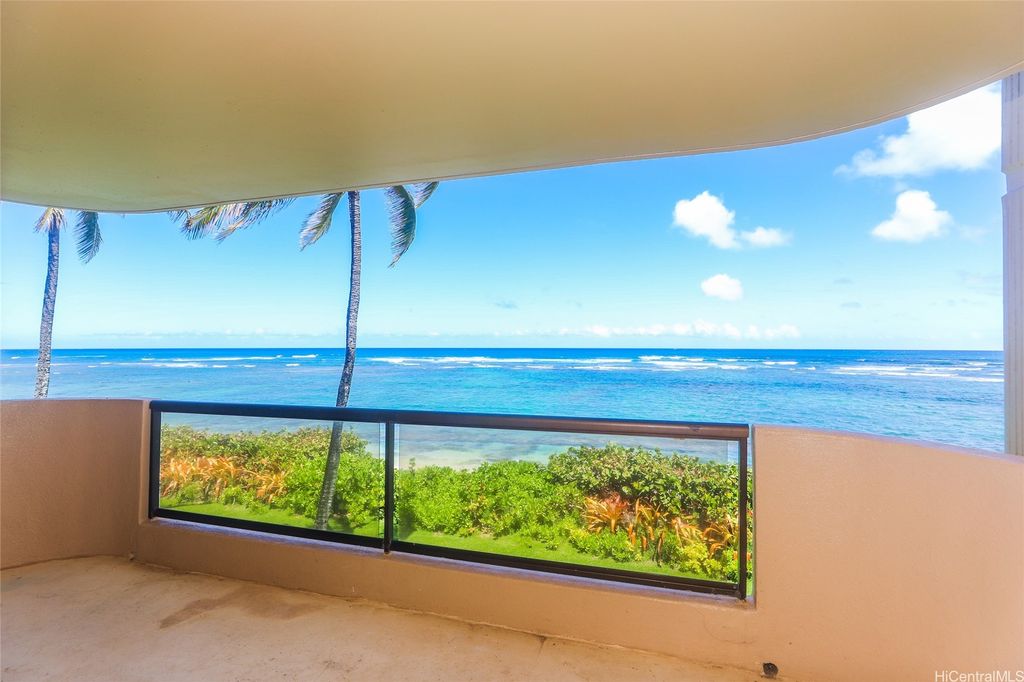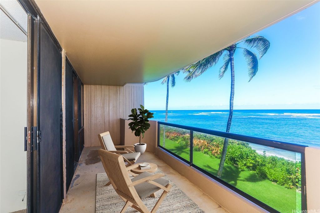 Welcome to Konane Kai. OCEANFRONT PROPERTY WITH PANORAMIC VIEWS OF BLUE PACIFIC OCEAN AND WHITE SANDY BEACH. This hidden gem is a large 893 sf 1 bedroom unit with 2 full baths and a large functional 180sf lanai. 1 secured covered garage parking. Originally built as a luxury condo with Koa cabinetry, Spanish tile & Italian marble with a lanai that stretches across both bedroom & living area for memorable sunsets, whale watching, & occasional sea turtles & sea monks. The building offers secured entrance & elevators (2), gated garage access, swimming pool & spa, bbq area & private beach access, workout room & bathrooms with saunas, a meeting room, solar panels on roof to conserve on common area electricity & so much more. This well maintained building is nearby Historical Haleiwa, minutes away from Dillingham Air Field & Kaena Point. Unit is being sold in "As Is" condition. 3D FLOOR PLAN VIRTUAL TOUR AVAILABLE.